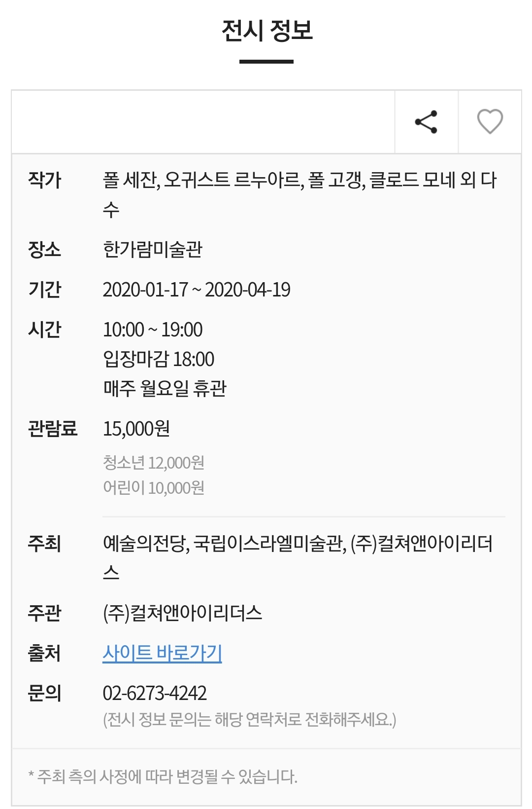 예술의 전당 한가람 미술관에서, 인상파 화가들의 작품을 중심으로 한 전시회가 열린다는 소식을 들었다. 전시회 좋아하는 마님을 모시고 간 전시회, 모네에서 세잔까지를 소개한다ㅋㅋ (결론은 맨 아래에..)