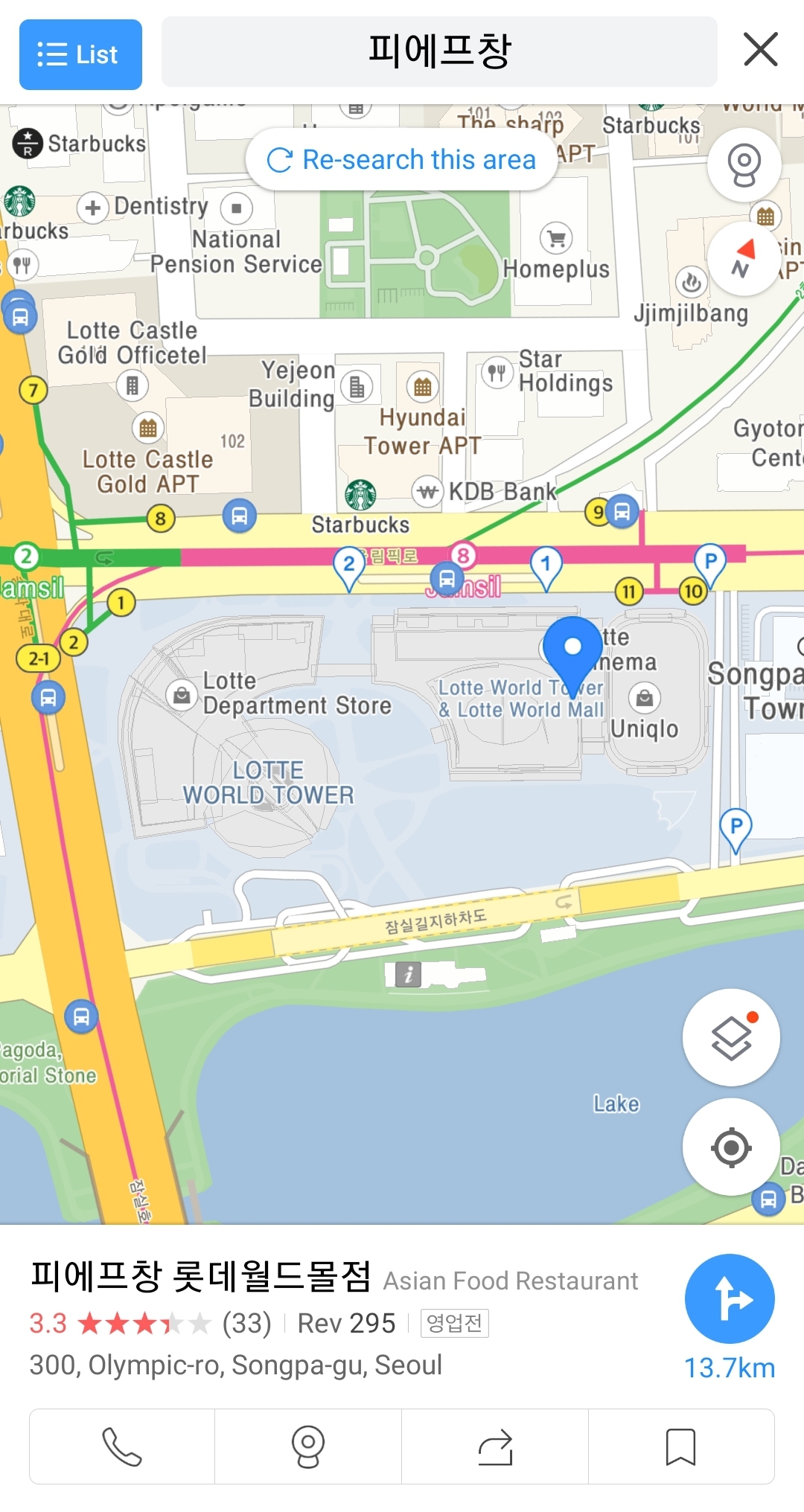 위치 : 잠실역 11번 출구 나와서 잠실롯데월드 몰 5층