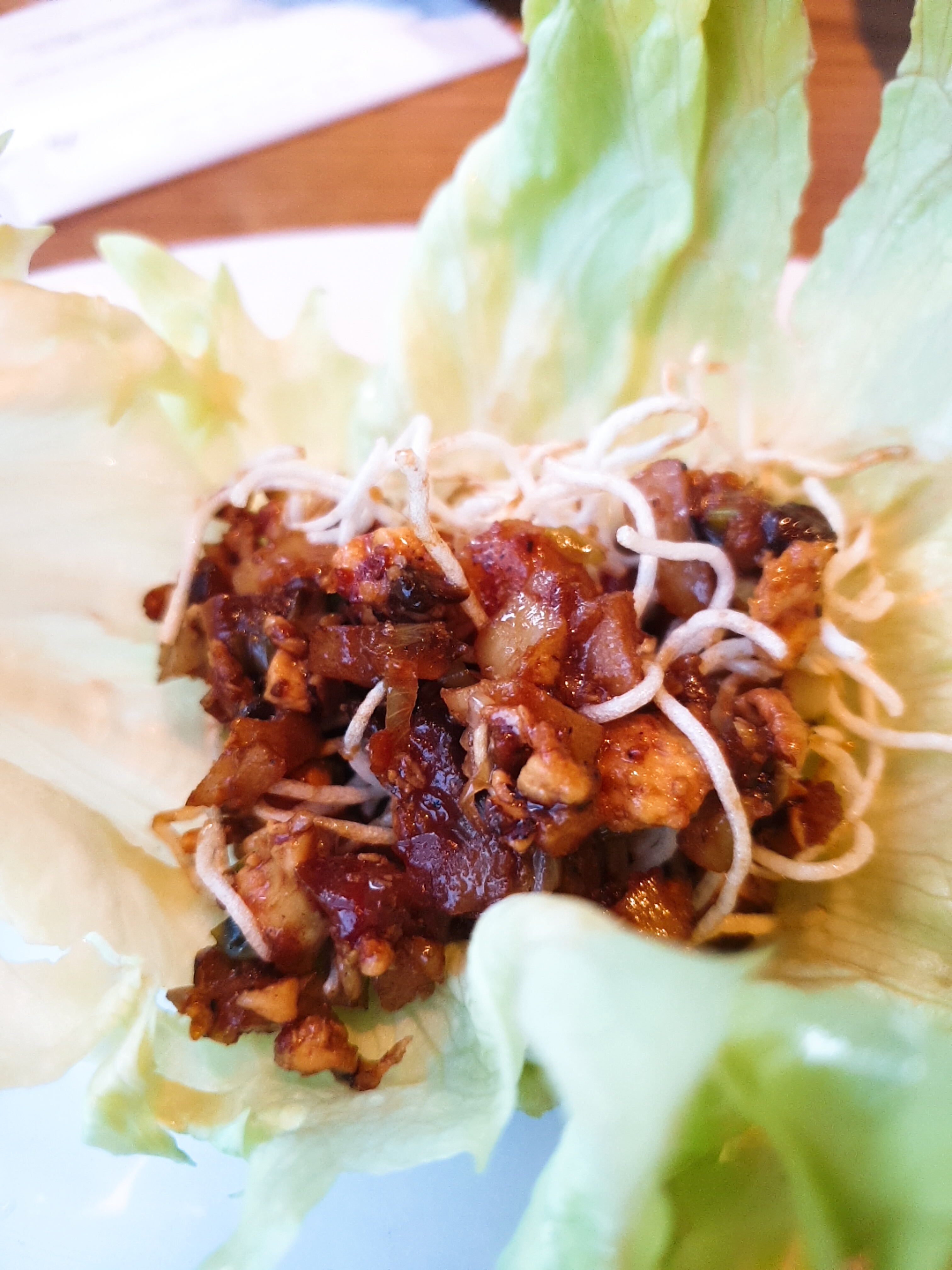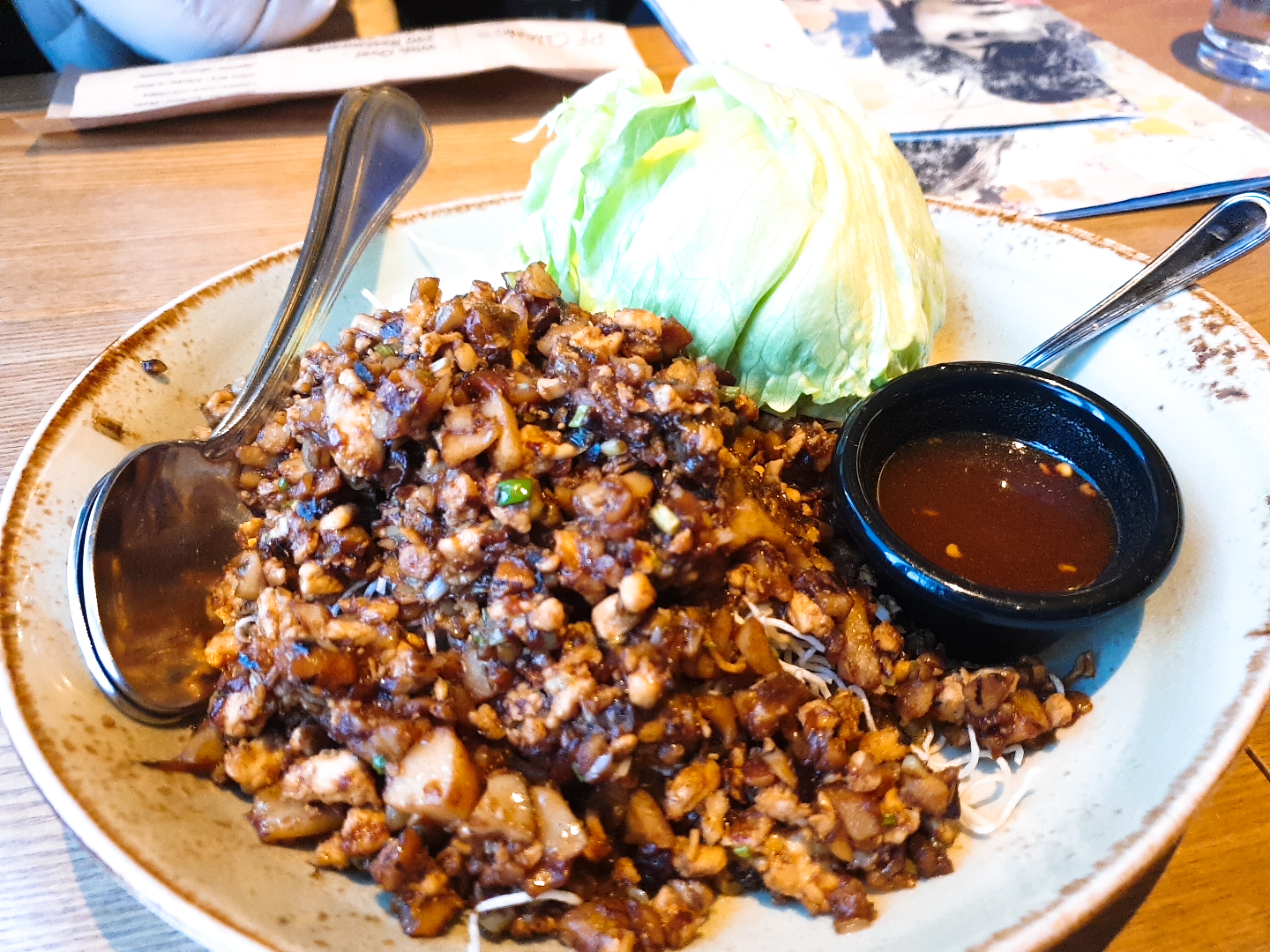 그냥 짠 간장 고기 토막 볶음에, 양상추를 통채로 끼워 넣은 음식이다.
