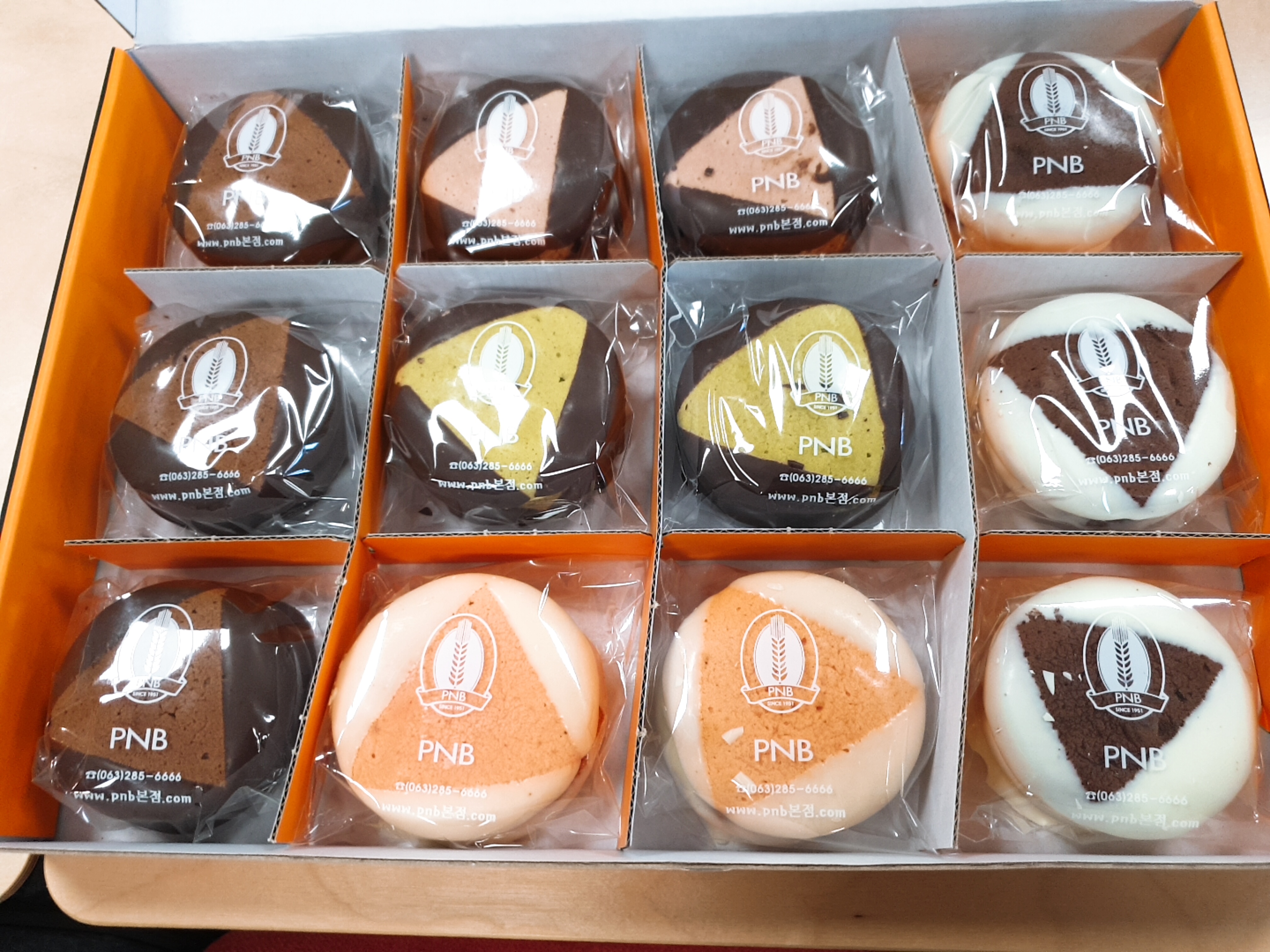 가격은 12개에 18000원, 15개에 22500원이다! 맛은 초코, 화이트 초코, 딸기, 녹차, 치즈 이렇게 5개다!