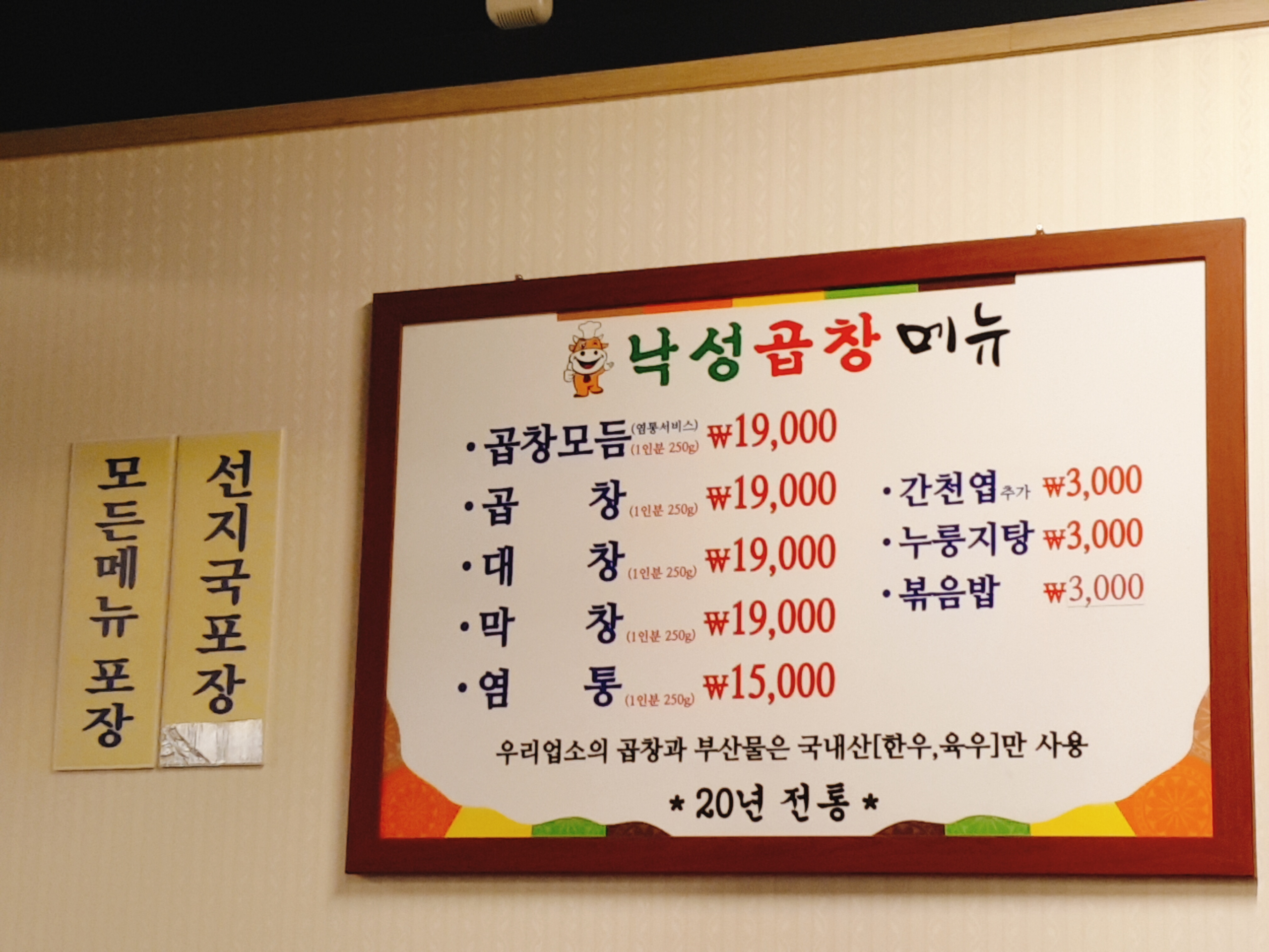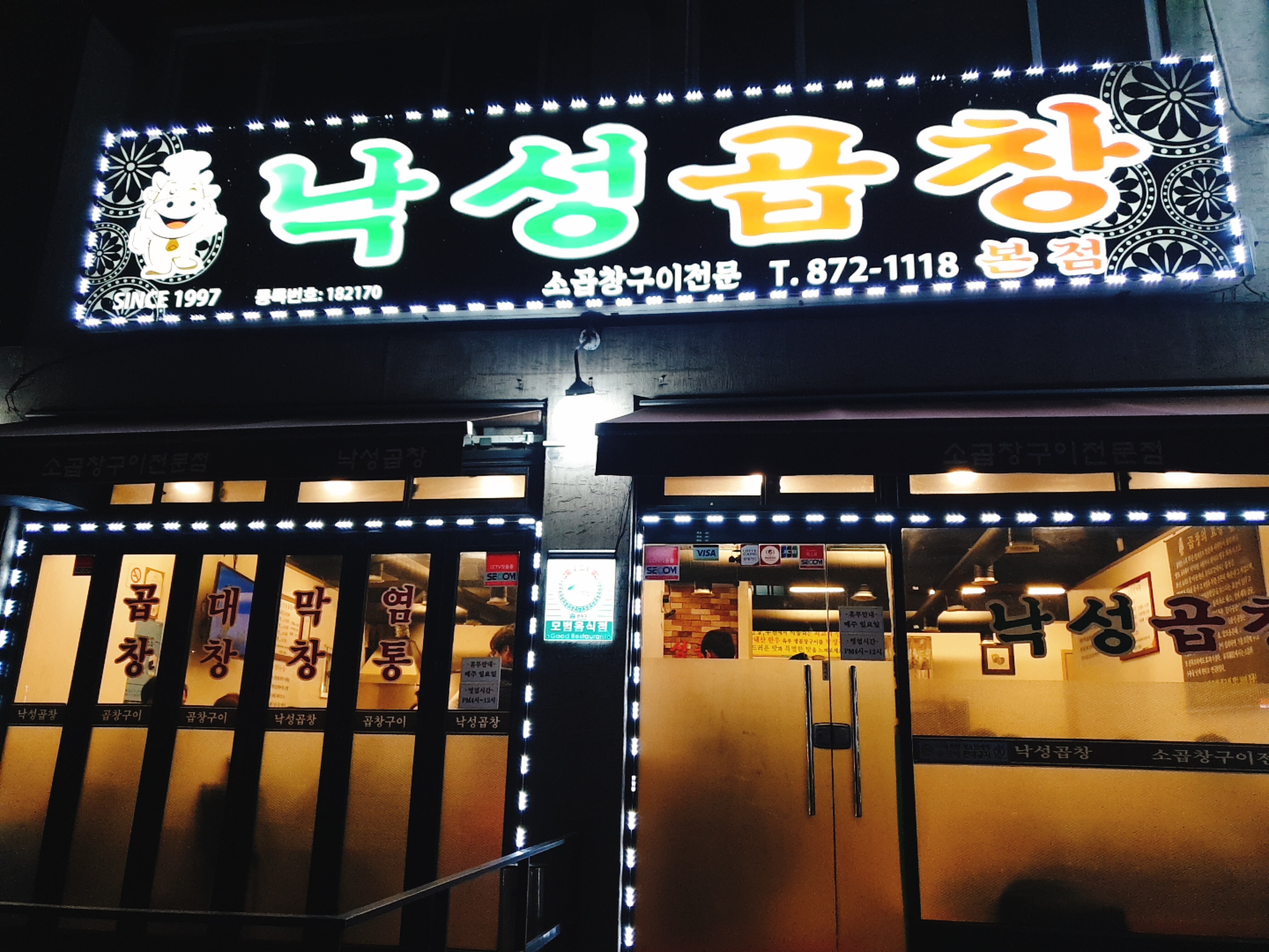서울대입구역 근처에는 이상하게 곱창집이 많은데, 그 중 높은 인기를 자랑하는 곱창집, 낙성곱창을 소개한다! 사장님이 친절하기로 유명한 곳!