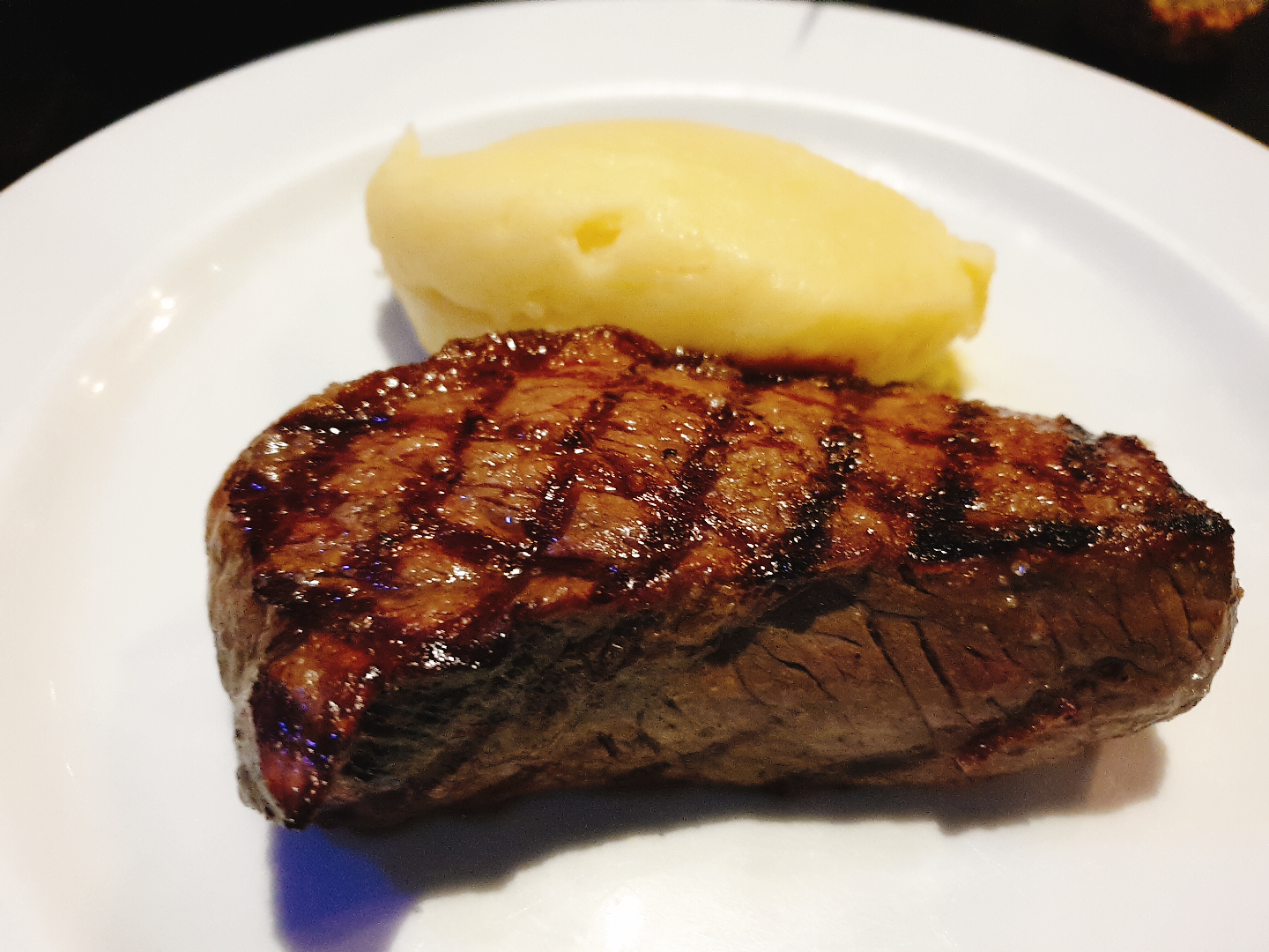 12불짜리 서로인 스테이크와 메쉬드 포테이토.