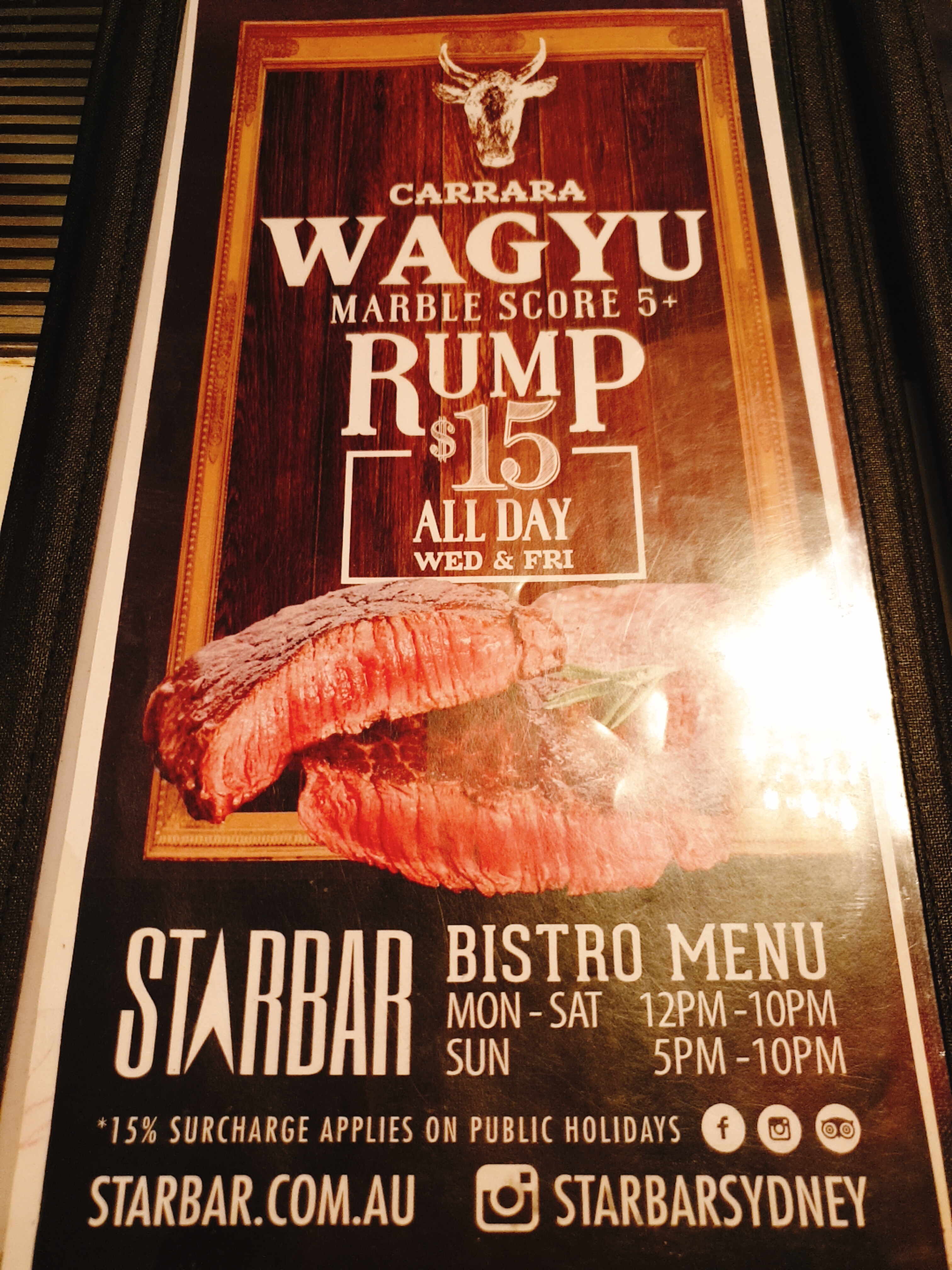 호주여행 1-2 : 시드니 가성비 스테이크 맛집, STAR BAR, 시드니 12달러 스테이크, 호주 클럽 본문