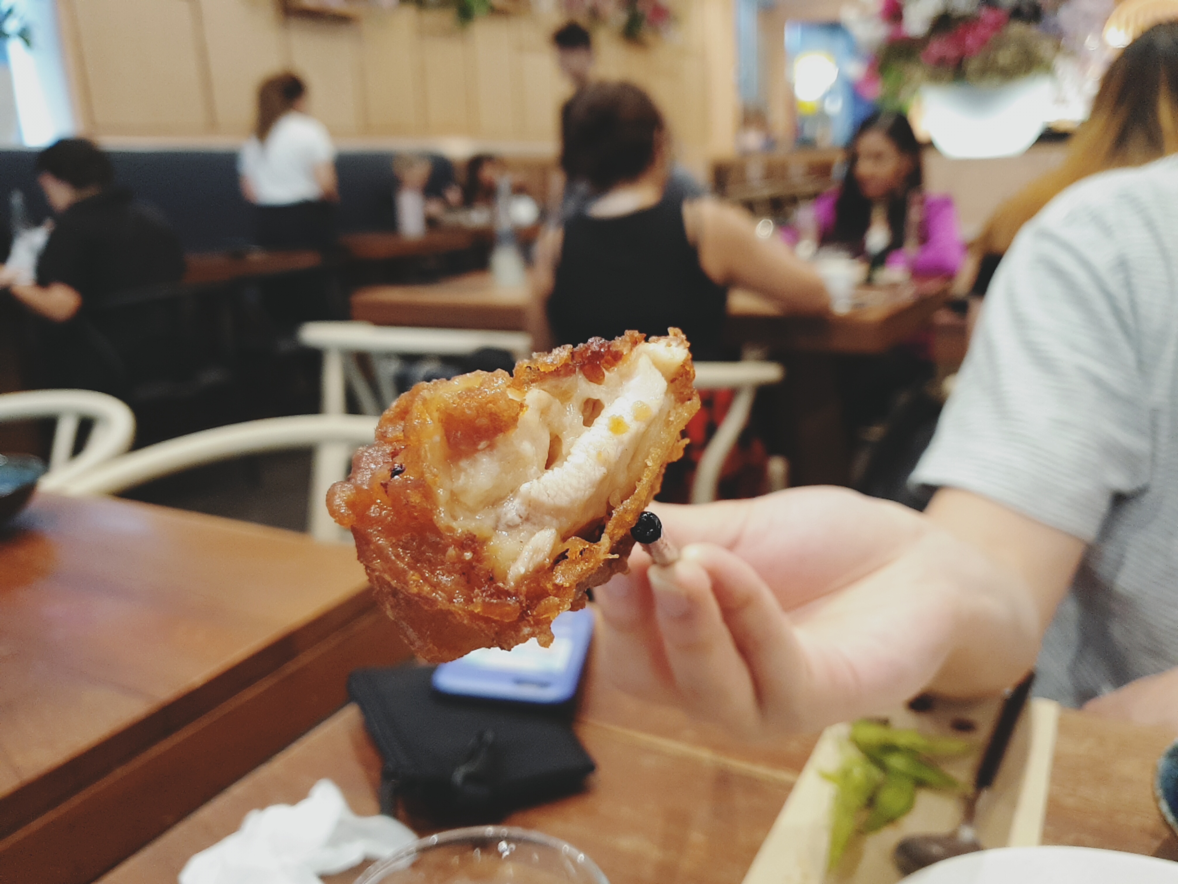 탄탄면과 함께 나오는 닭고기 튀김. 껍질 식감이 독특하다.
