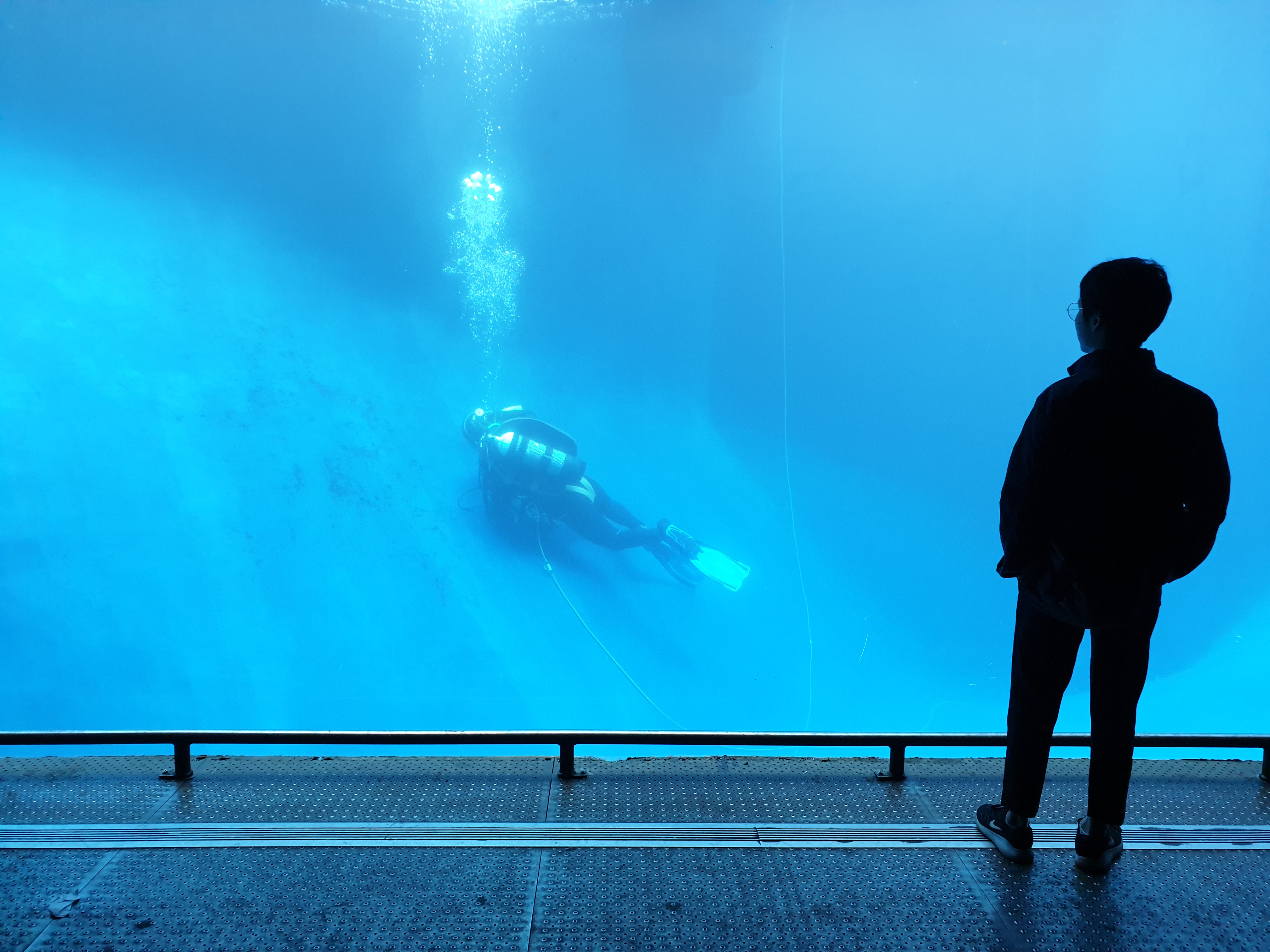 수족관에서 잠수부들이 청소를 하고 있었다!