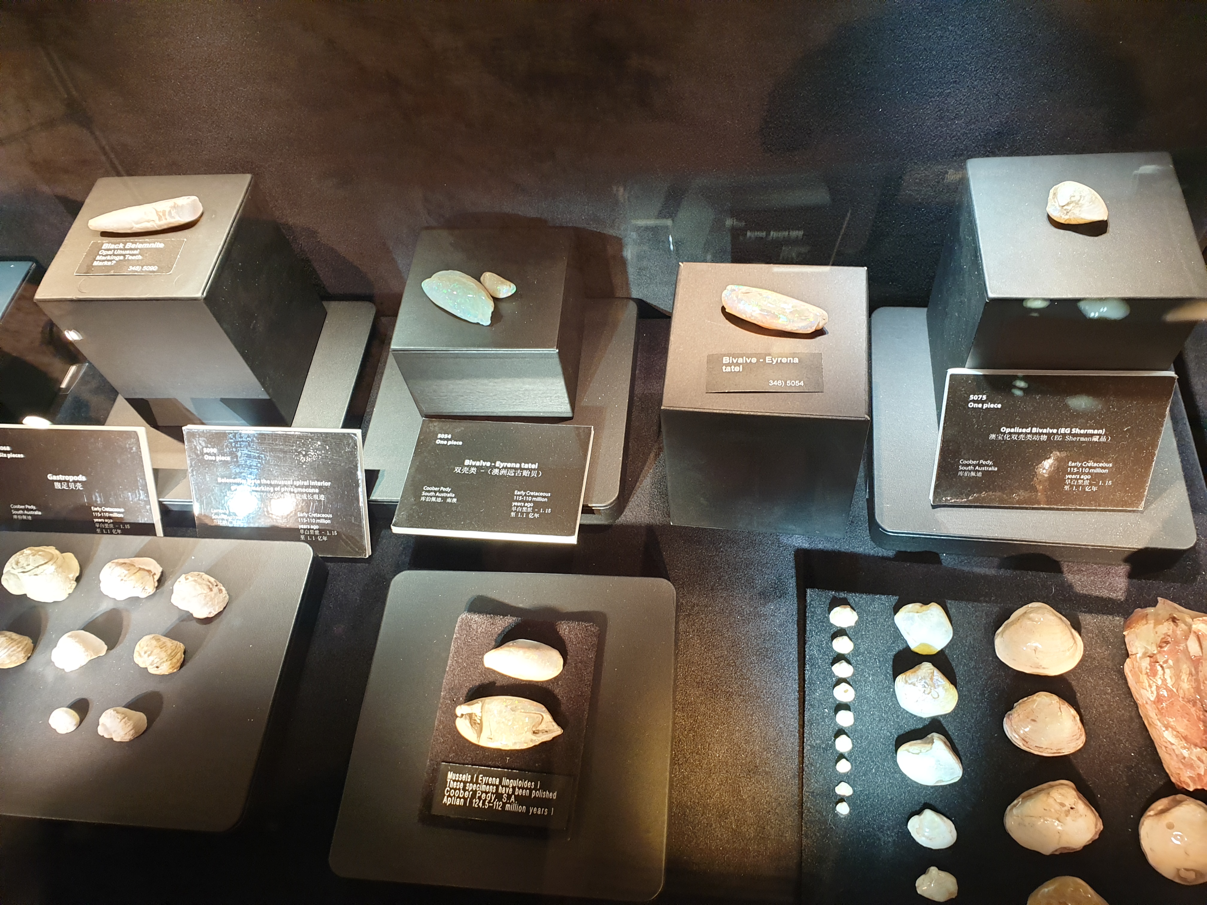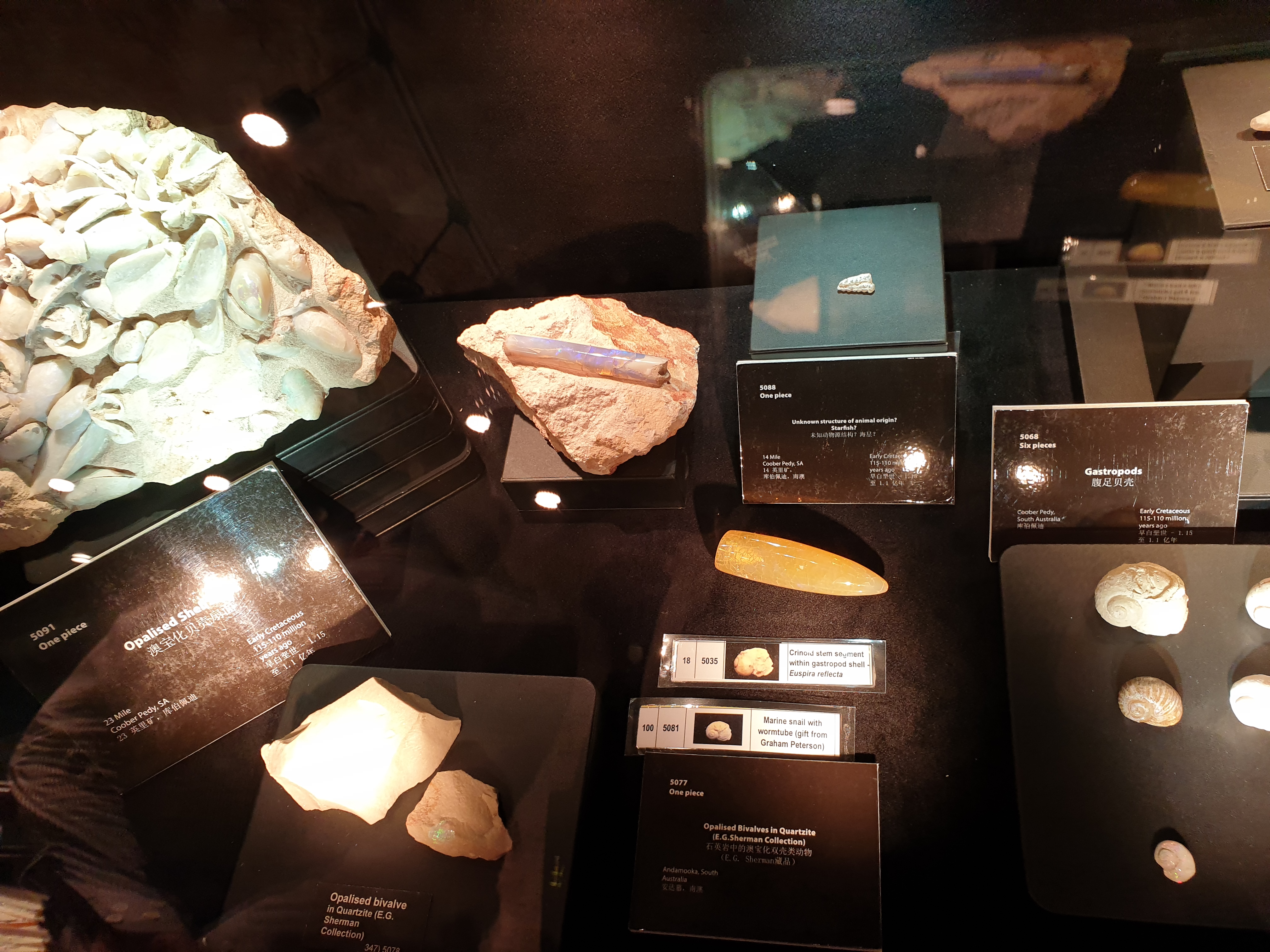 전시용으로 보이는 큼직한 오팔들. 실제로 보면 웅장하다!