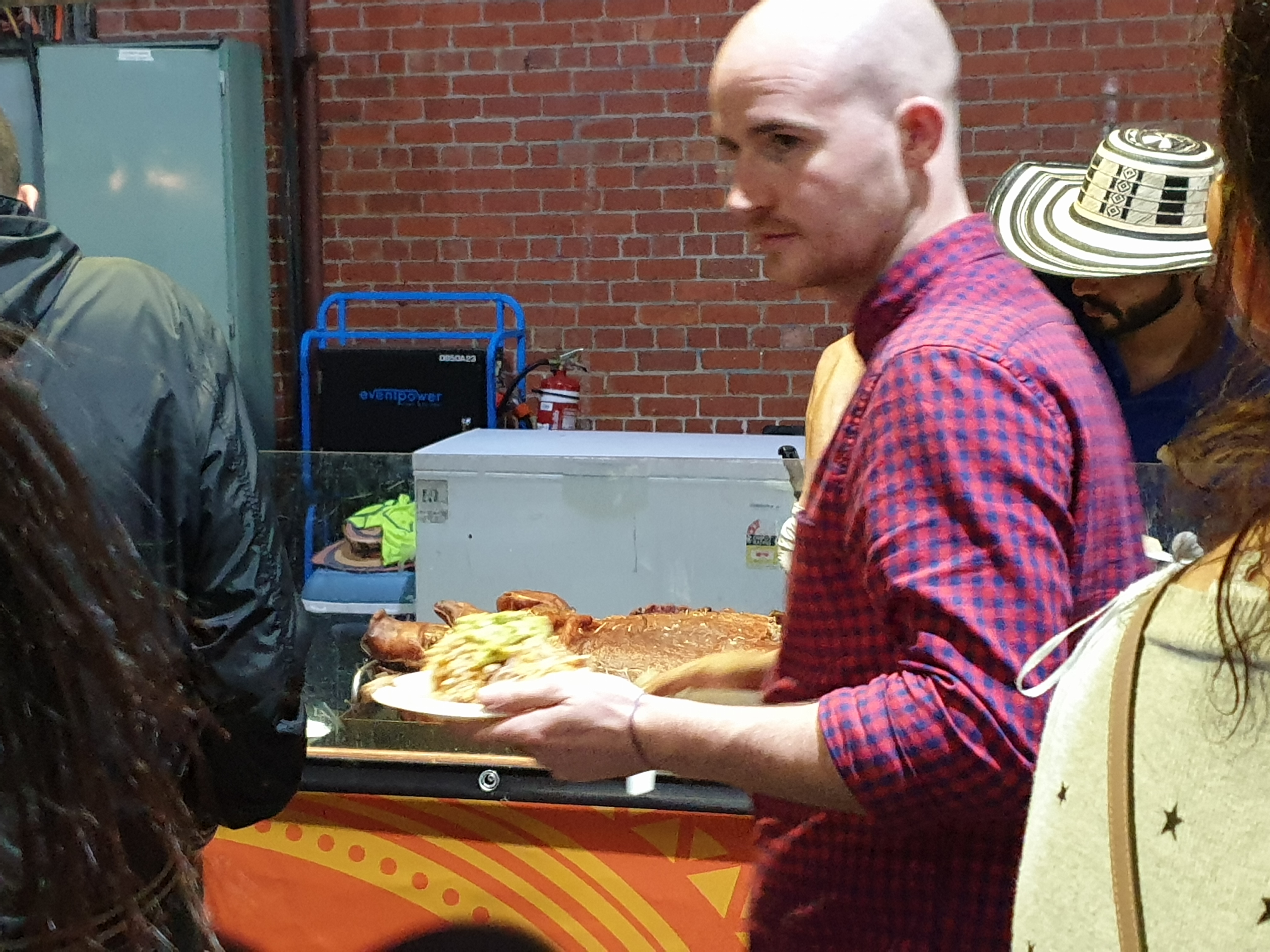 콜롬비아식을 파는 스트릿 푸드 노점.