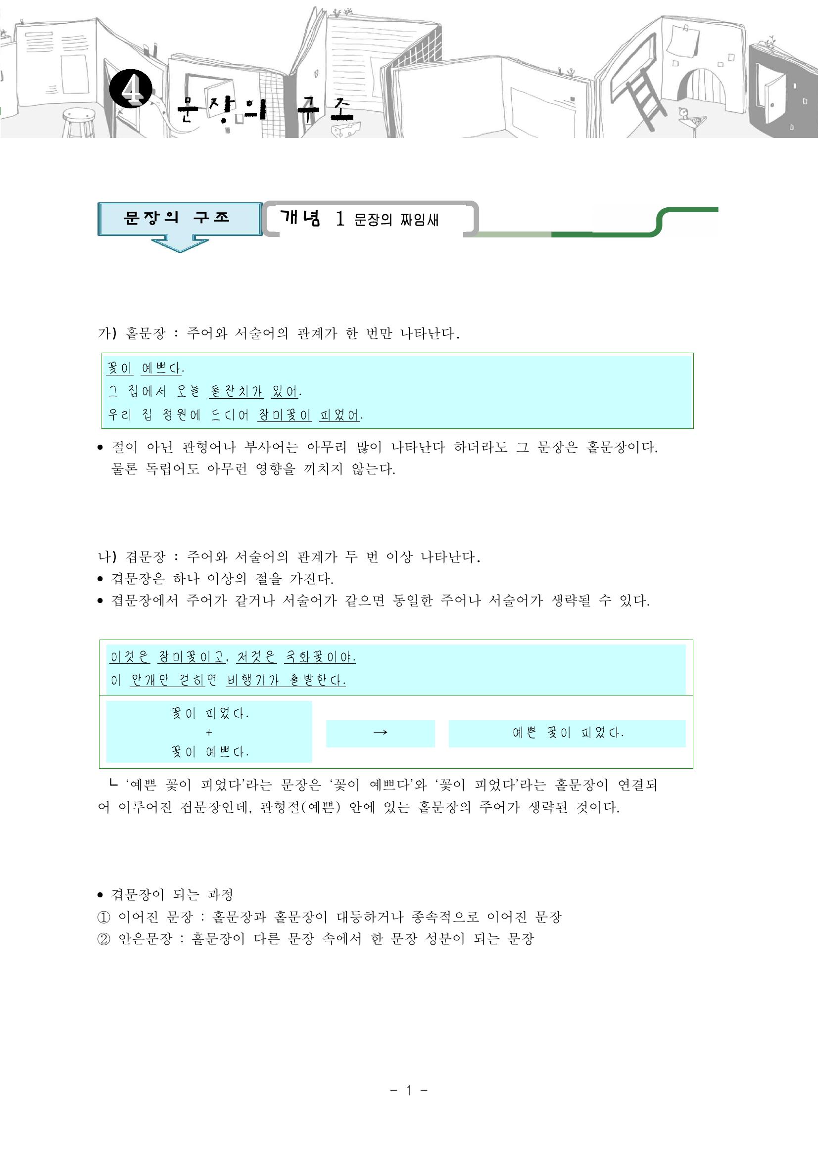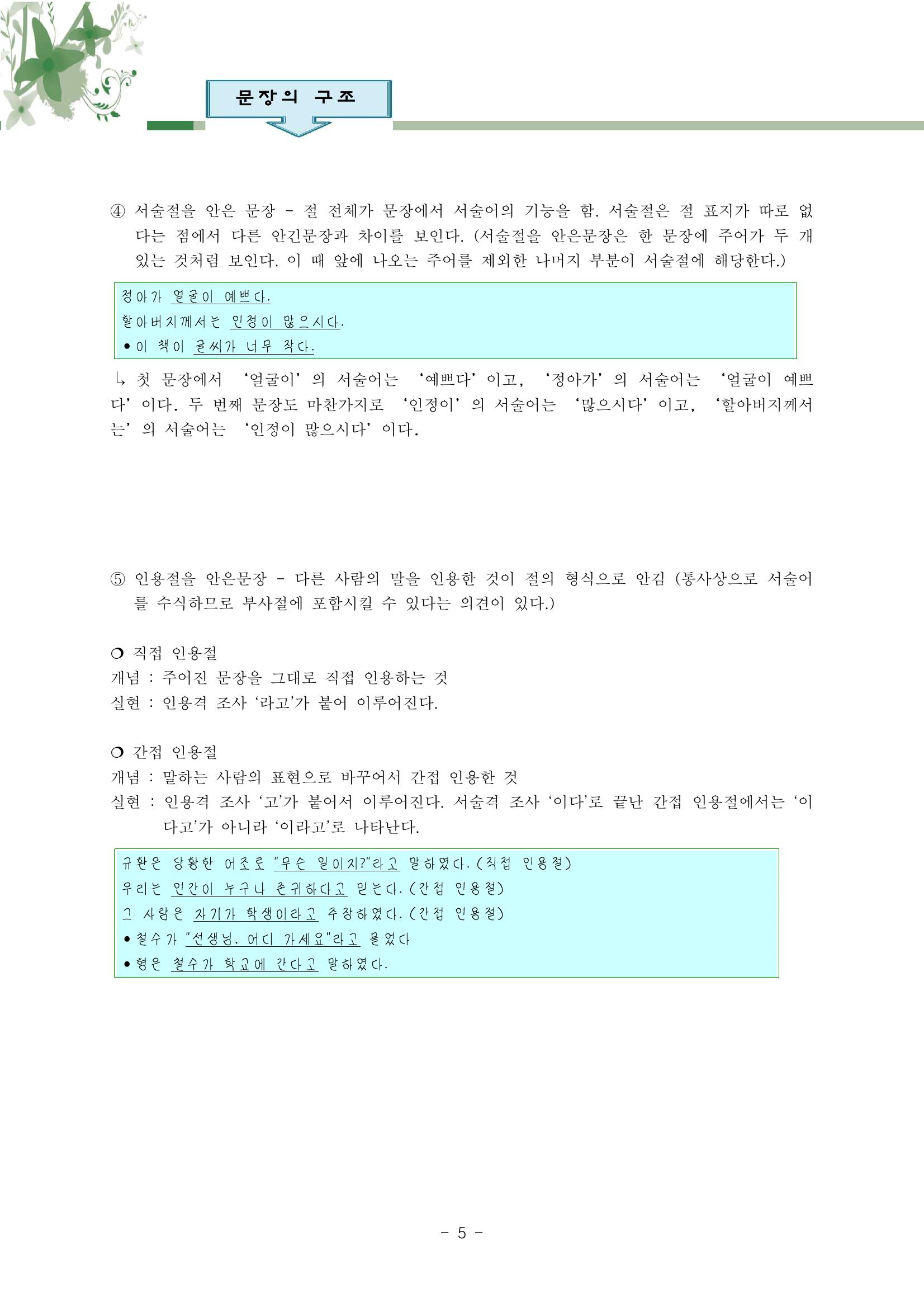 국어 문법 정리 : 문장의 구조 (홀문장, 겹문장, 안은 문장, 안긴 문장, 명사절, 관형절, 부사절, 서술절, 인용절) 본문