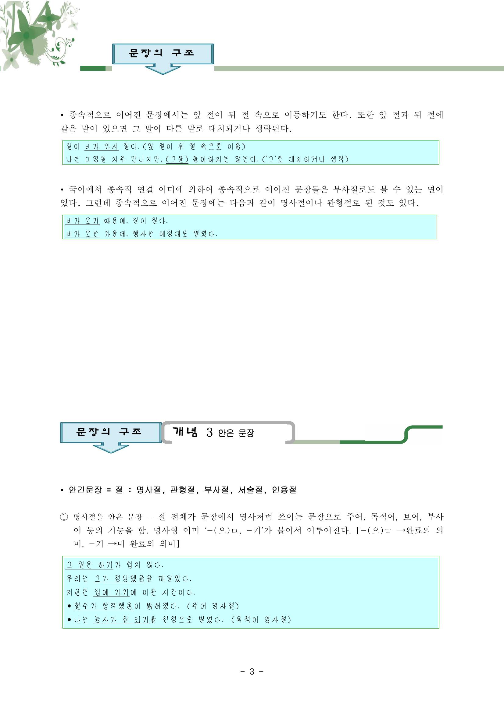 국어 문법 정리 : 문장의 구조 (홀문장, 겹문장, 안은 문장, 안긴 문장, 명사절, 관형절, 부사절, 서술절, 인용절)