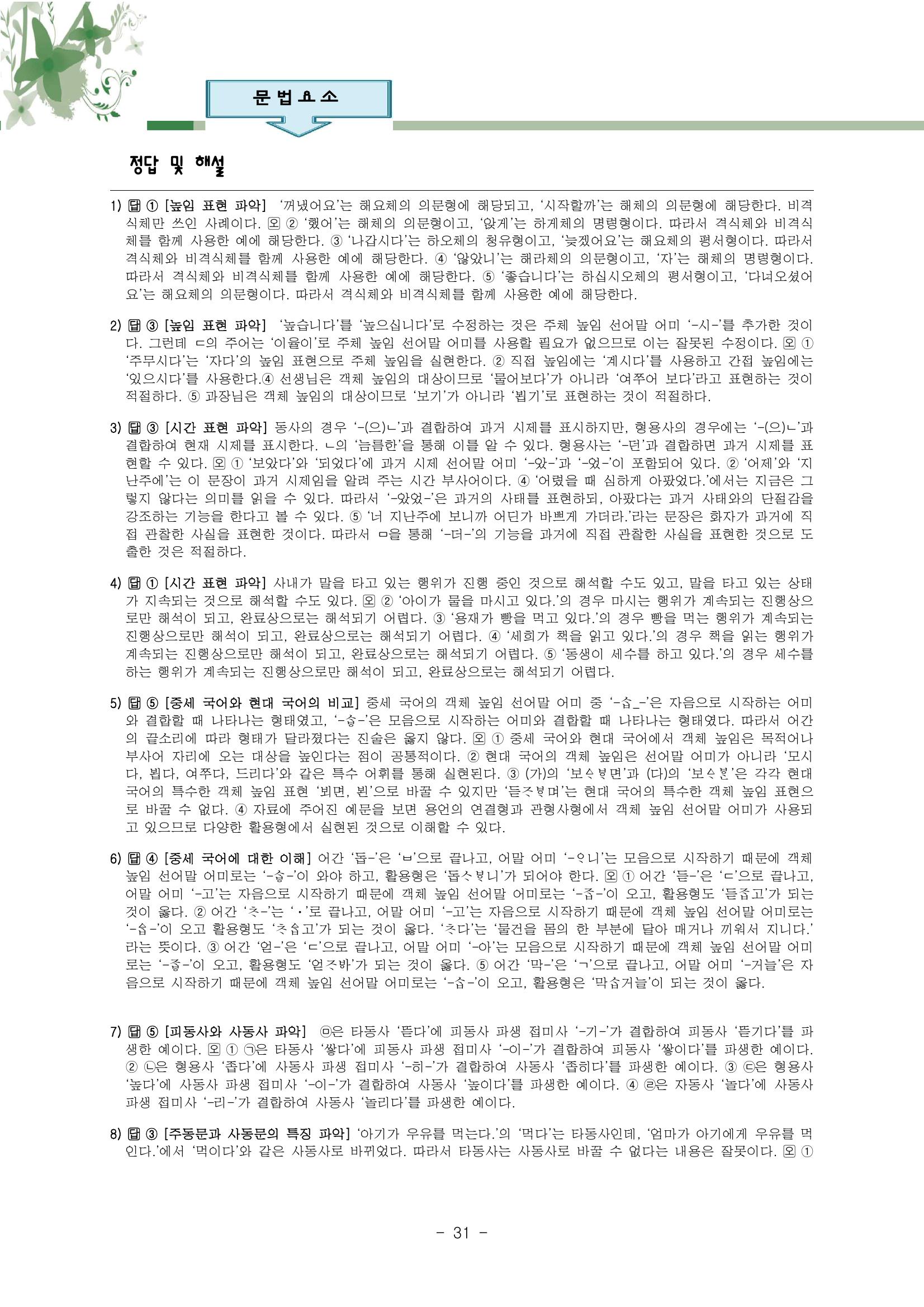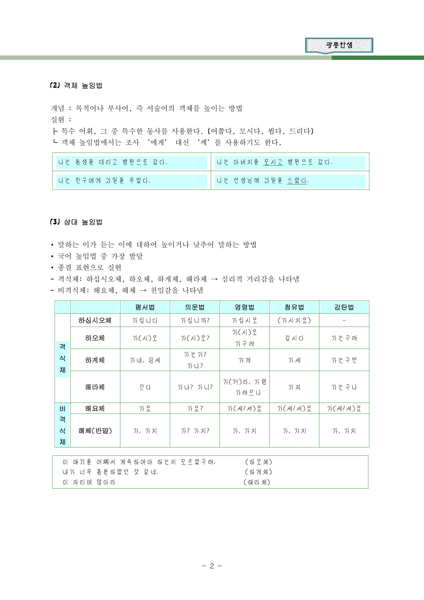 국어 문법 정리 : 문법 요소(주체 높임법, 객체 높임법, 상대 높임법, 시제, 동작상) 본문