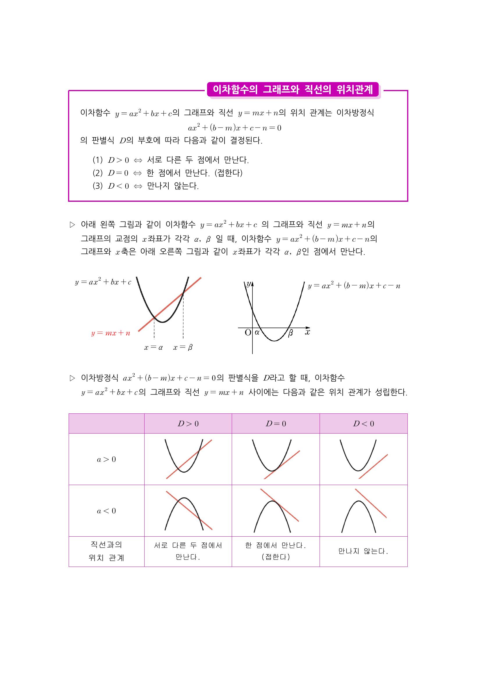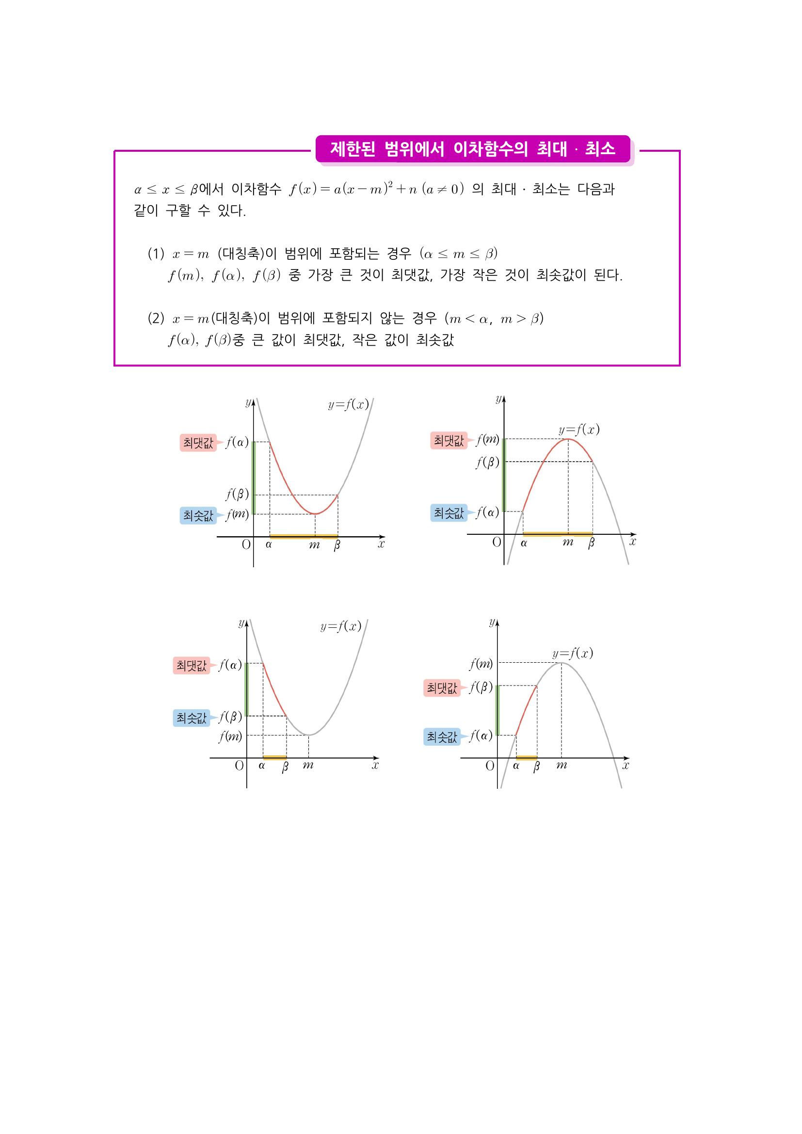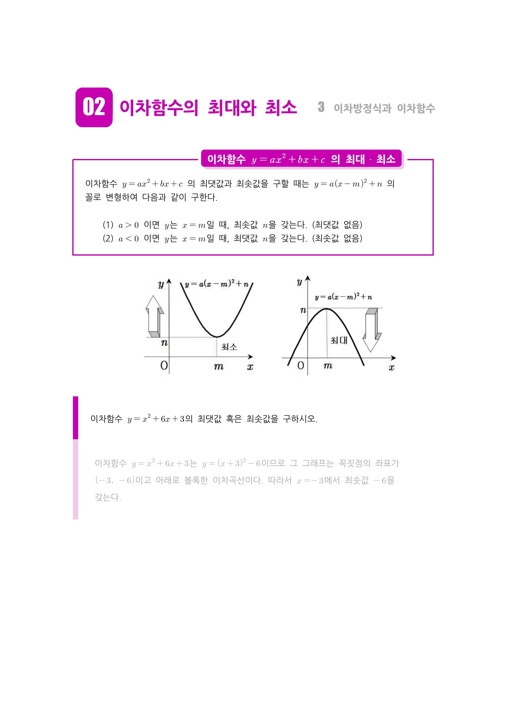수학 개념 정리/공식 : 이차함수의 그래프와 이차방정식의 해, 이차함수의 최대와 최소, 이차방정식과 이차함수 본문