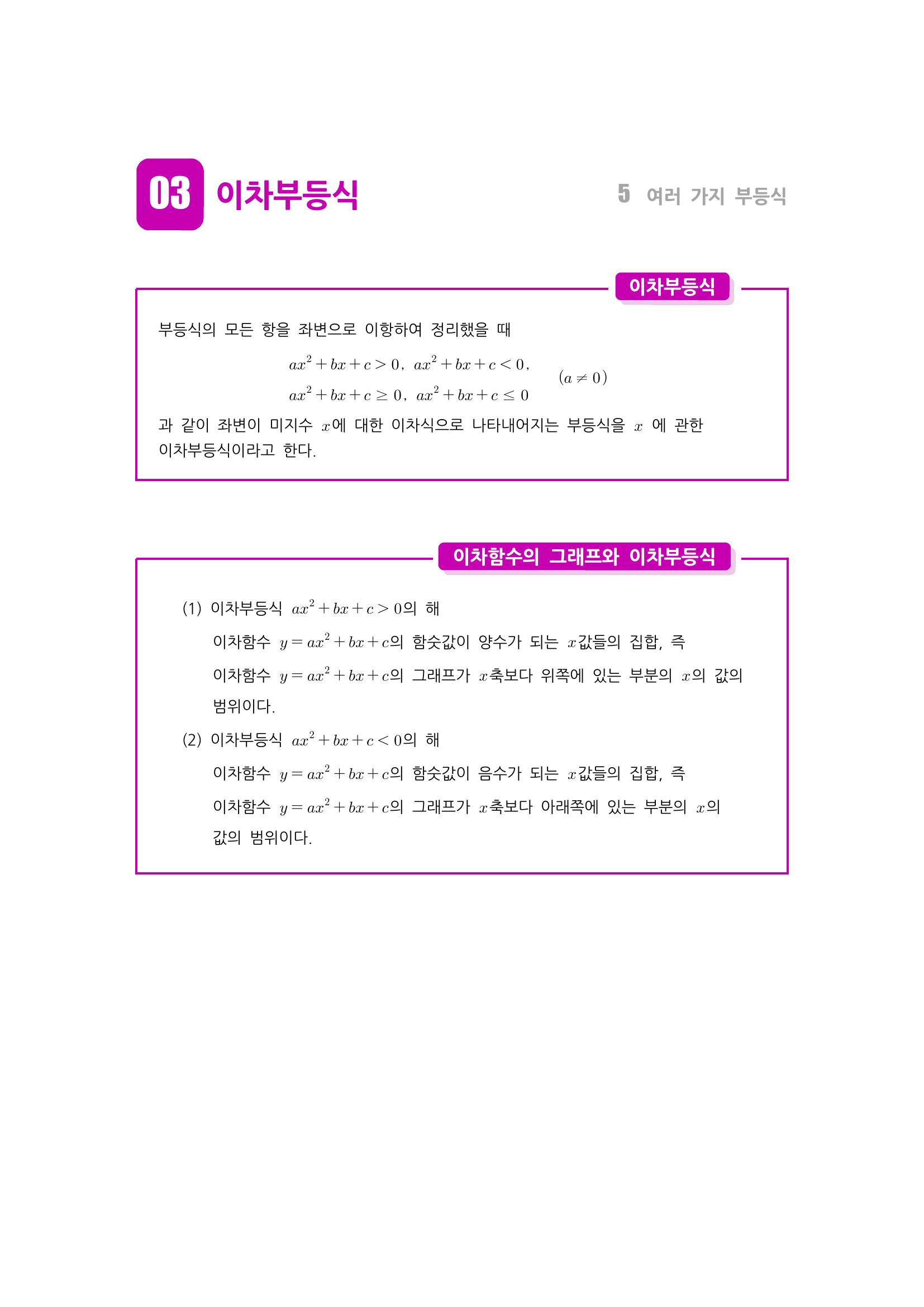 수학 개념 정리/공식 : 연립일차부등식, 연립일차부등식의 풀이, 절댓값을 포함한 일차부등식, 이차부등식, 이차함수의 그래프와 이차부등식, 이차부등식의 해