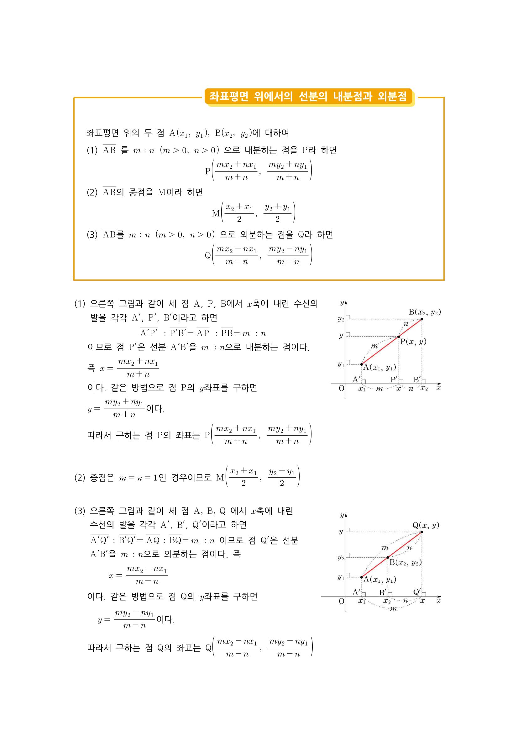 수학 개념 정리/공식 : 두 점 사이의 거리, 선분의 내분점과 외분점 본문