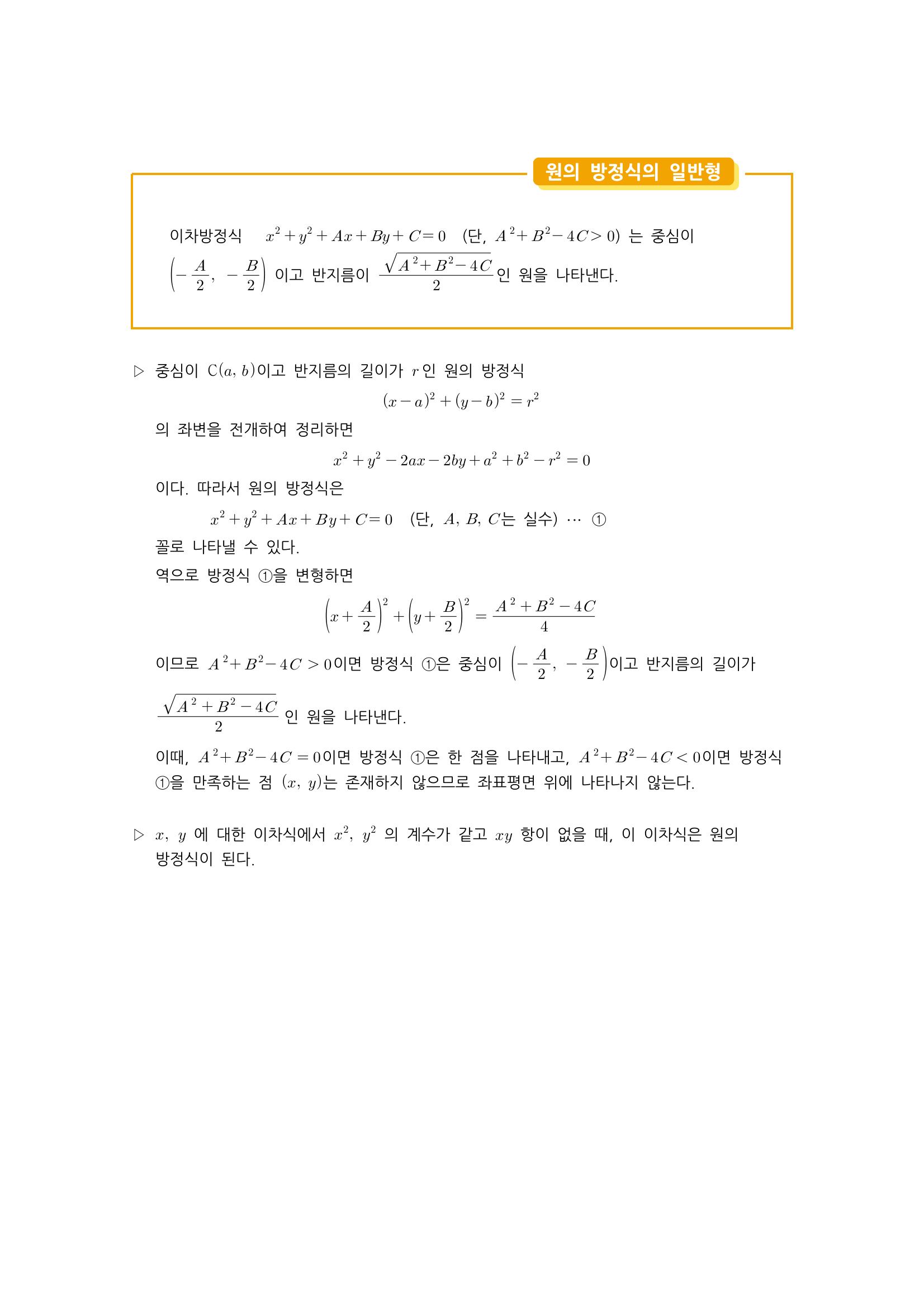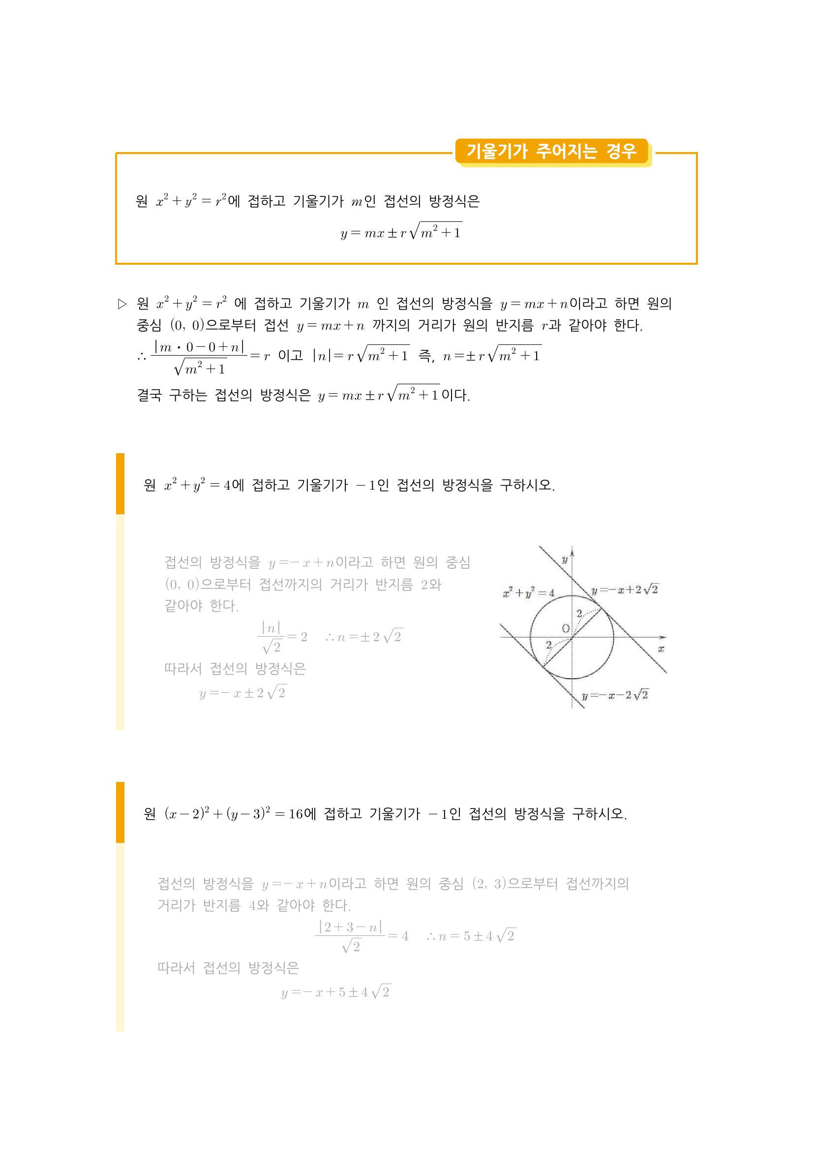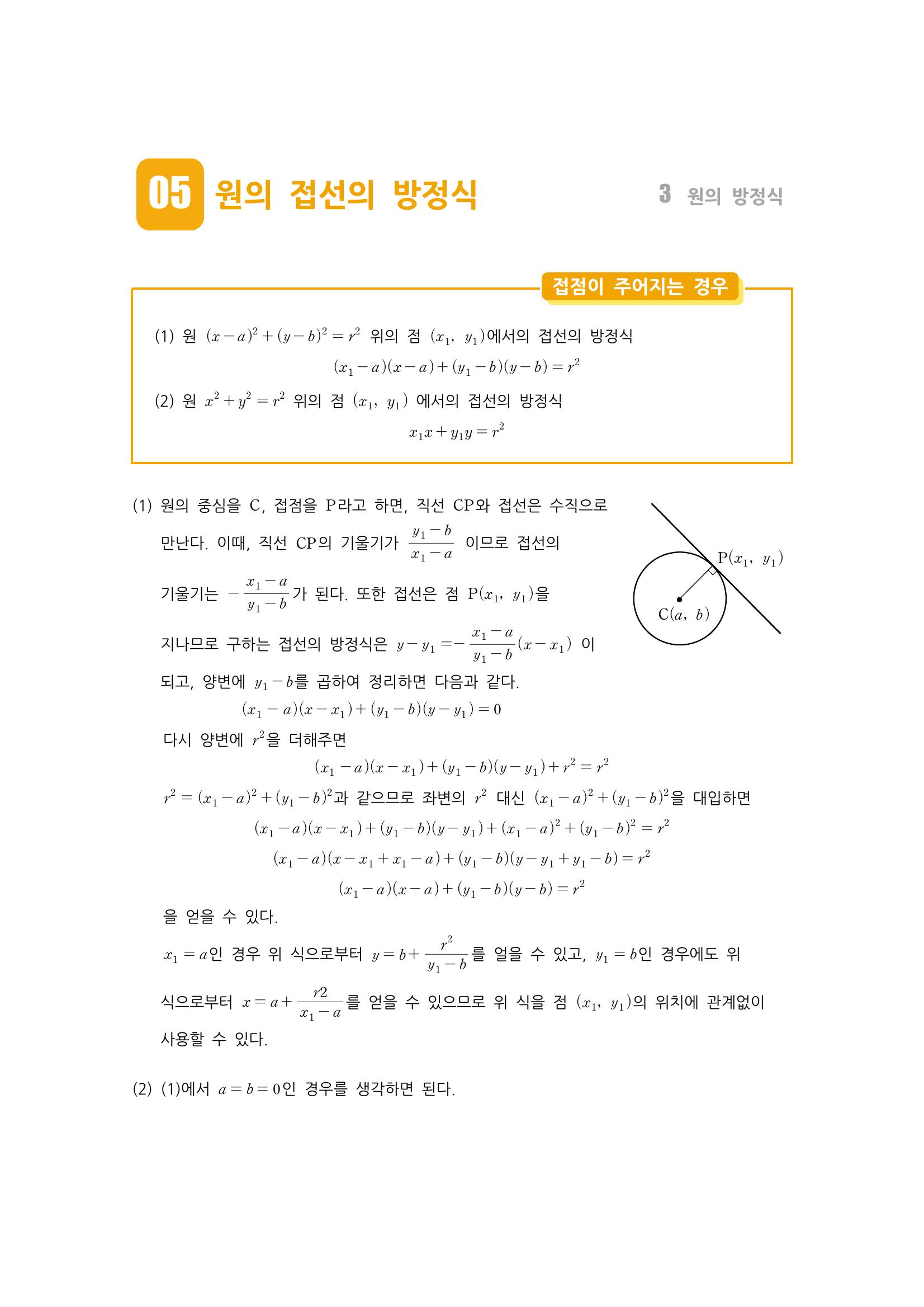 수학 개념 정리/공식 : 원의 방정식, 축에 접하는 원의 방정식, 두 원의 교점을 지나는 원, 원과 직선의 위치 관계, 원의 접선의 방정식 본문