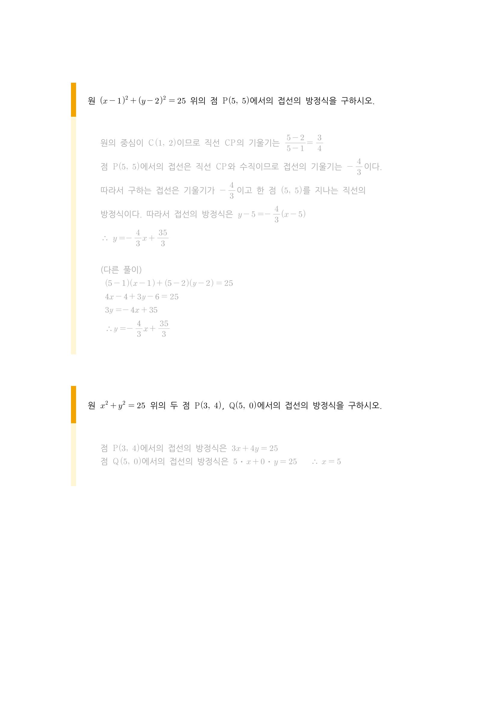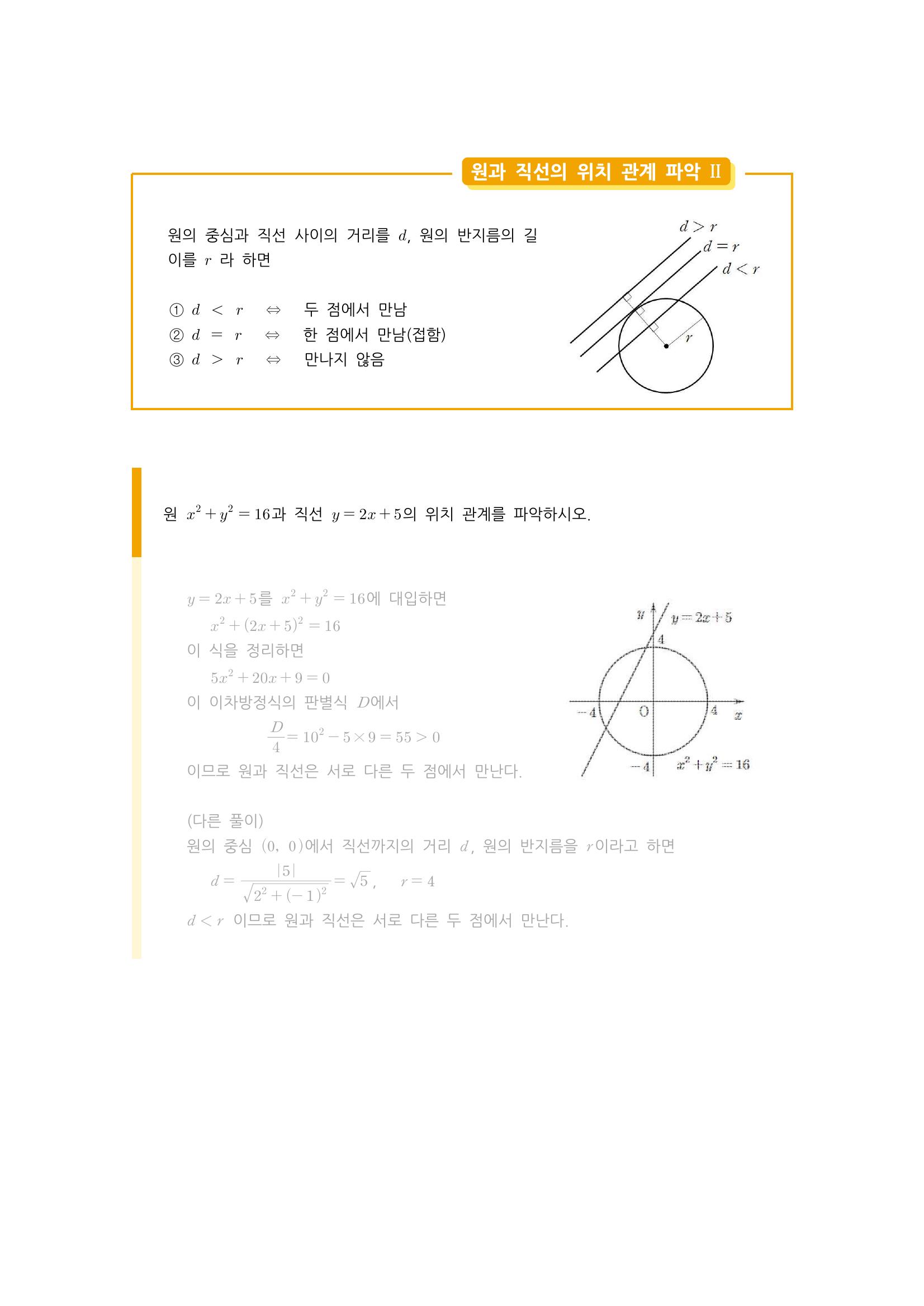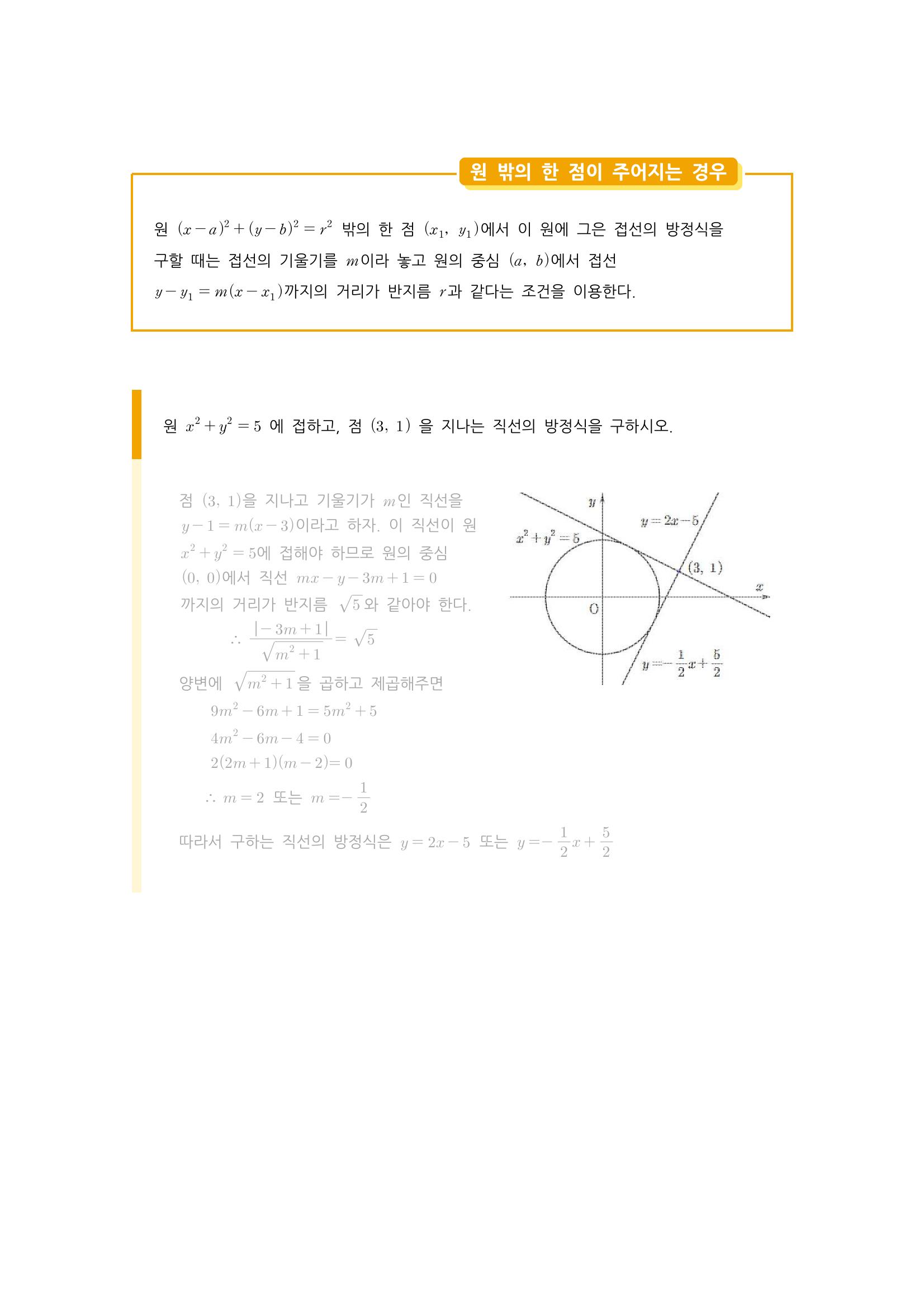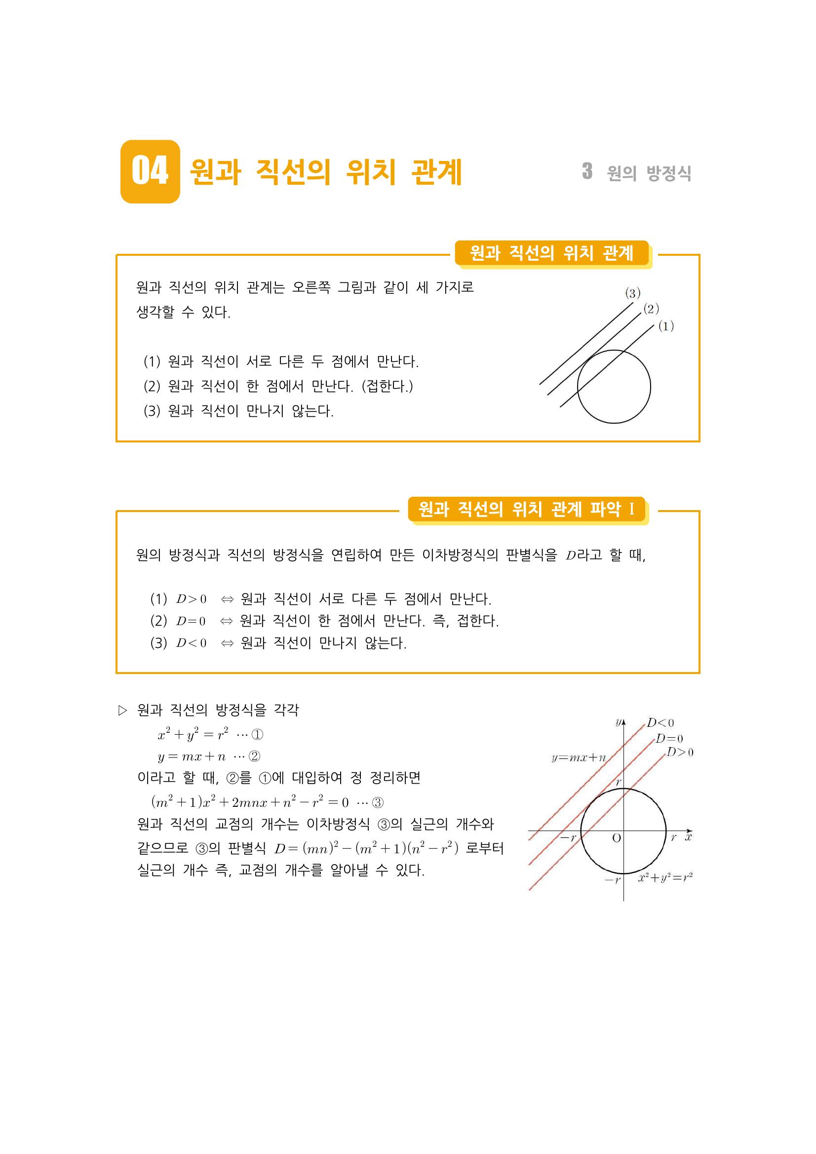 수학 개념 정리/공식 : 원의 방정식, 축에 접하는 원의 방정식, 두 원의 교점을 지나는 원, 원과 직선의 위치 관계, 원의 접선의 방정식 본문