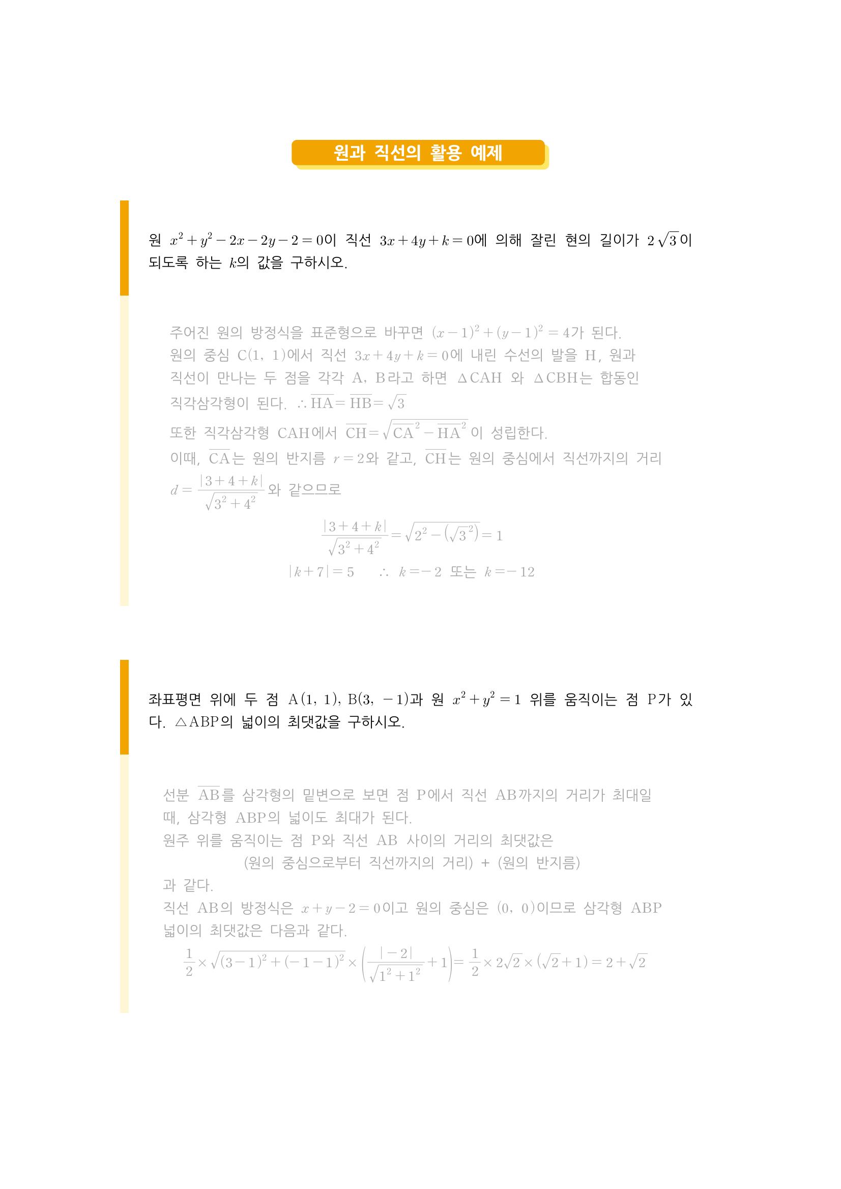 수학 개념 정리/공식 : 원의 방정식, 축에 접하는 원의 방정식, 두 원의 교점을 지나는 원, 원과 직선의 위치 관계, 원의 접선의 방정식 본문