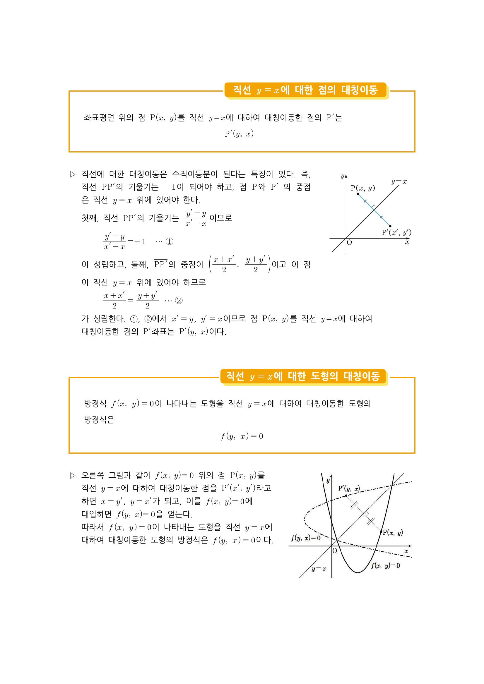 수학 개념 정리/공식 : 평행이동, 대칭이동, 점의 평행이동, 도형의 평행이동, x축을 기준으로 평행이동, y축을 기준으로 평행이동 본문