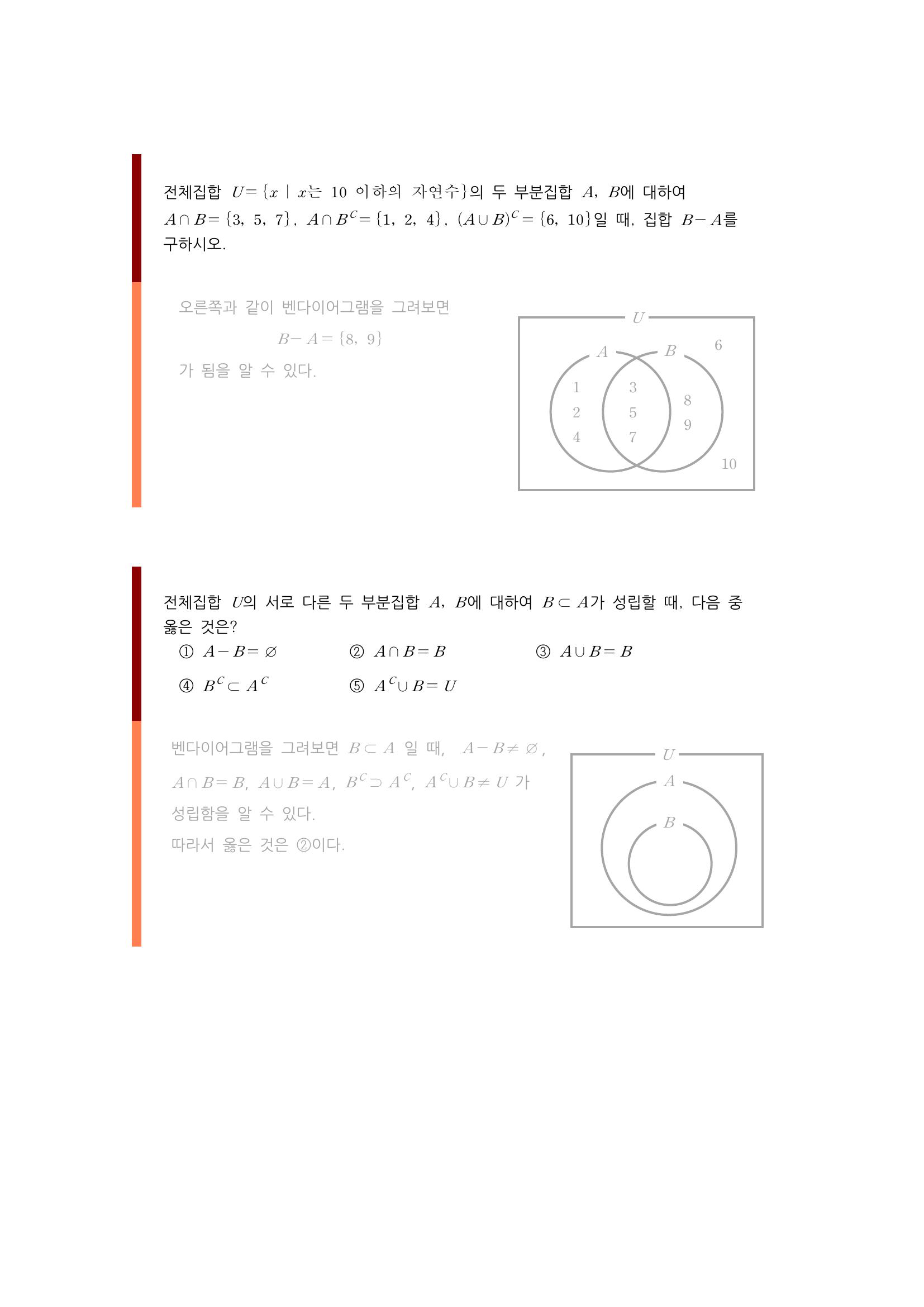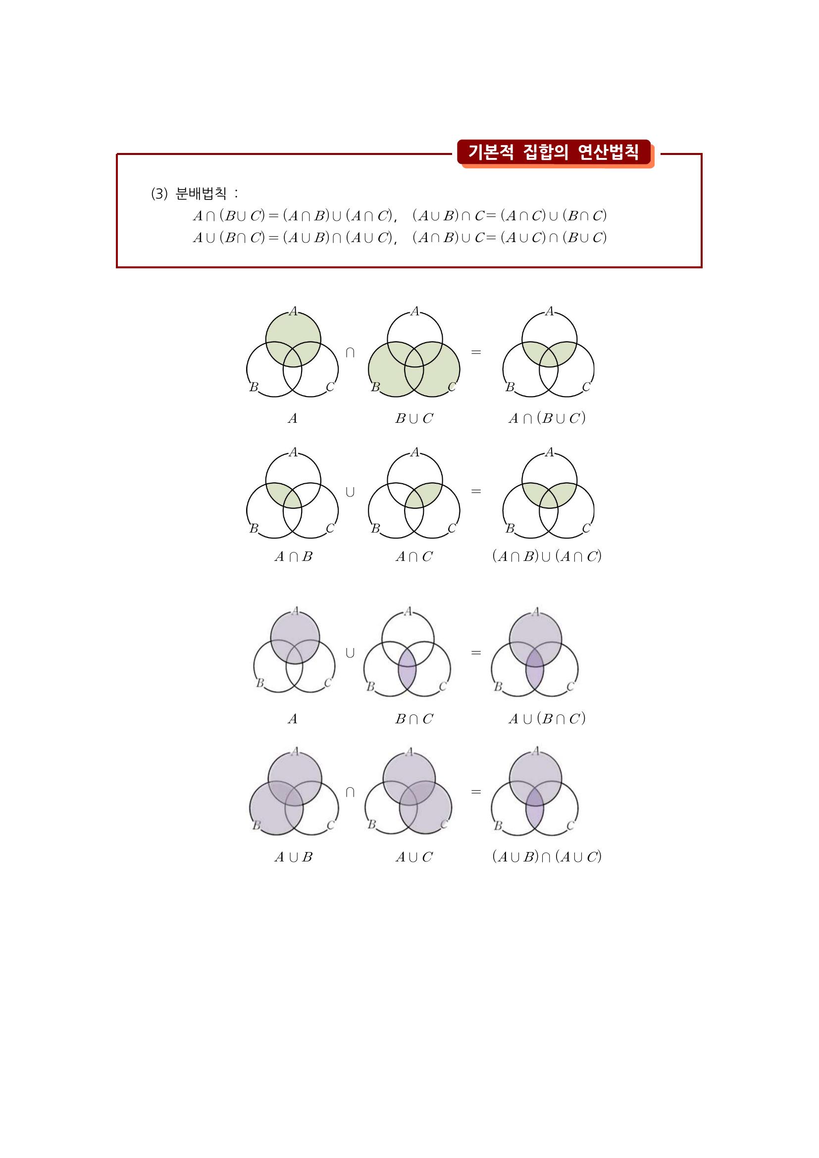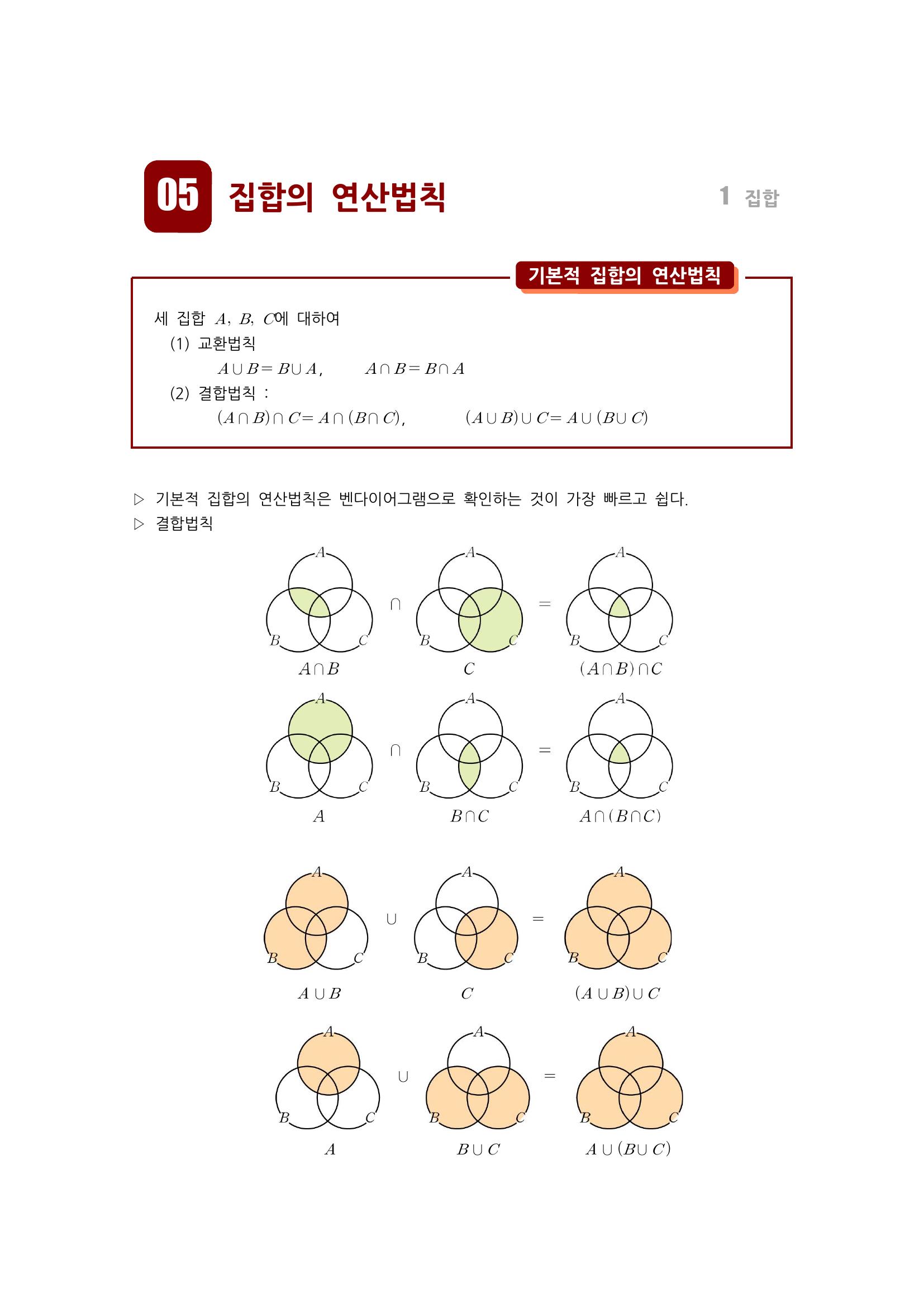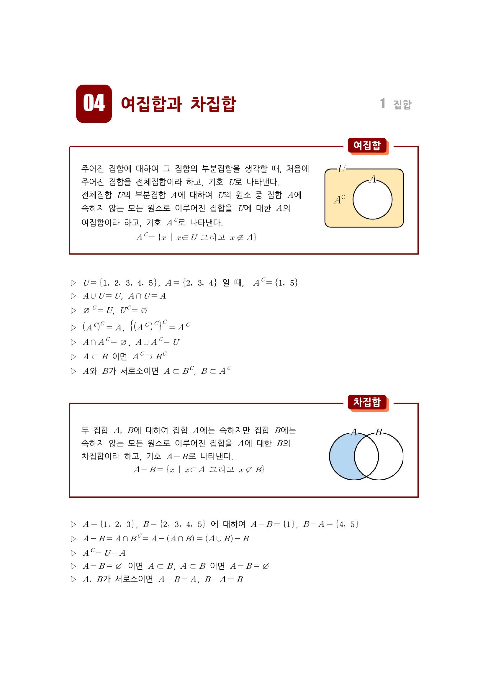 수학 개념 정리/공식 : 여집합과 차집합, 집합의 연산법칙(교환법칙, 결합법칙), 드모르간의 법칙, 합집합의 원소의 갯수 본문