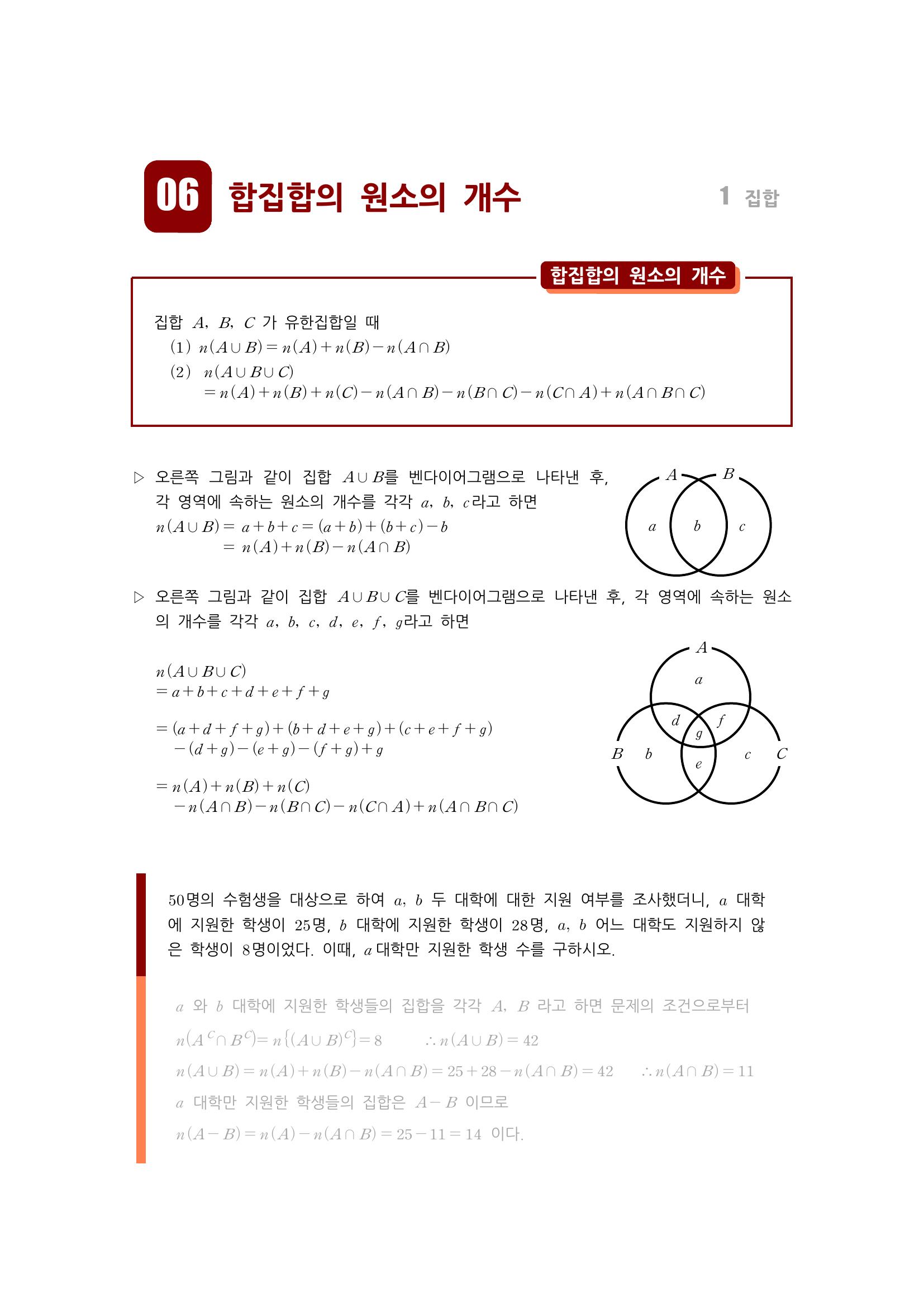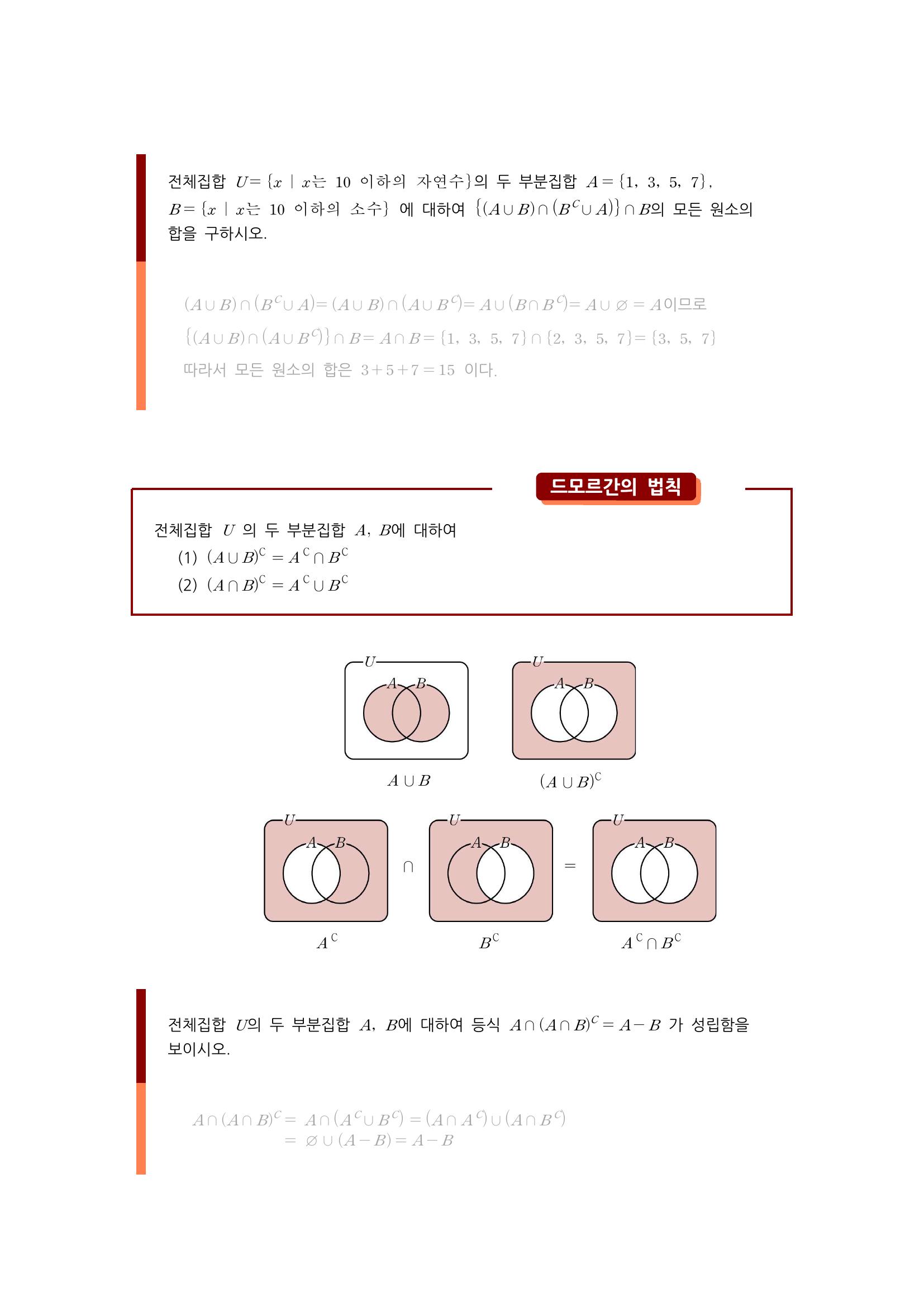 수학 개념 정리/공식 : 여집합과 차집합, 집합의 연산법칙(교환법칙, 결합법칙), 드모르간의 법칙, 합집합의 원소의 갯수 본문