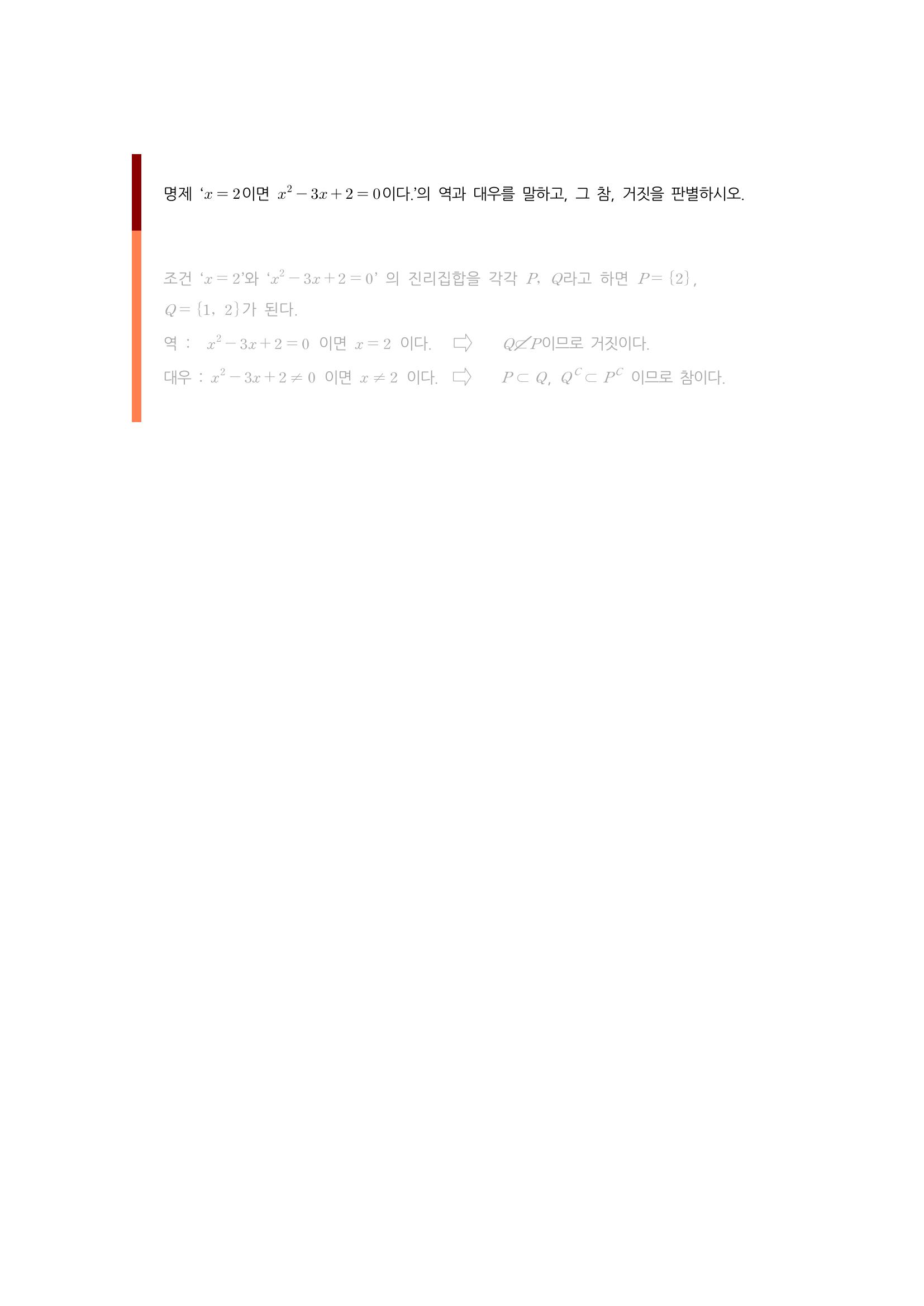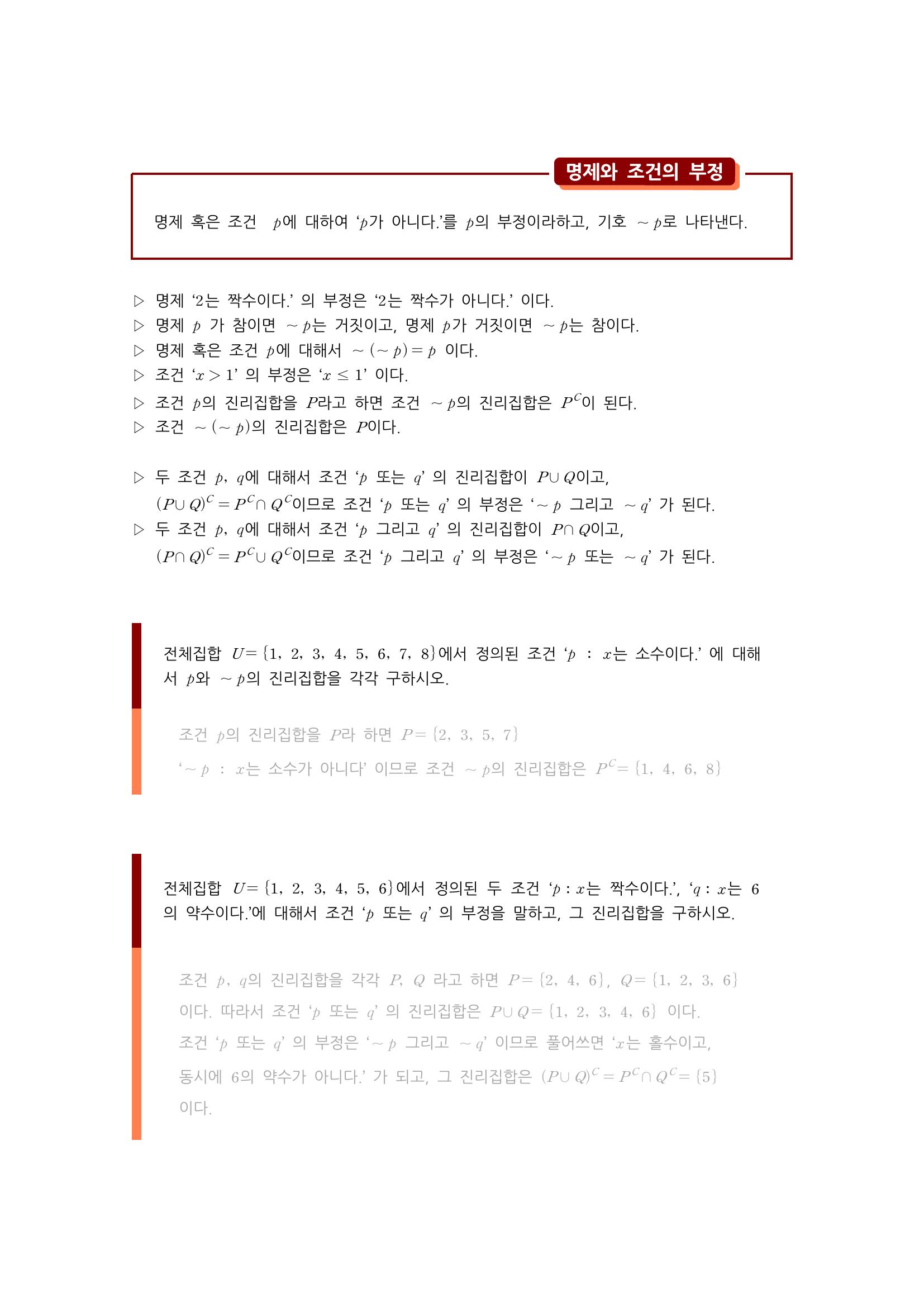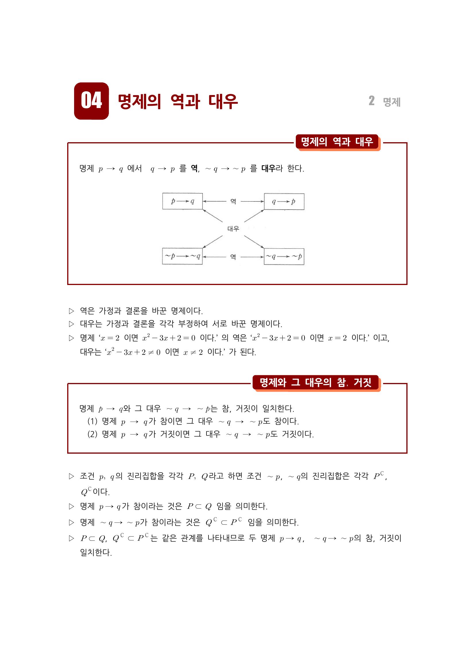 수학 개념 정리/공식 : 명제와 조건, 진리집합, 명제와 조건의 부정, 명제의 역과 대우, 삼단논법 본문