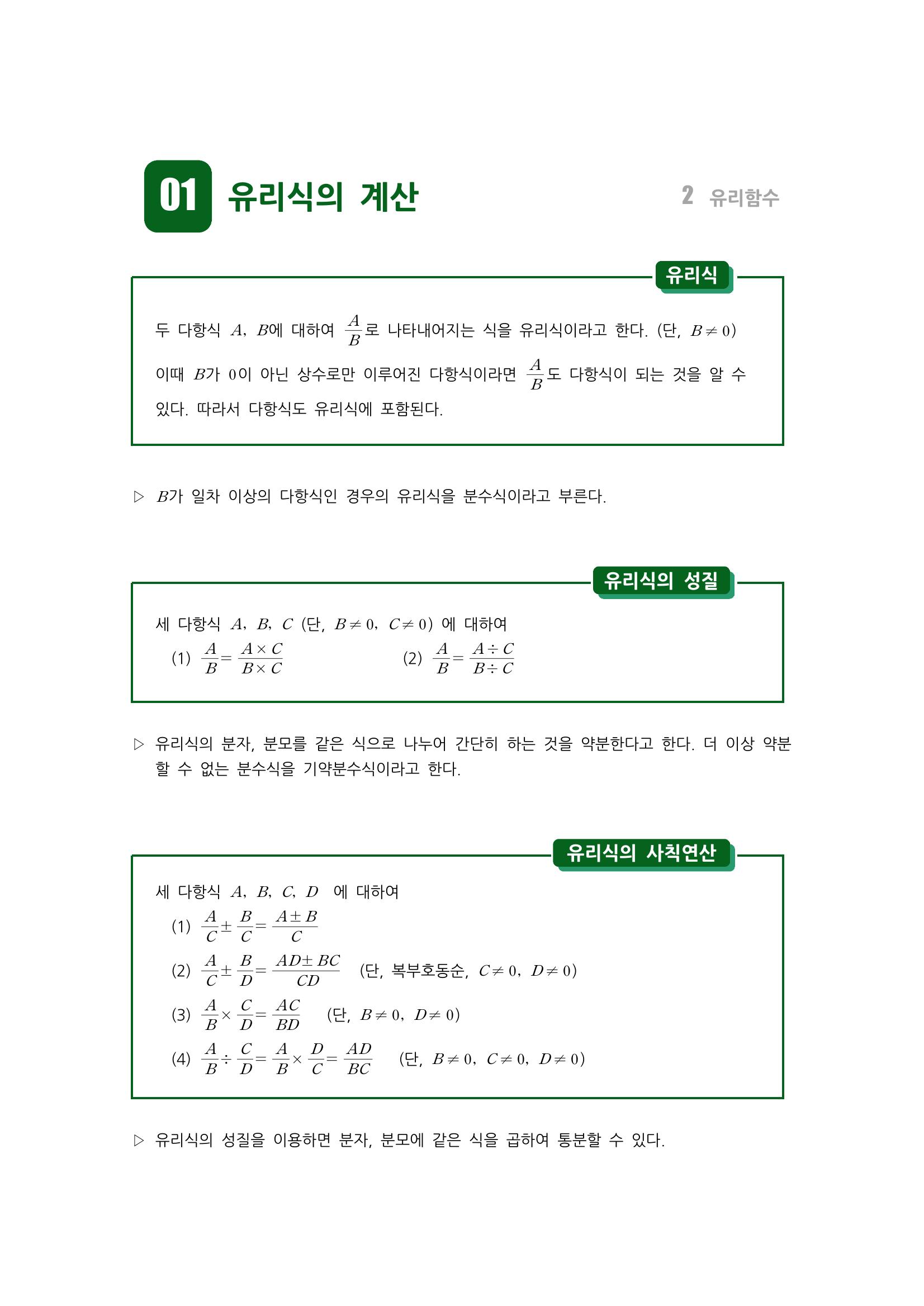 수학 개념 정리/공식 : 유리식, 유리식의 사칙연산, 부분분수, 번분수식, 유리함수