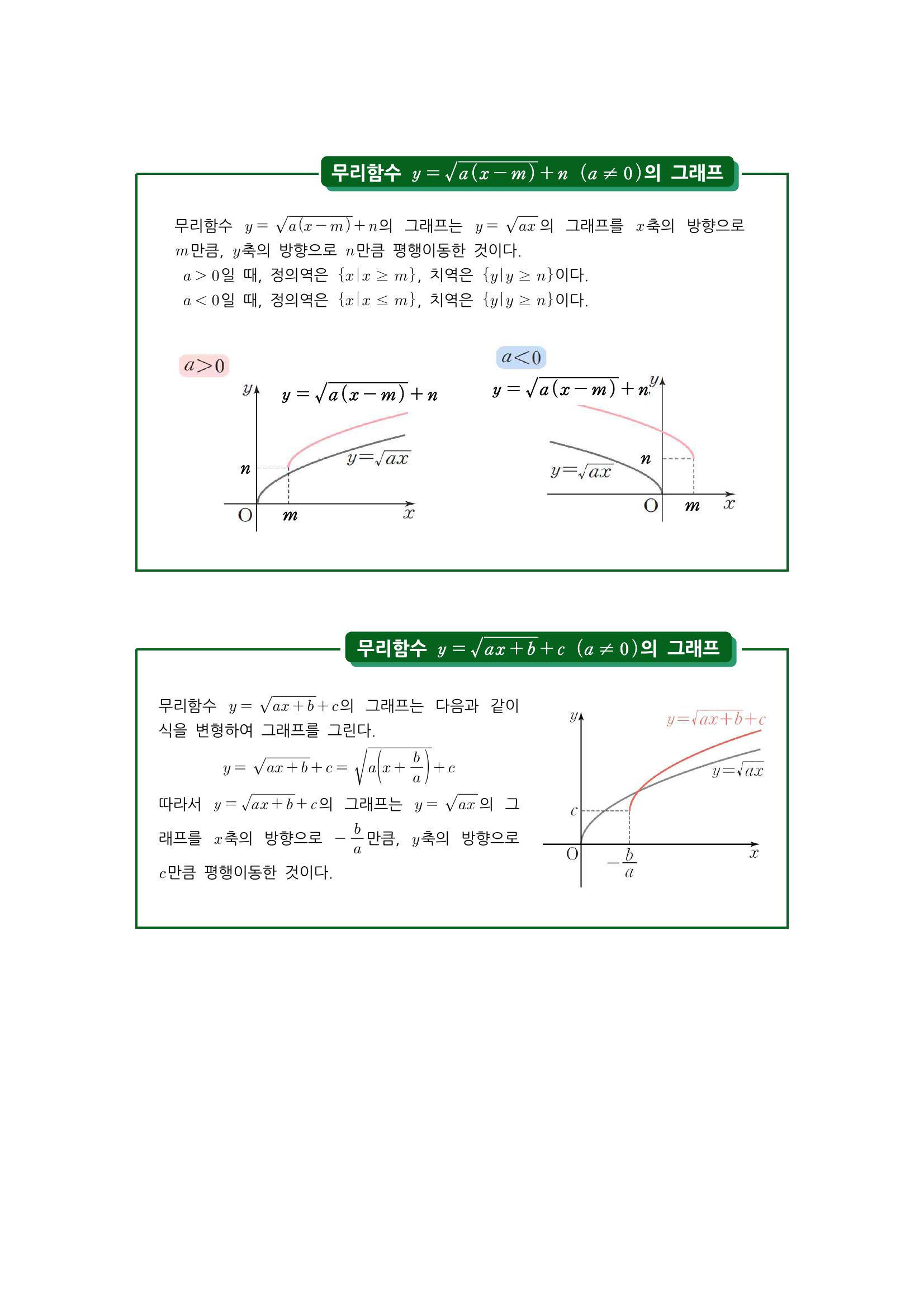 수학 개념 정리/공식 : 무리식, 분모의 유리화, 무리함수, 무리함수의 그래프