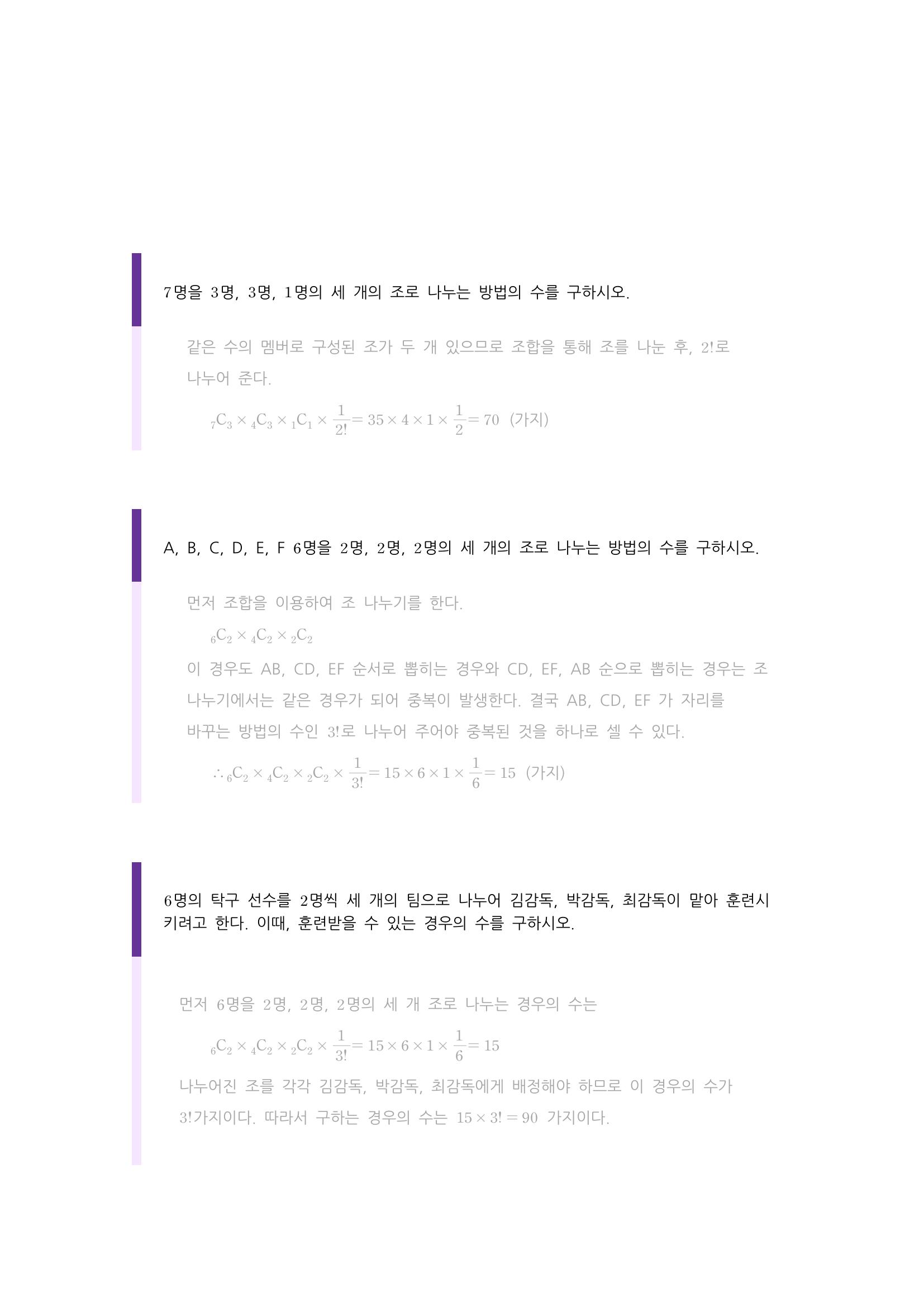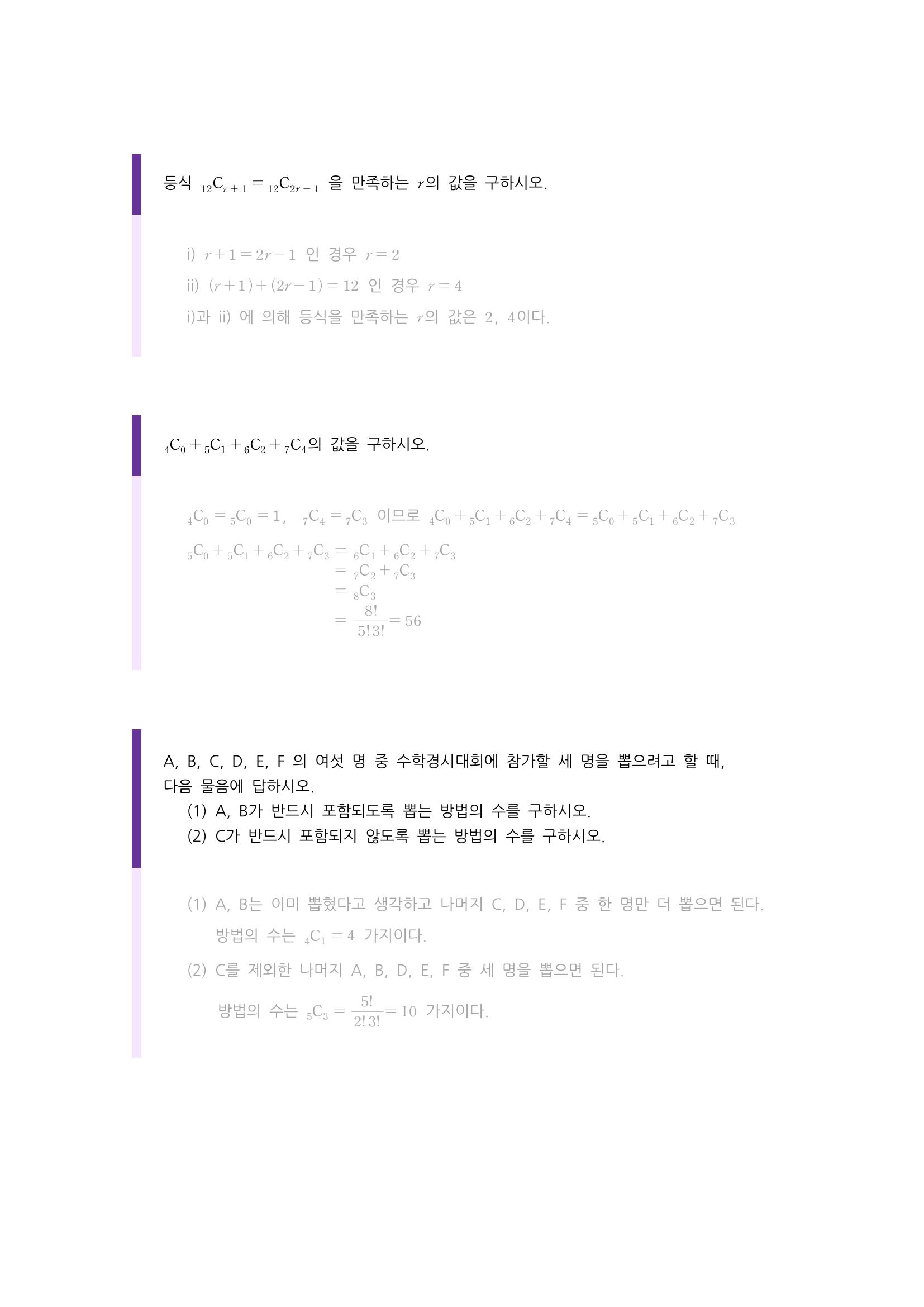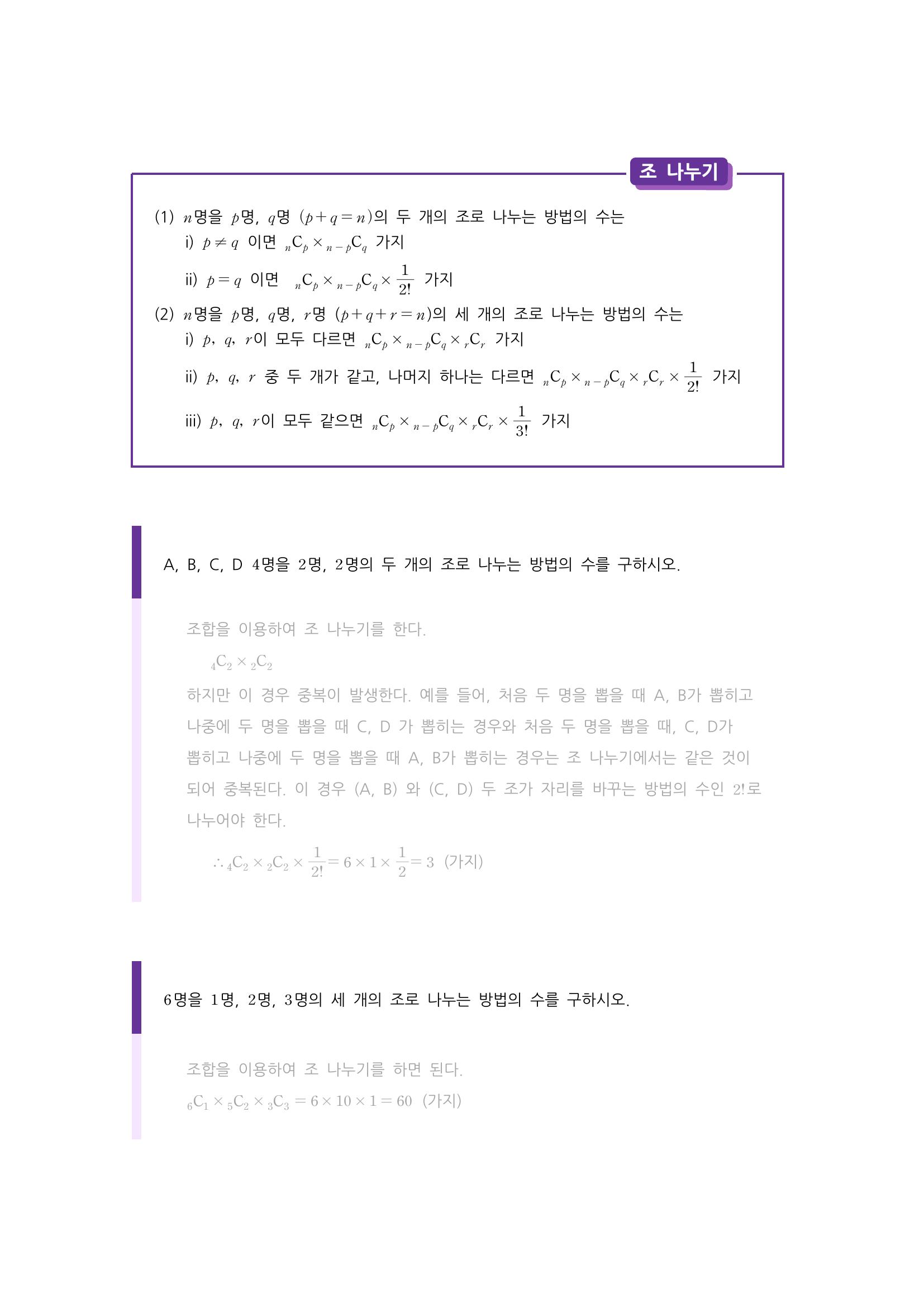 수학 개념 정리/공식 : 조합, nCr, 조 나누기, 파스칼의 법칙 본문