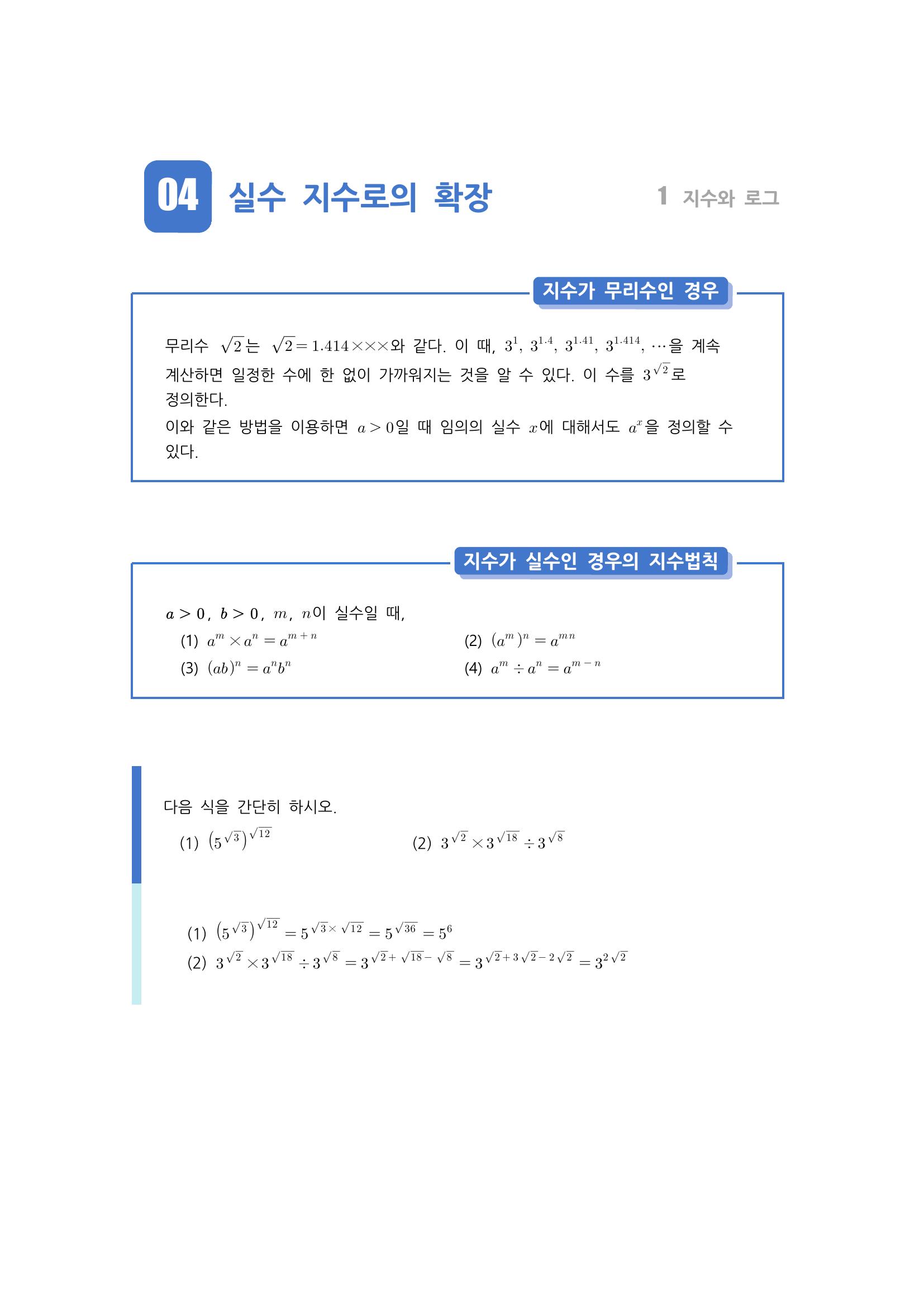 수학 개념 정리/공식 : 정수 지수로의 확장, 지수가 정수인 경우의 지수법칙, 지수가 유리수인 경우, 지수가 무리수인 경우