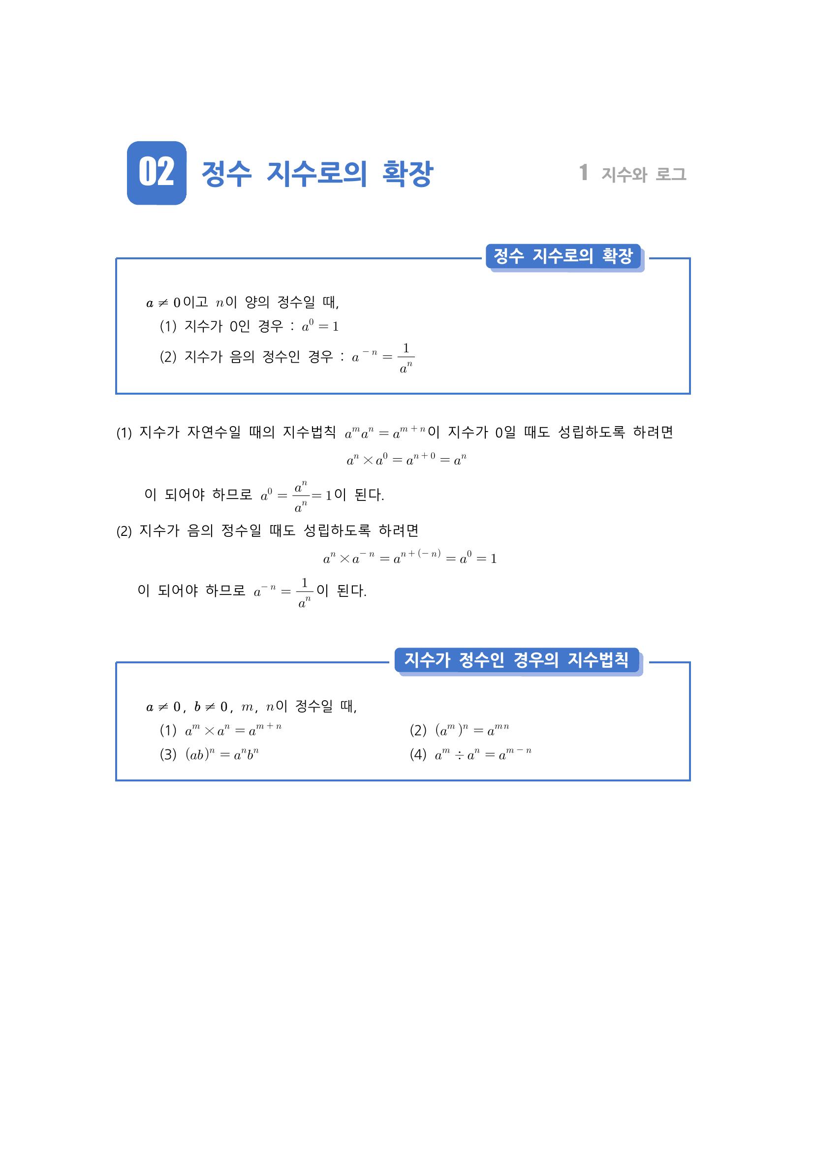 수학 개념 정리/공식 : 정수 지수로의 확장, 지수가 정수인 경우의 지수법칙, 지수가 유리수인 경우, 지수가 무리수인 경우