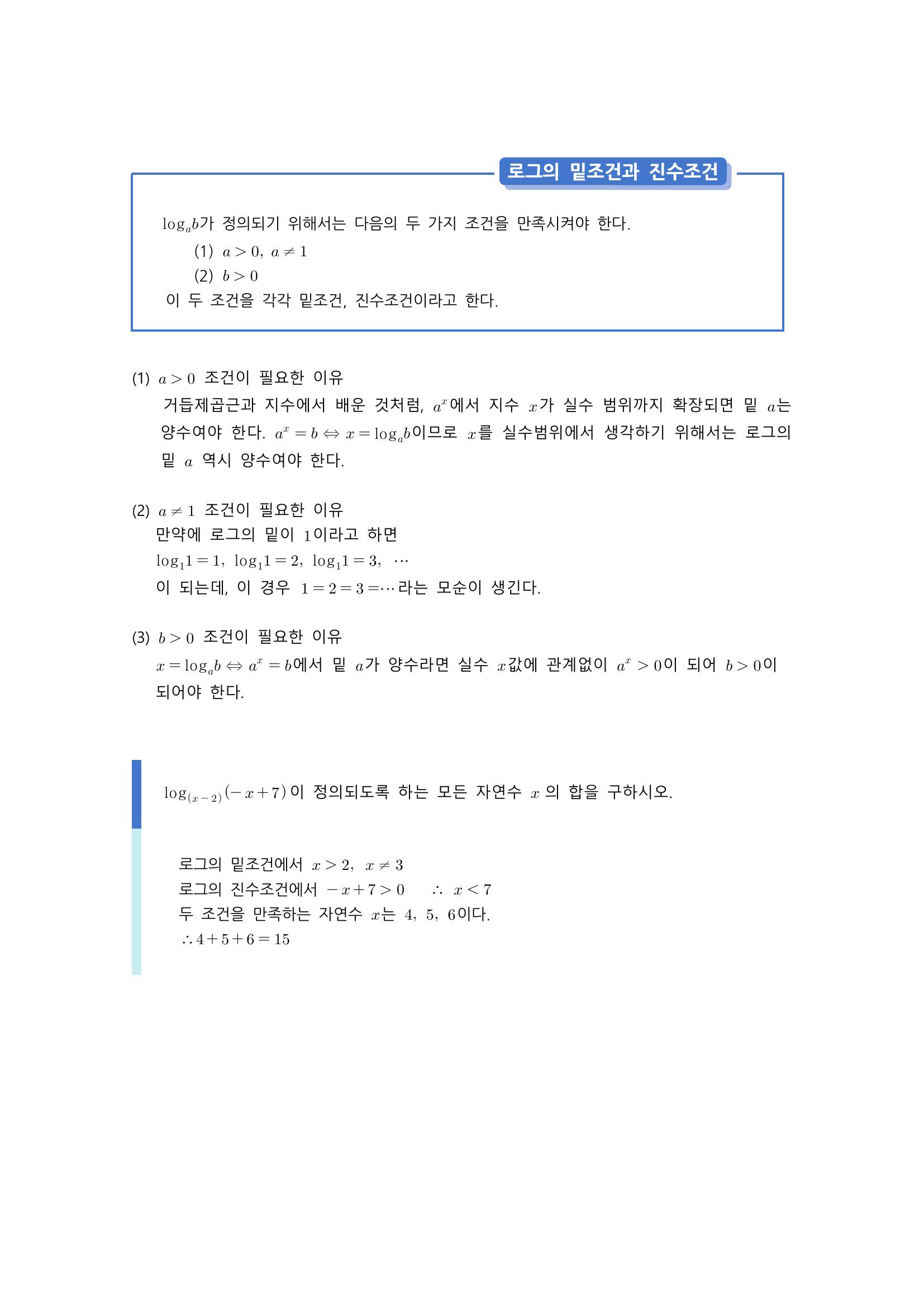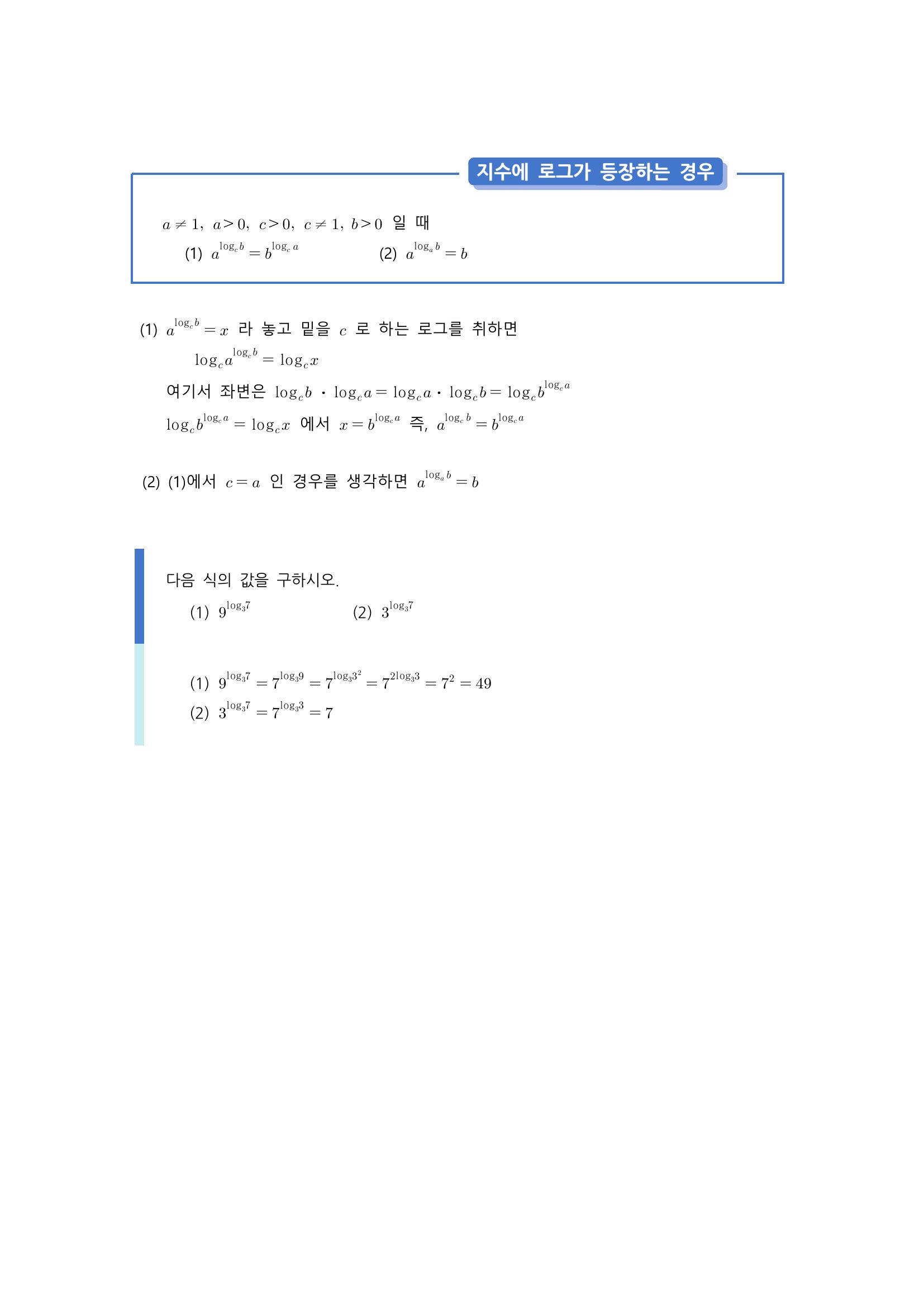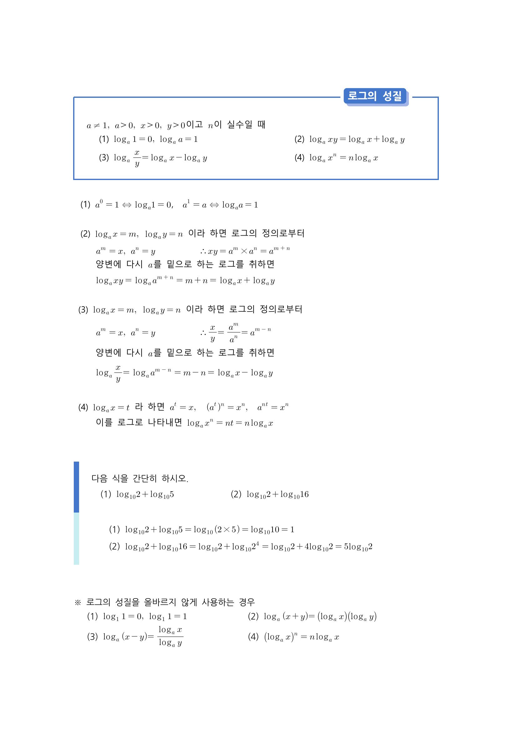 수학 개념 정리/공식 : 로그, 로그의 밑조건과 진수조건, 로그의 성질, 로그의 밑의 변환, 지수에 로그가 등장하는 경우, 상용로그 본문