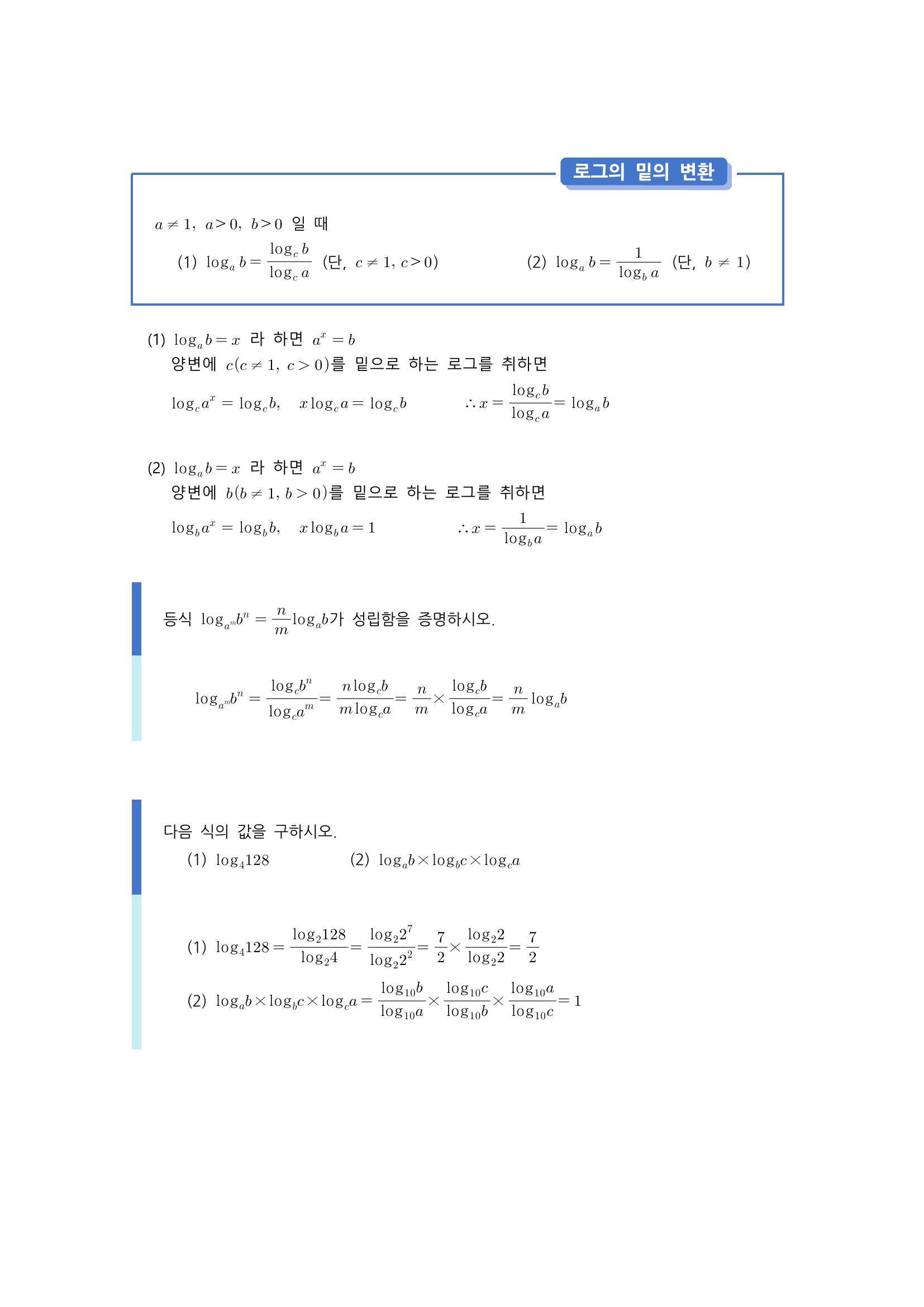수학 개념 정리/공식 : 로그, 로그의 밑조건과 진수조건, 로그의 성질, 로그의 밑의 변환, 지수에 로그가 등장하는 경우, 상용로그