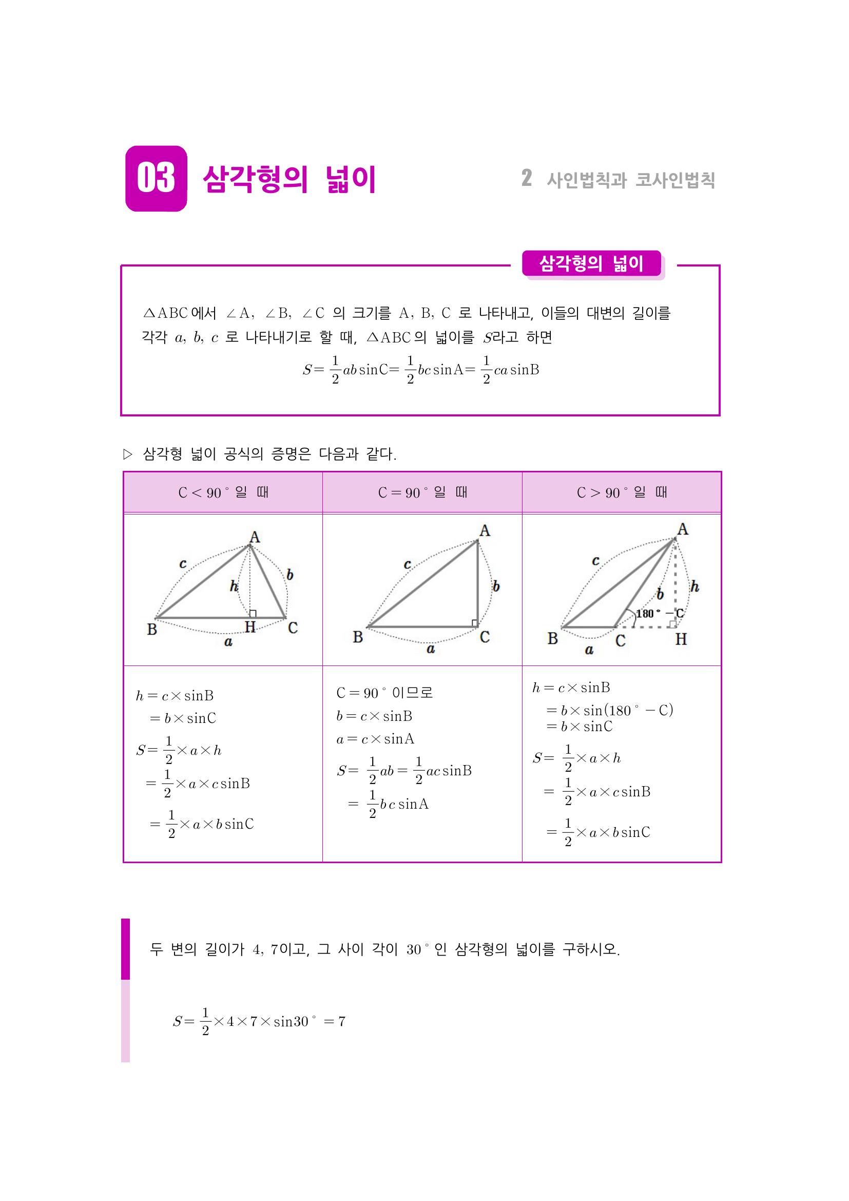 수학 개념 정리/공식 : 사인법칙, 코사인법칙, 삼각형의 넓이, 제1 사인법칙, 제2사인법칙, 제1 코사인법칙, 제2 코사인 법칙 본문