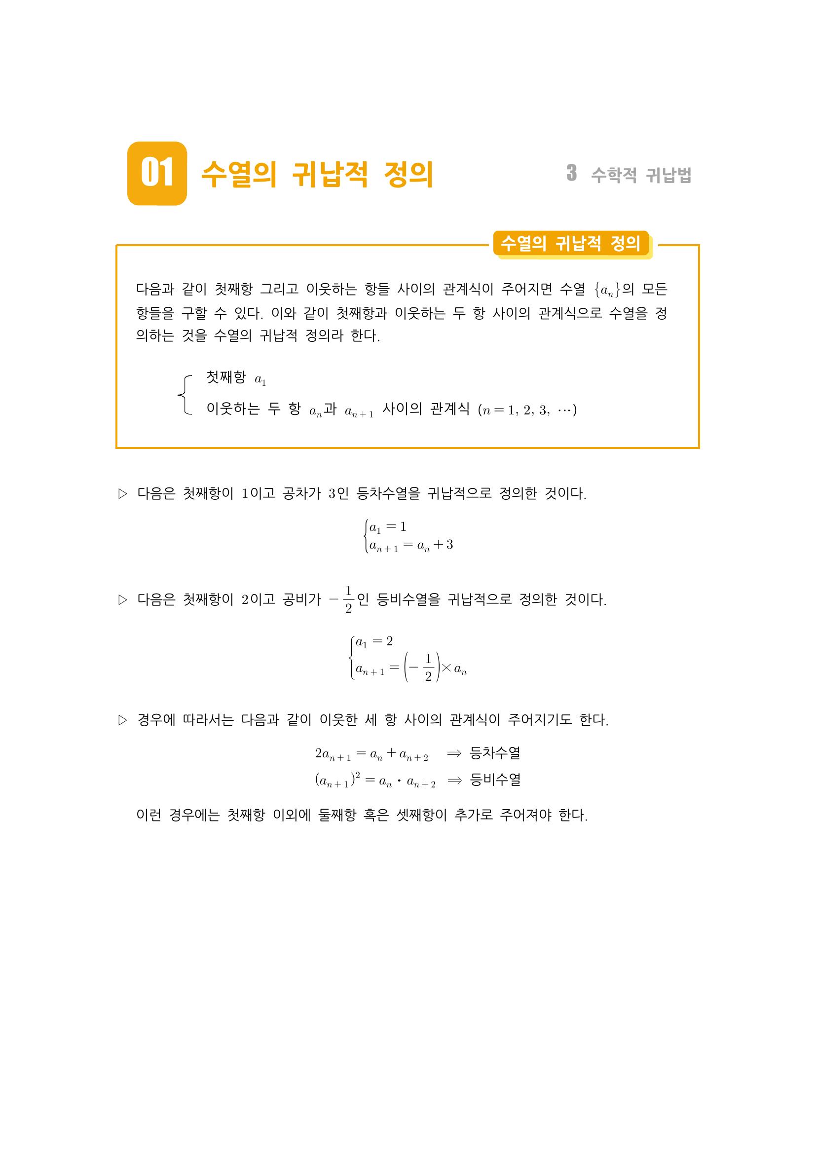 수학 개념 정리/공식 : 수열의 귀납적 적의, 수학적 귀납법 본문