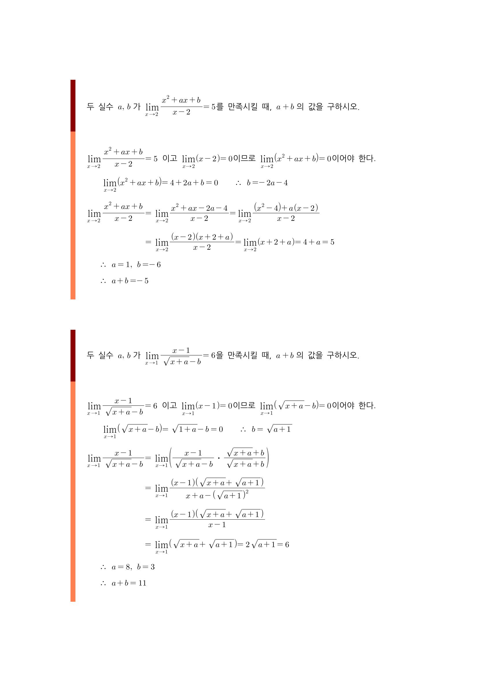 수학 개념 정리/공식 : 함수의 극한의 성질, 함수의 극한값의 계산, 미정계수의 결정, 함수의 극한의 대소 관계 본문