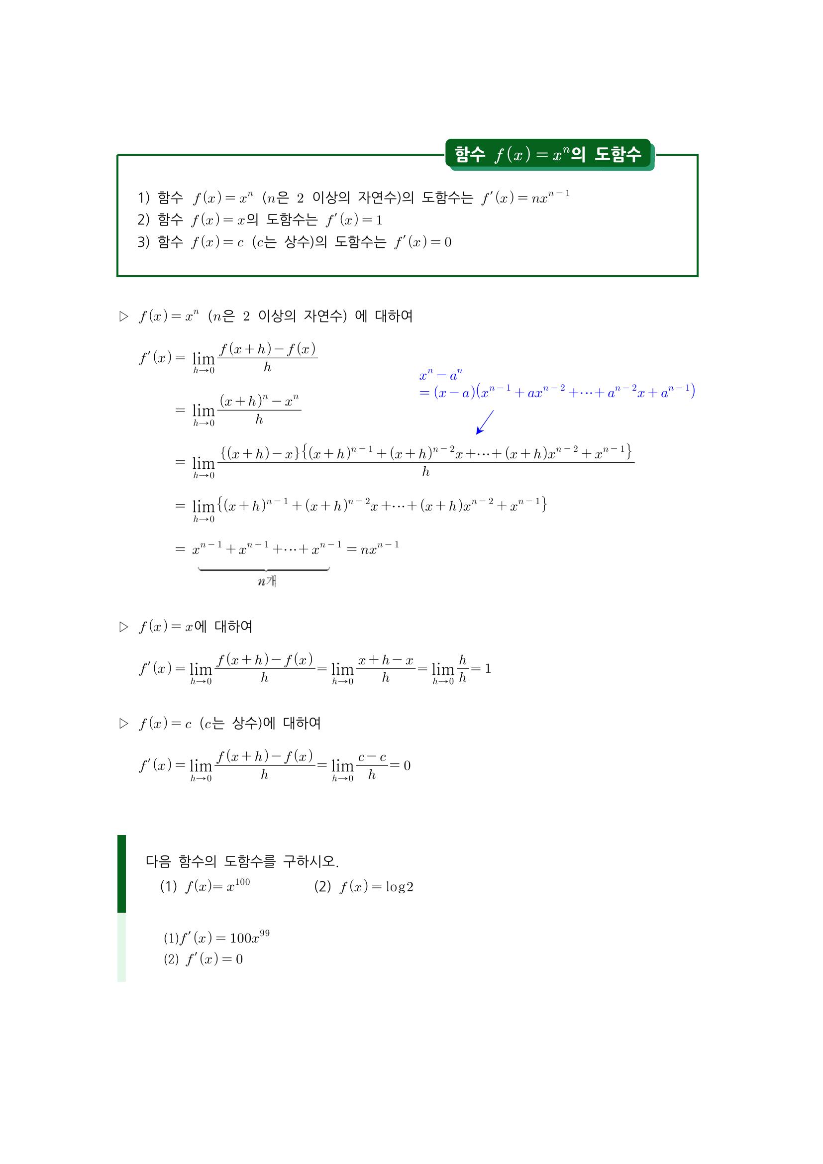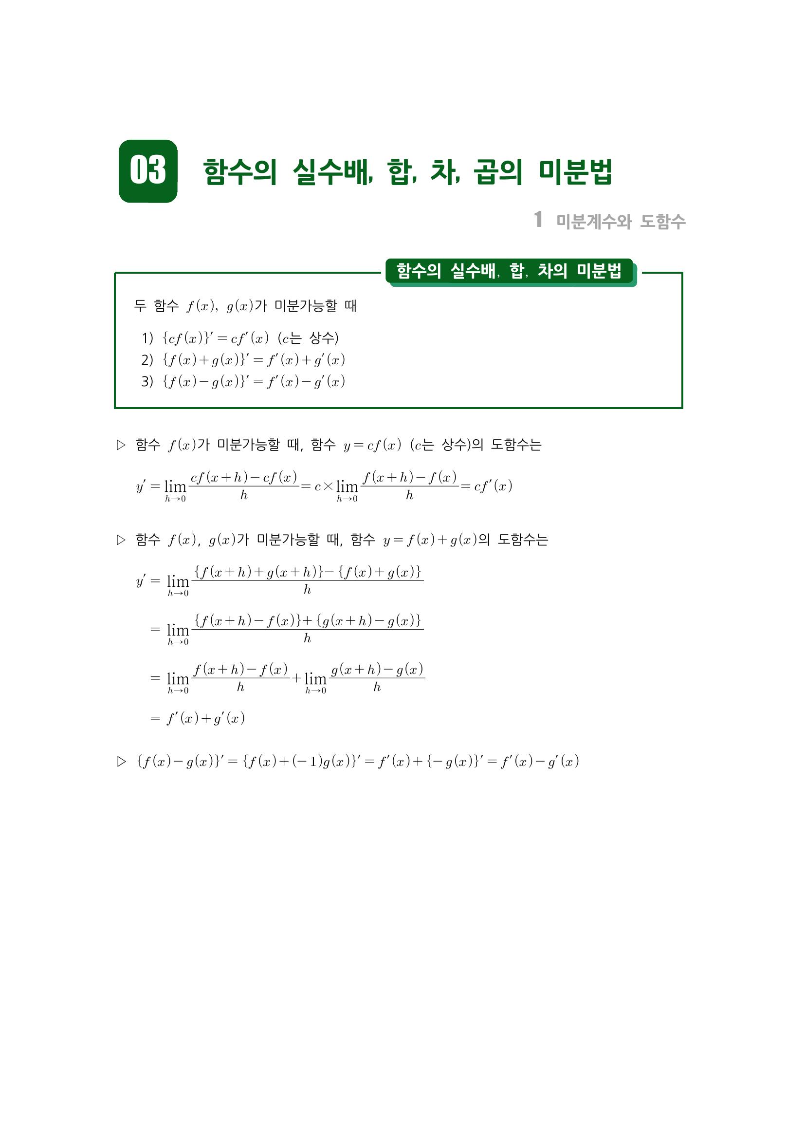 수학 개념 정리/공식 : 도함수, 함수의 실수배, 합/차의 미분법, 함수의 곱의 미분법