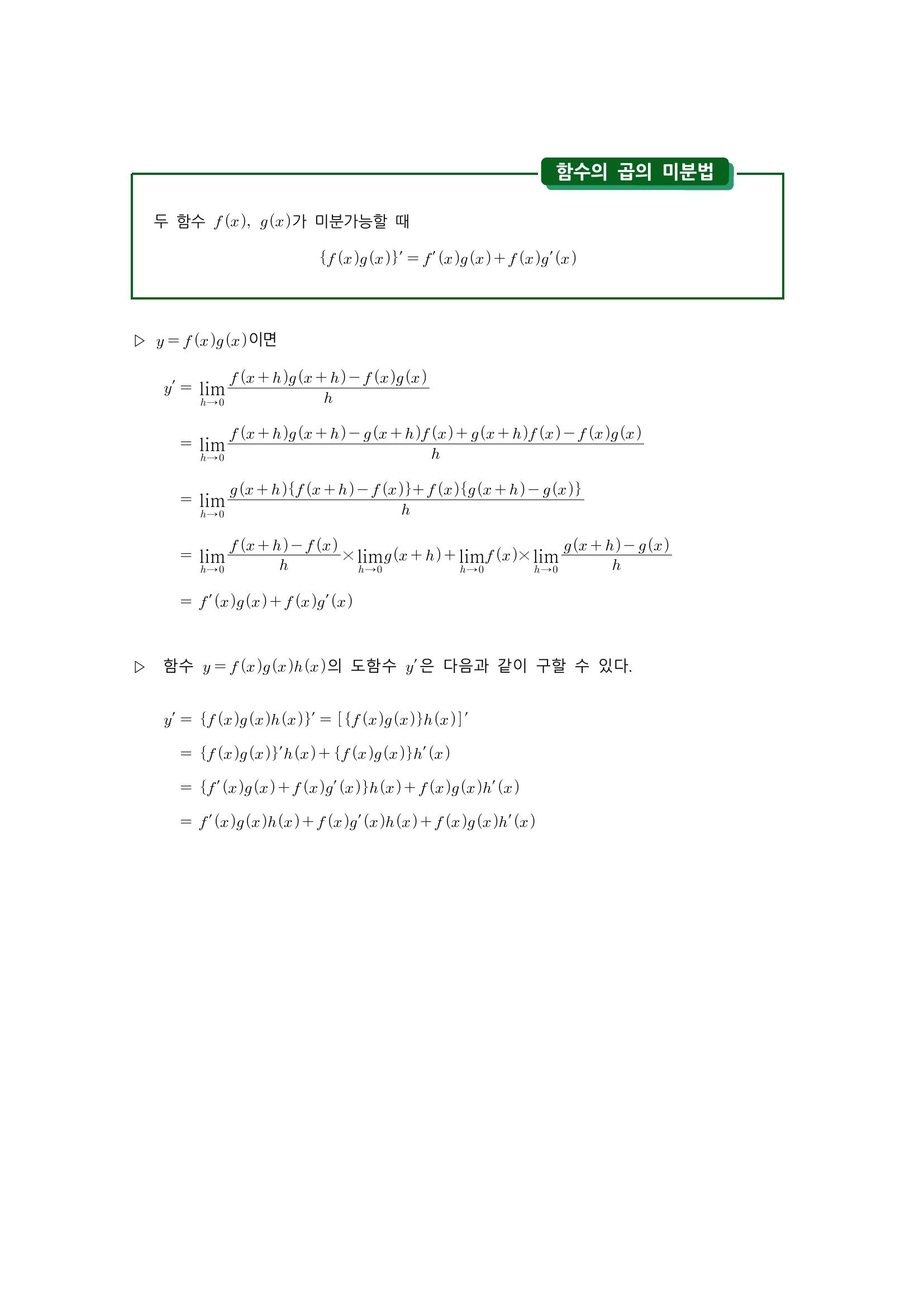 수학 개념 정리/공식 : 도함수, 함수의 실수배, 합/차의 미분법, 함수의 곱의 미분법 본문