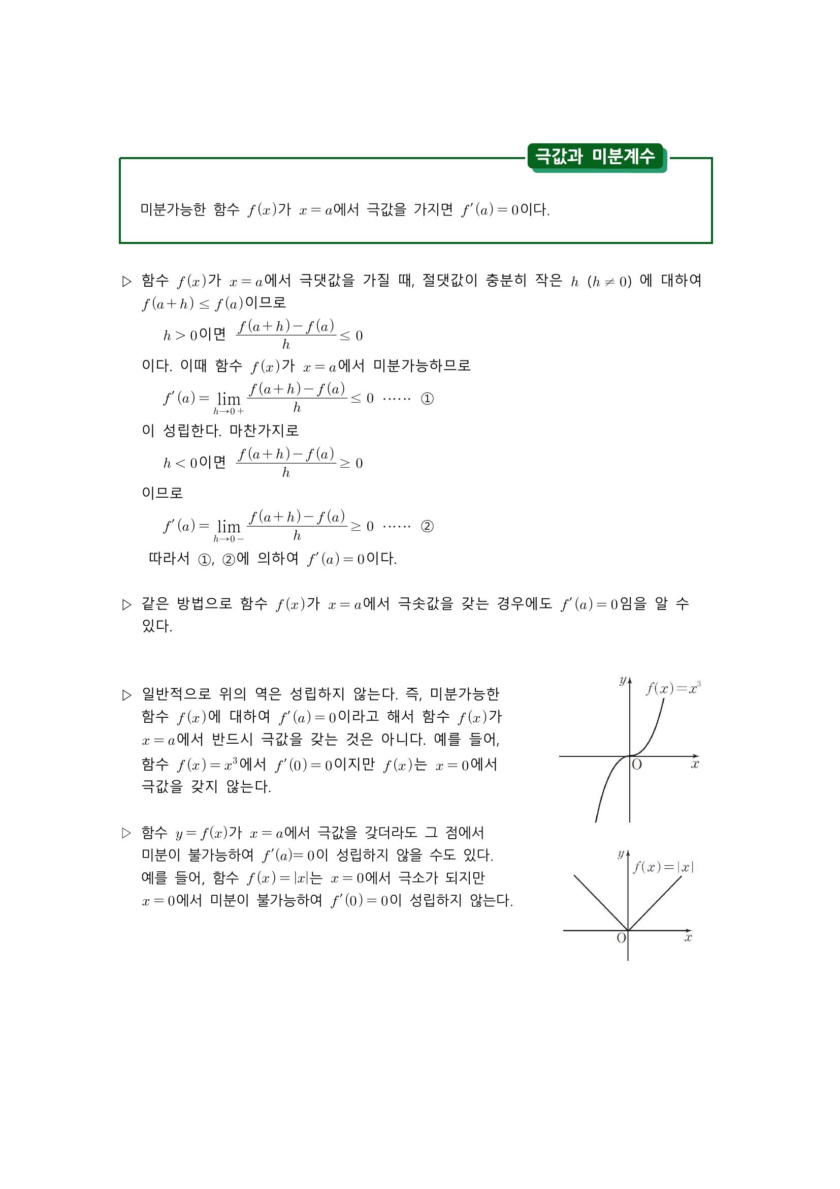 수학 개념 정리/공식 : 함수의 증가와 감소, 도함수를 이용한 함수의 증가/감소 판정, 함수의 극대와 극소, 극값과 미분계수, 극대와 극소의 판정