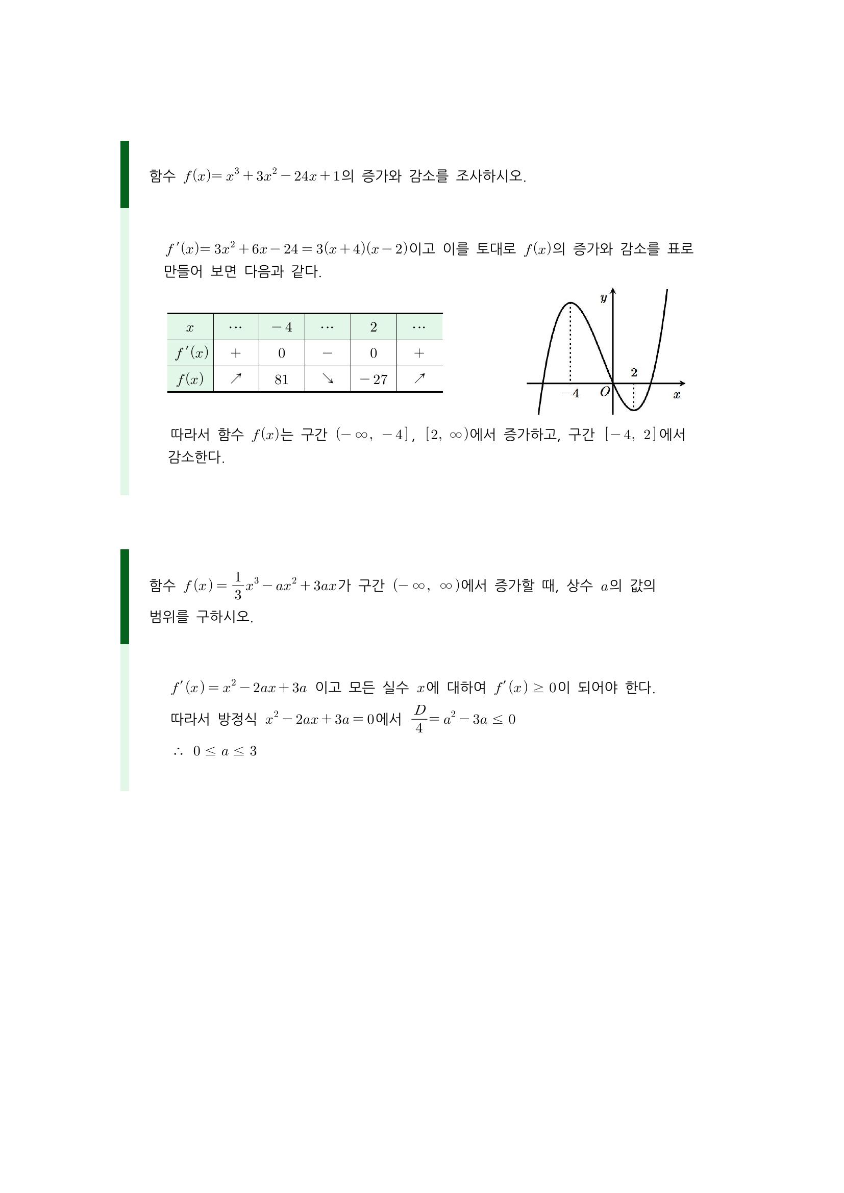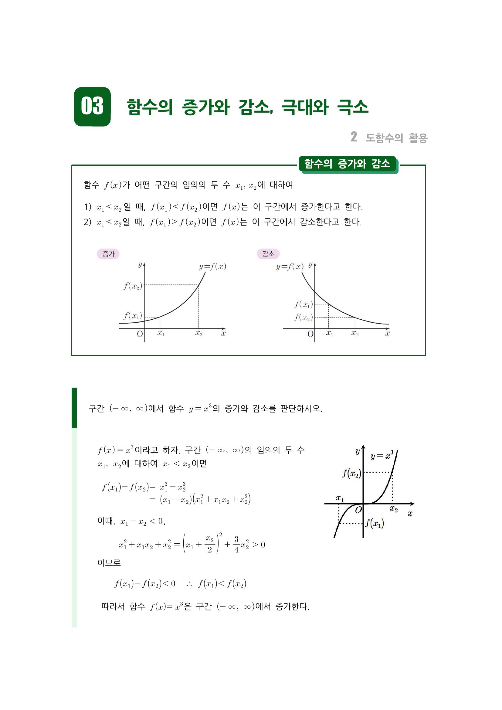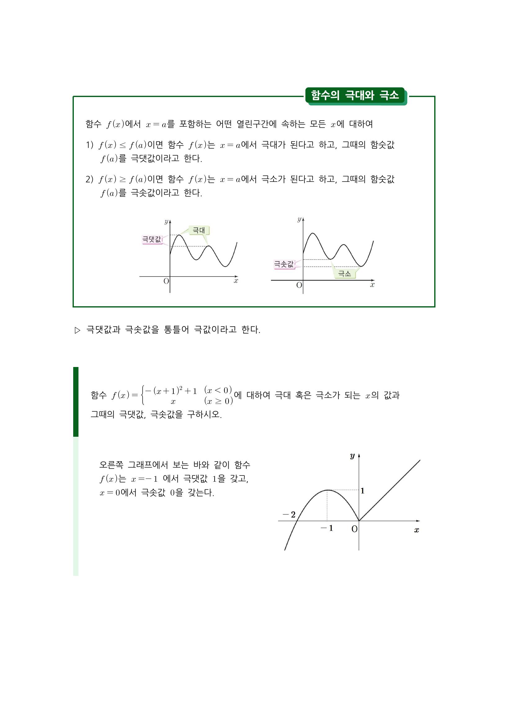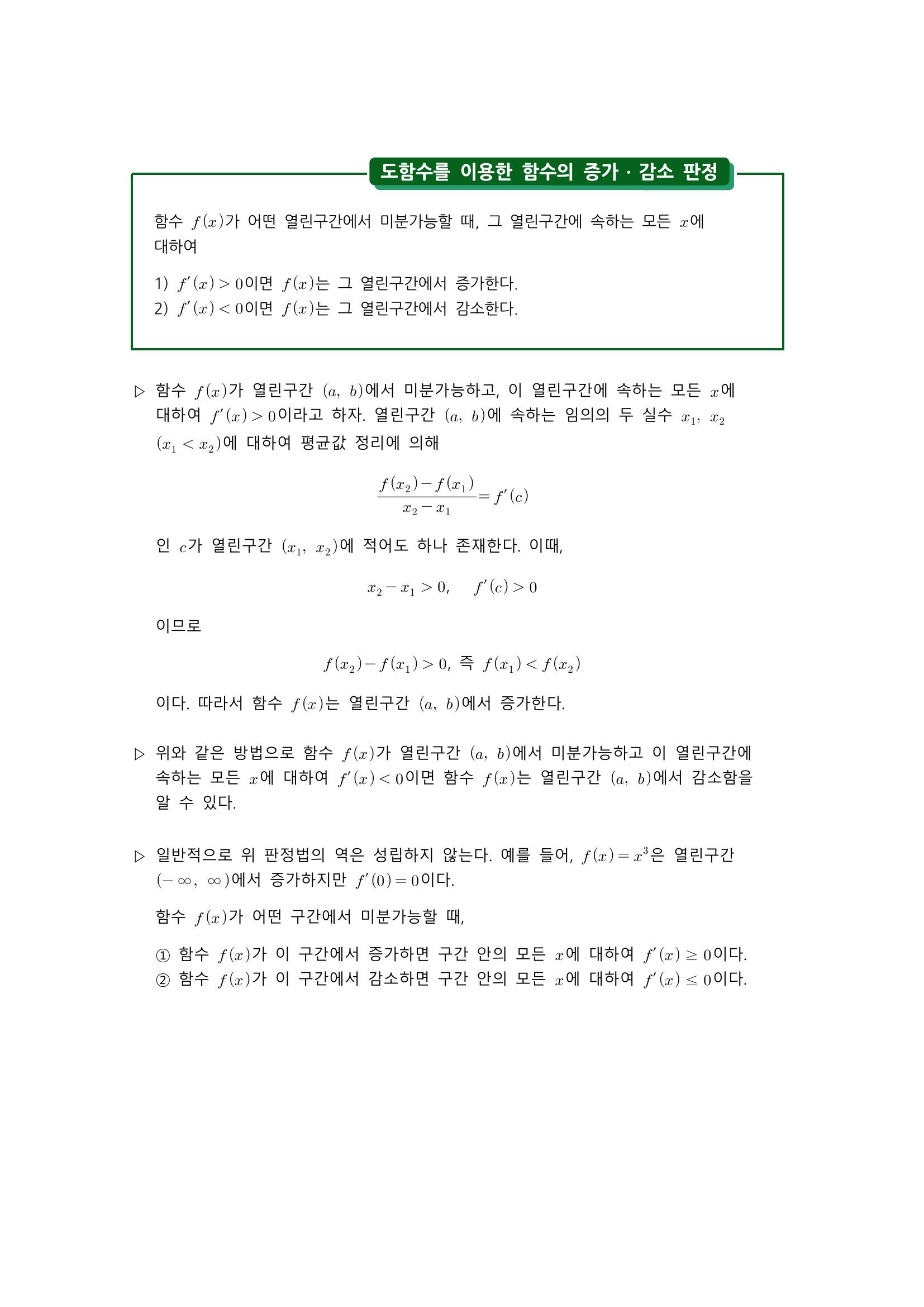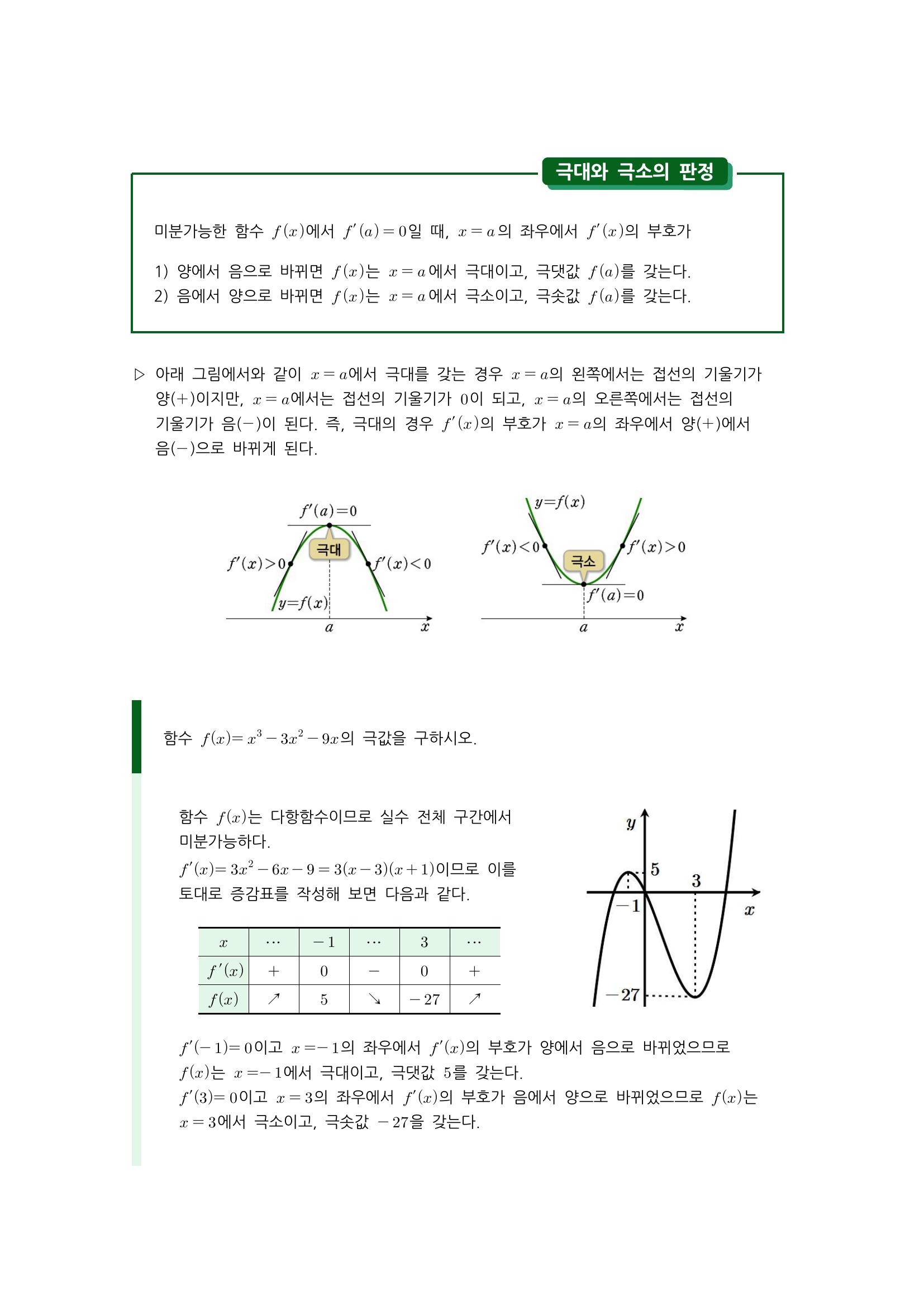 수학 개념 정리/공식 : 함수의 증가와 감소, 도함수를 이용한 함수의 증가/감소 판정, 함수의 극대와 극소, 극값과 미분계수, 극대와 극소의 판정 본문