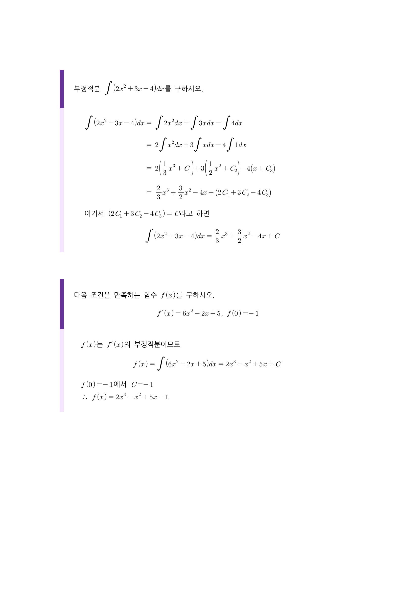 수학 개념 정리/공식 : 부정적분, 부정적분과 미분의 관계, 함수의 실수배, 합/차의 부정적분 본문