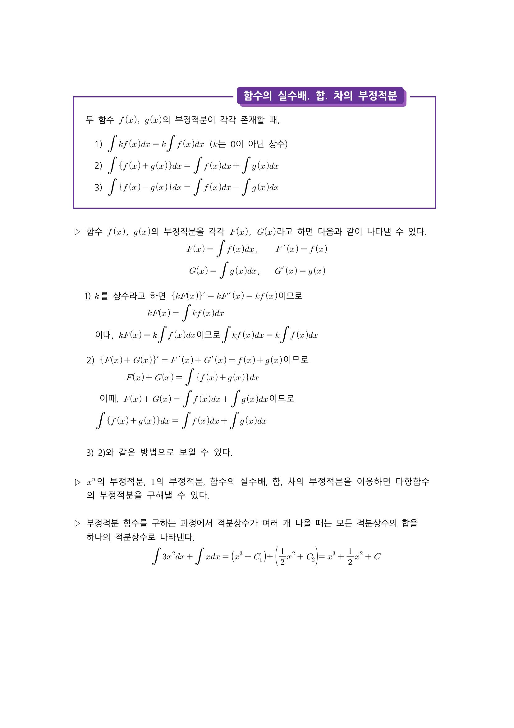수학 개념 정리/공식 : 부정적분, 부정적분과 미분의 관계, 함수의 실수배, 합/차의 부정적분