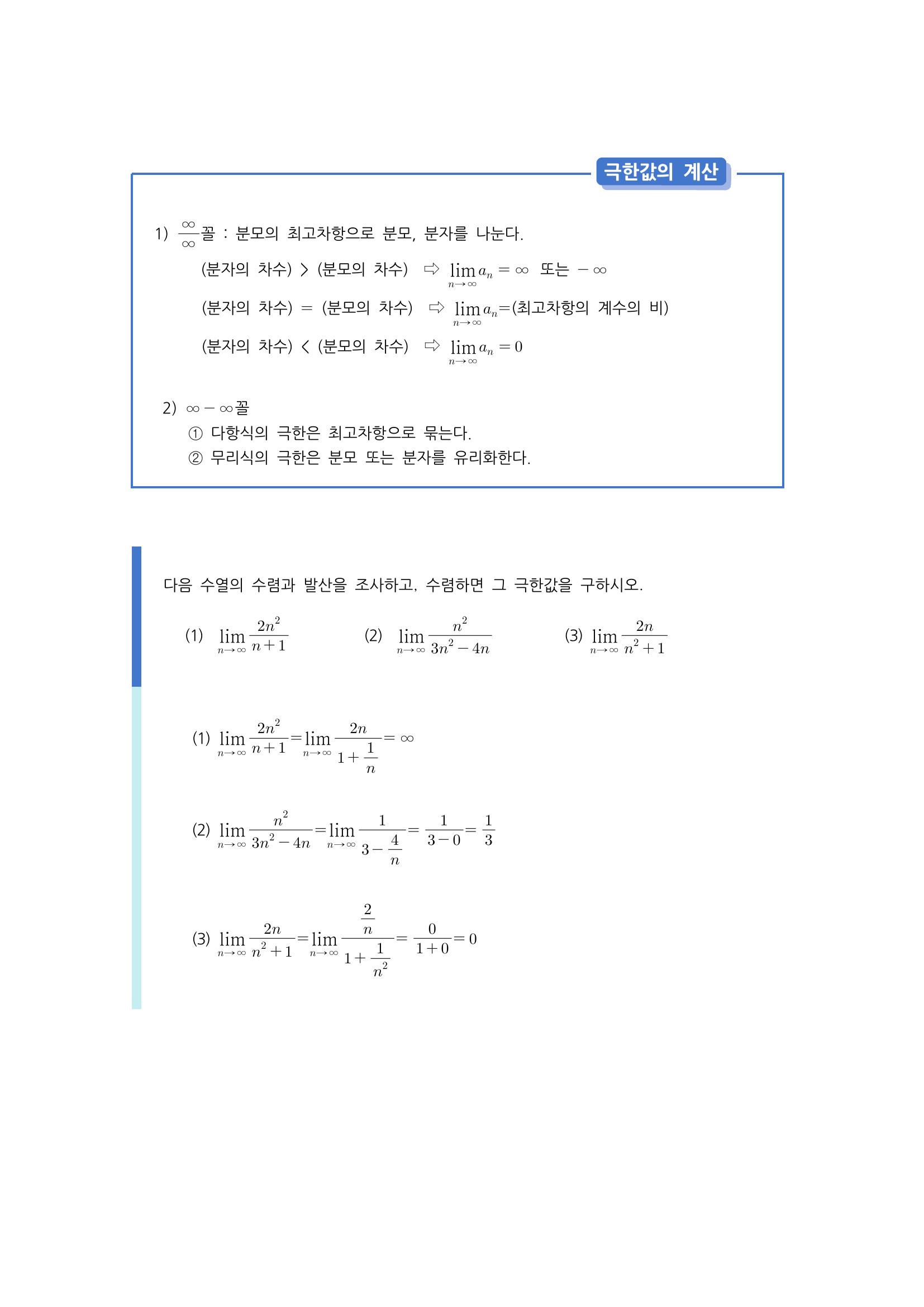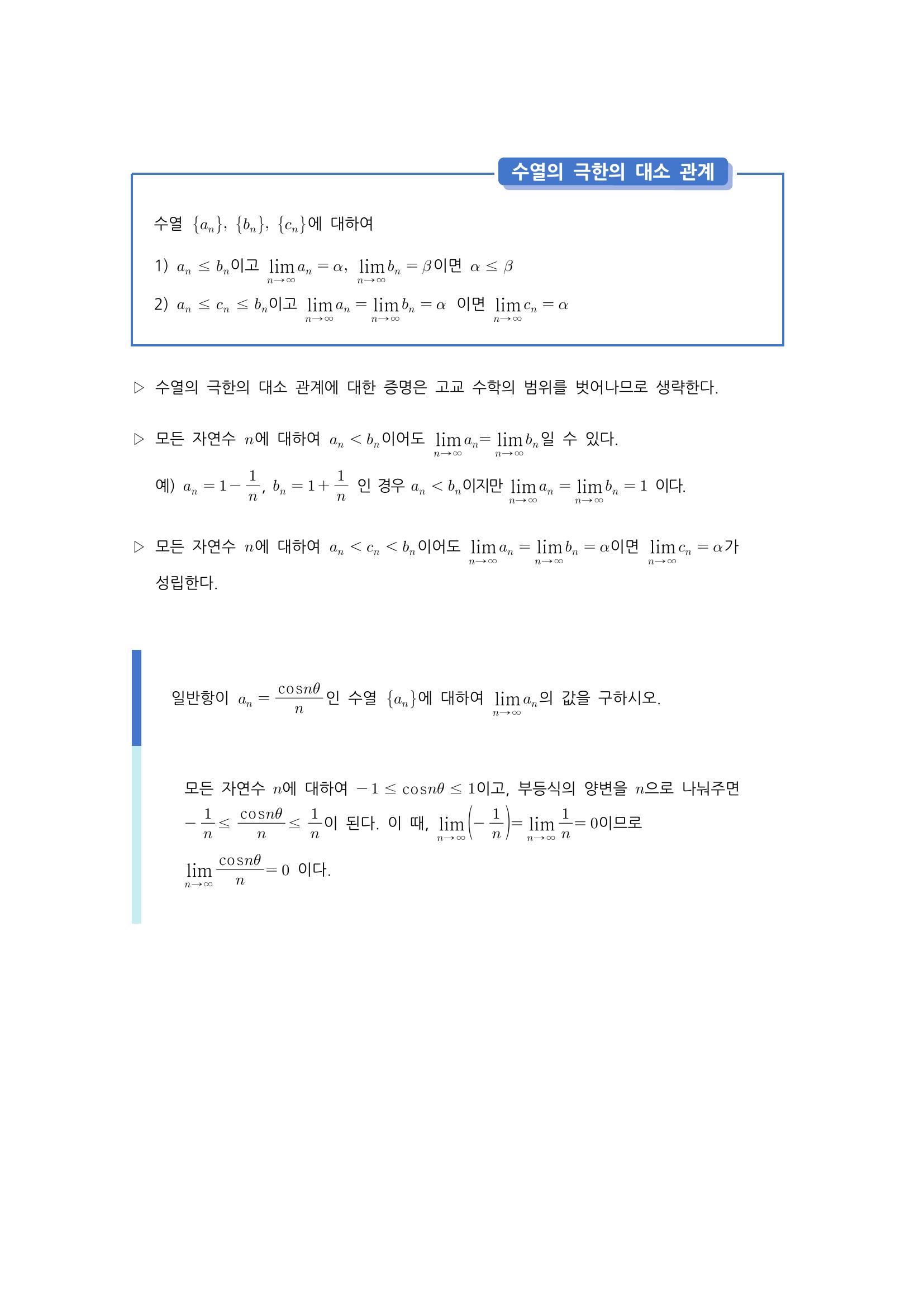 수학 개념 정리/공식 : 수열의 극한의 성질, 극한값의 계산, 수열의 극한의 대소 관계 본문
