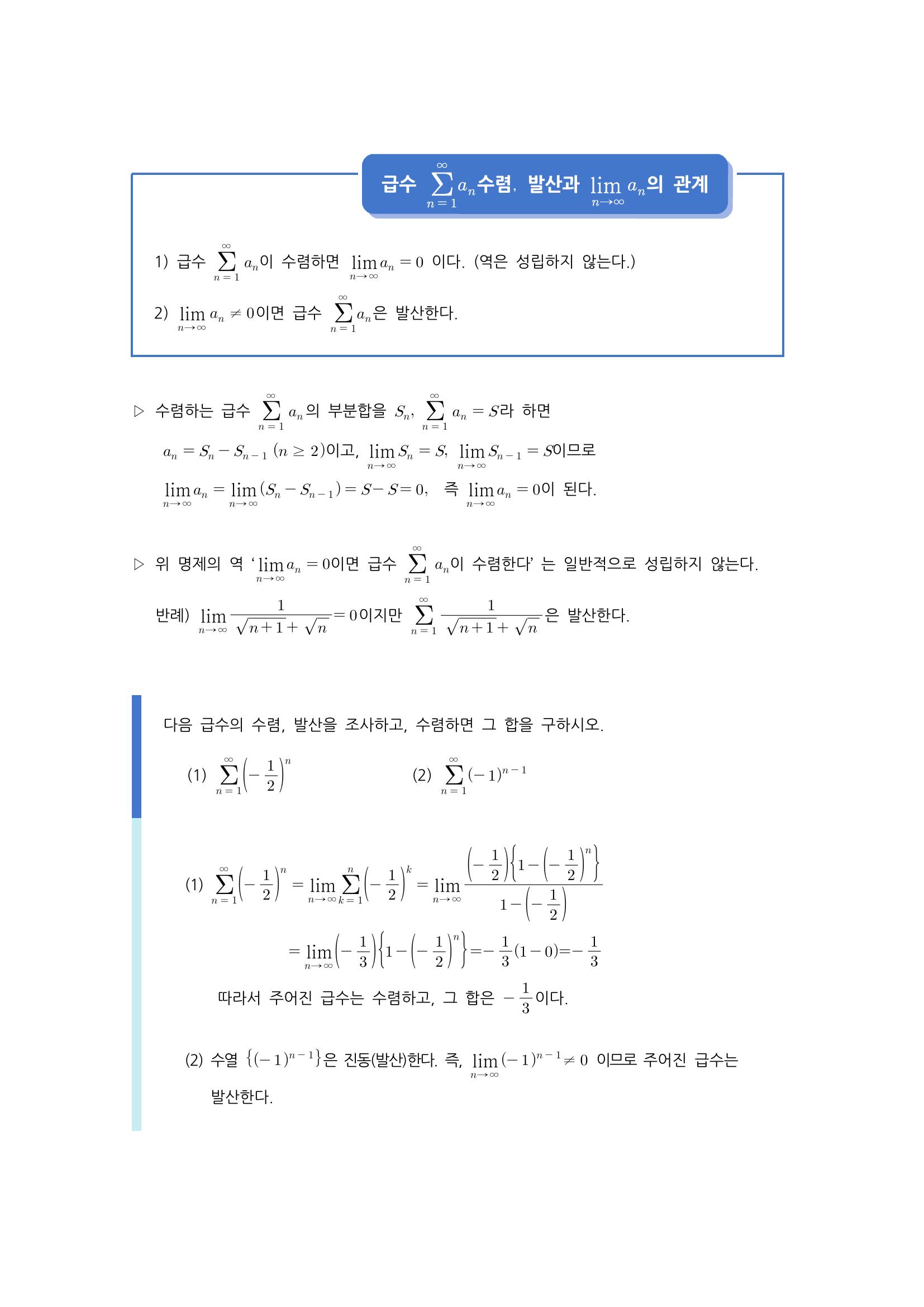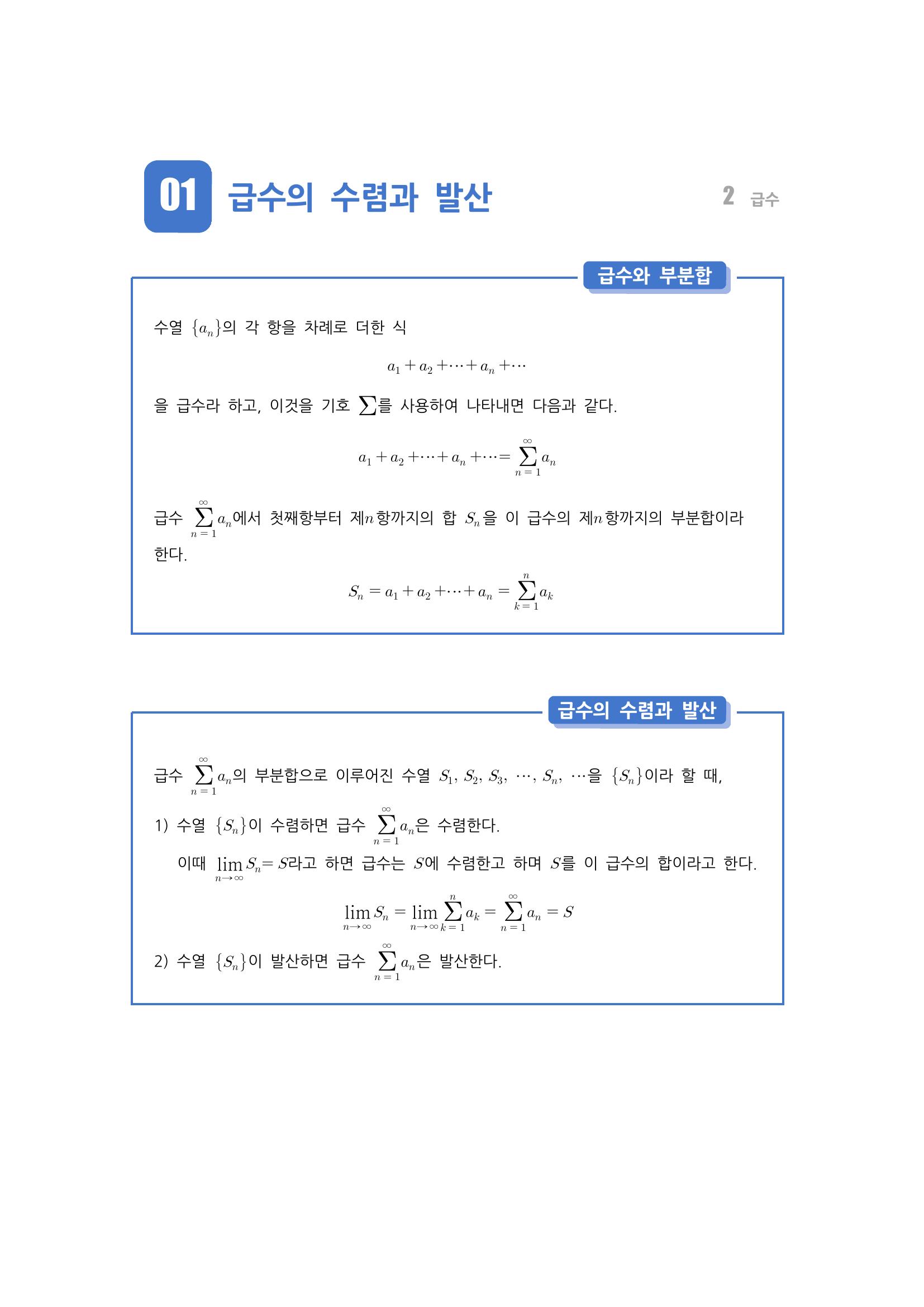 수학 개념 정리/공식 : 급수와 부분합, 급수의 수렴과 발산, 급수의 성질 본문
