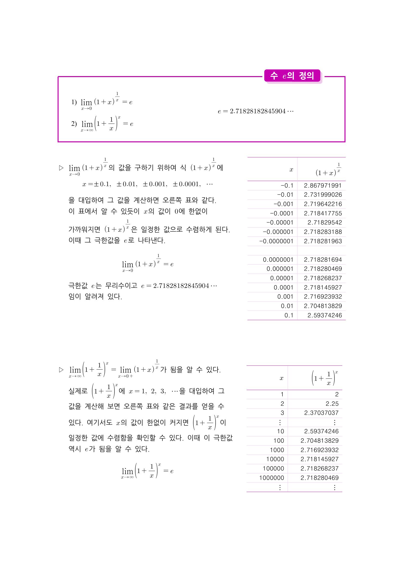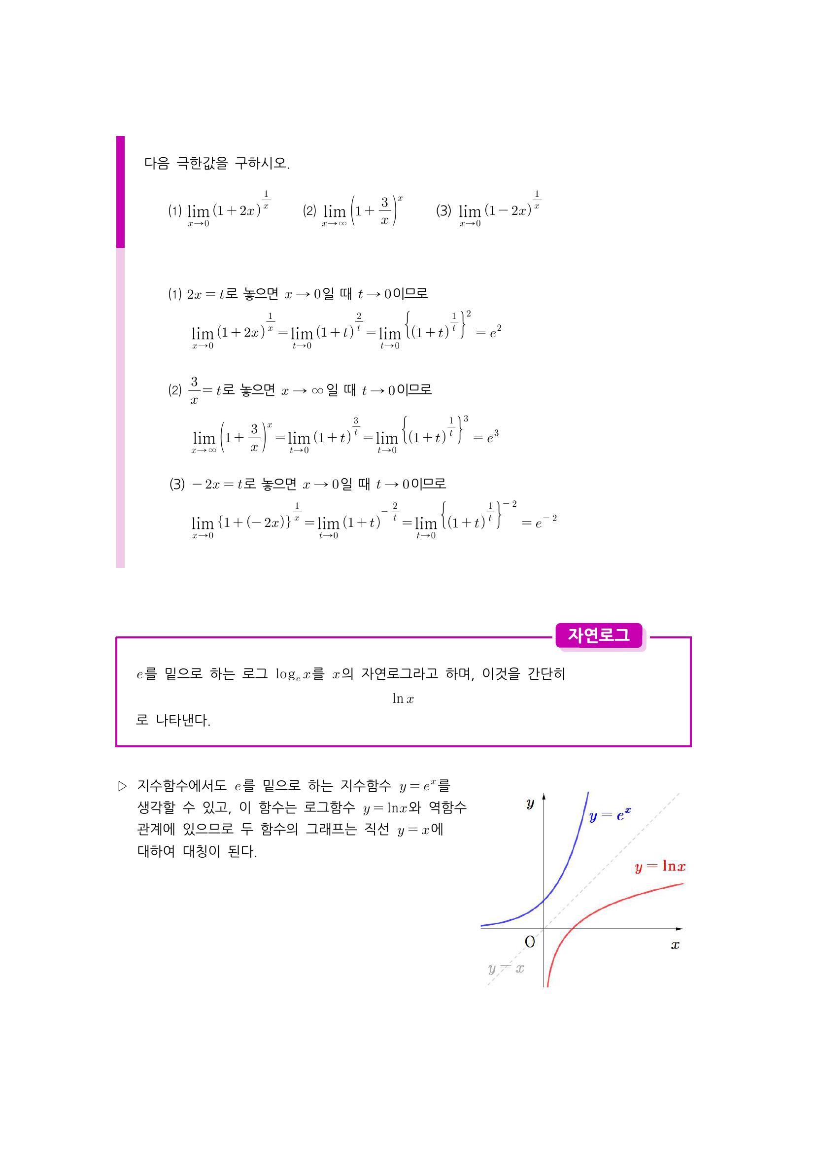 수학 개념 정리/공식 : 지수함수와 로그함수의 극한, 자연상수 e, 자연로그, 지수함수와 로그함수의 극한 본문