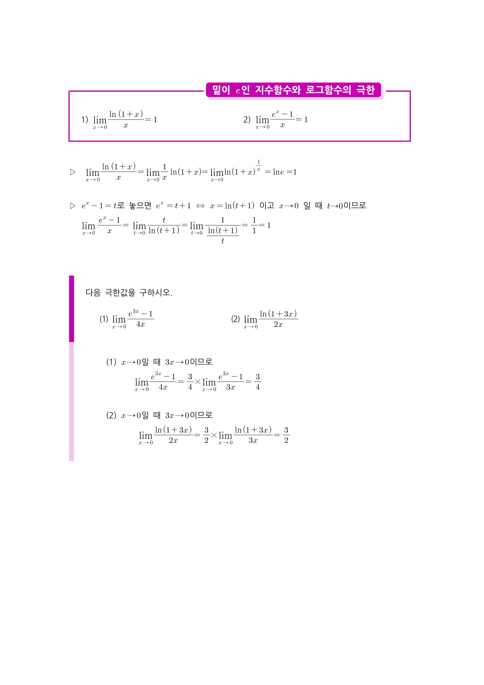 수학 개념 정리/공식 : 지수함수와 로그함수의 극한, 자연상수 e, 자연로그, 지수함수와 로그함수의 극한 본문