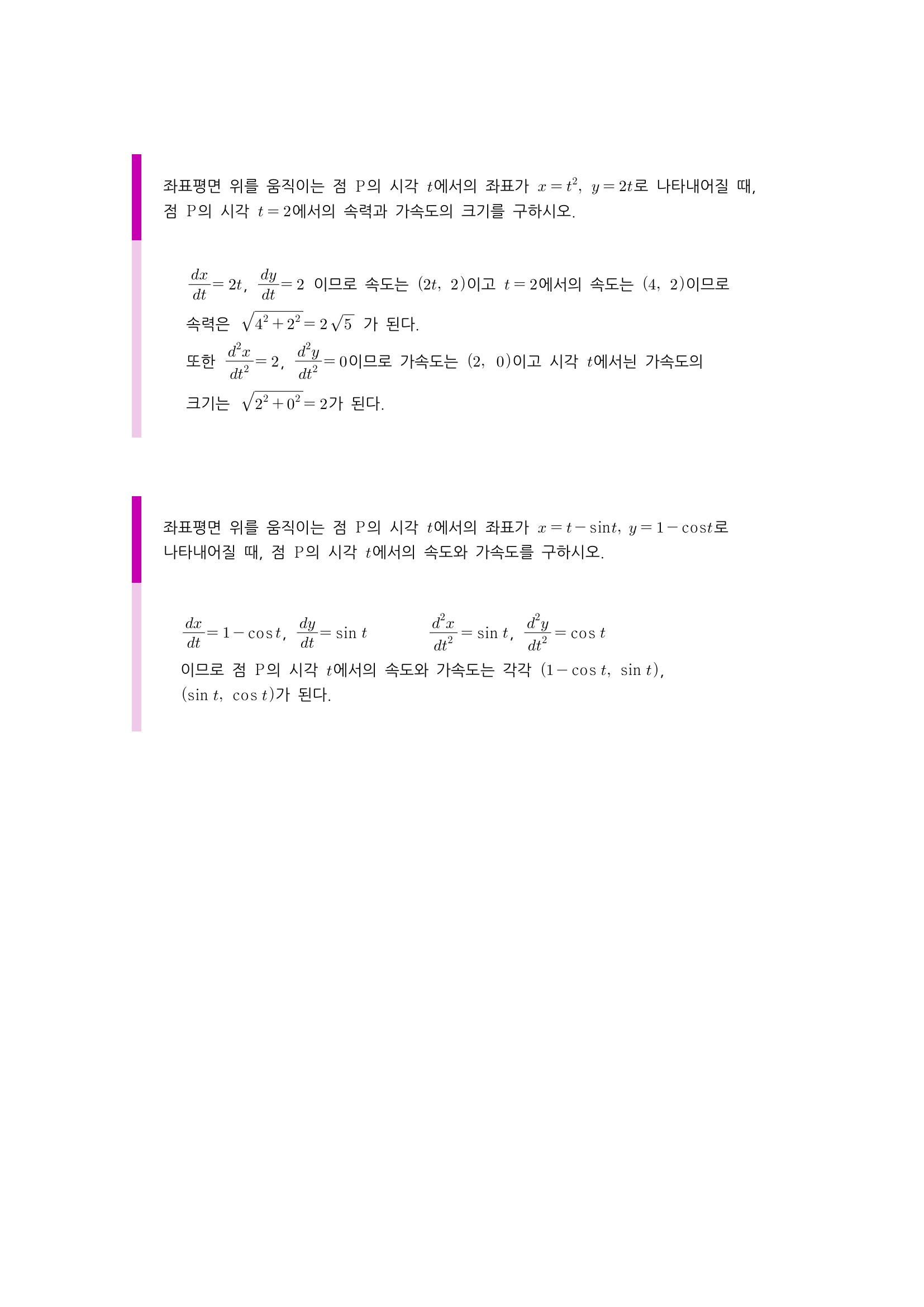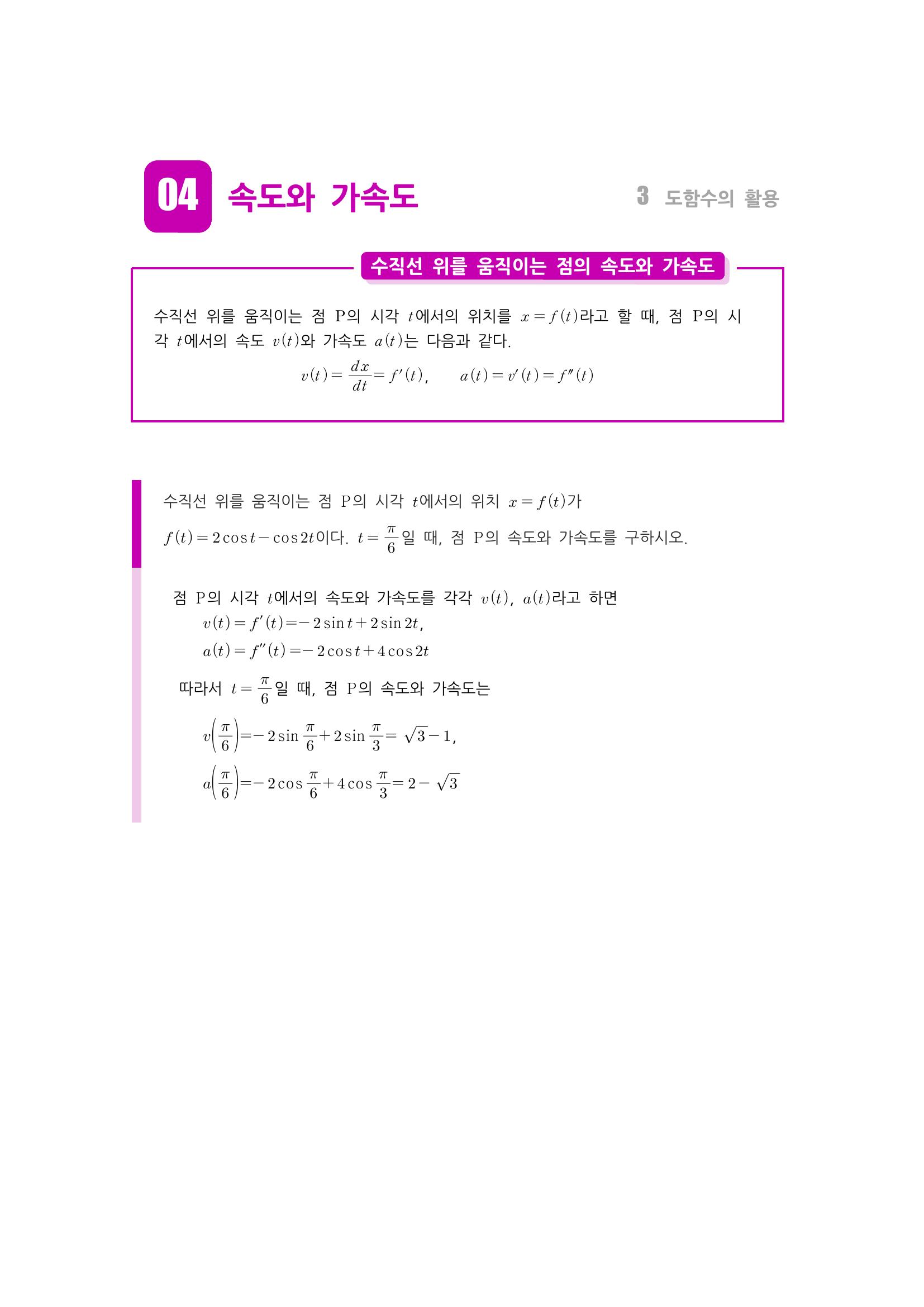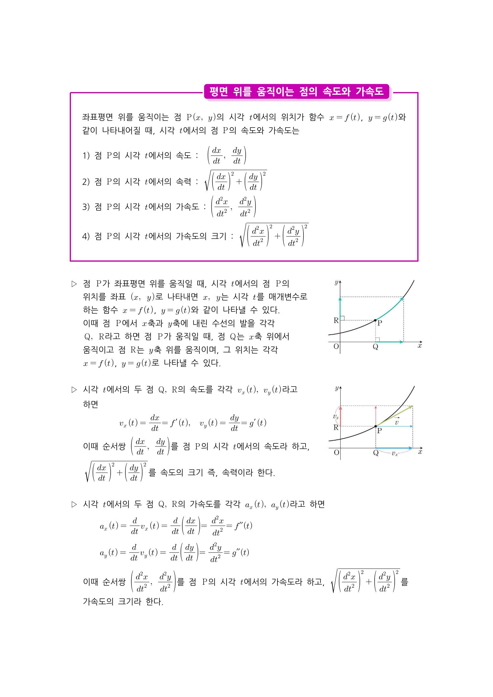 수학 개념 정리/공식 : 속도와 가속도, 수직선 위를 움직이는 점의 속도와 가속도, 평면 위를 움직이는 점의 속도와 가속도