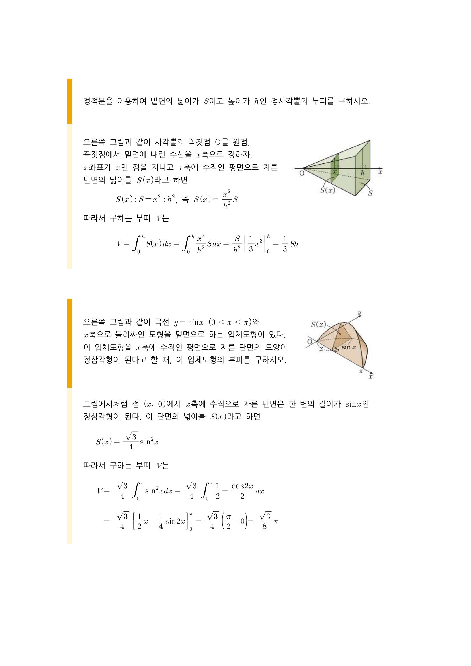 수학 개념 정리/공식 : 입체도형의 부피, 정사각뿔의 부피, 속도와 거리, 수직선 위를 움직이는 점의 위치와 움직인 거리, 곡선의 길이 본문