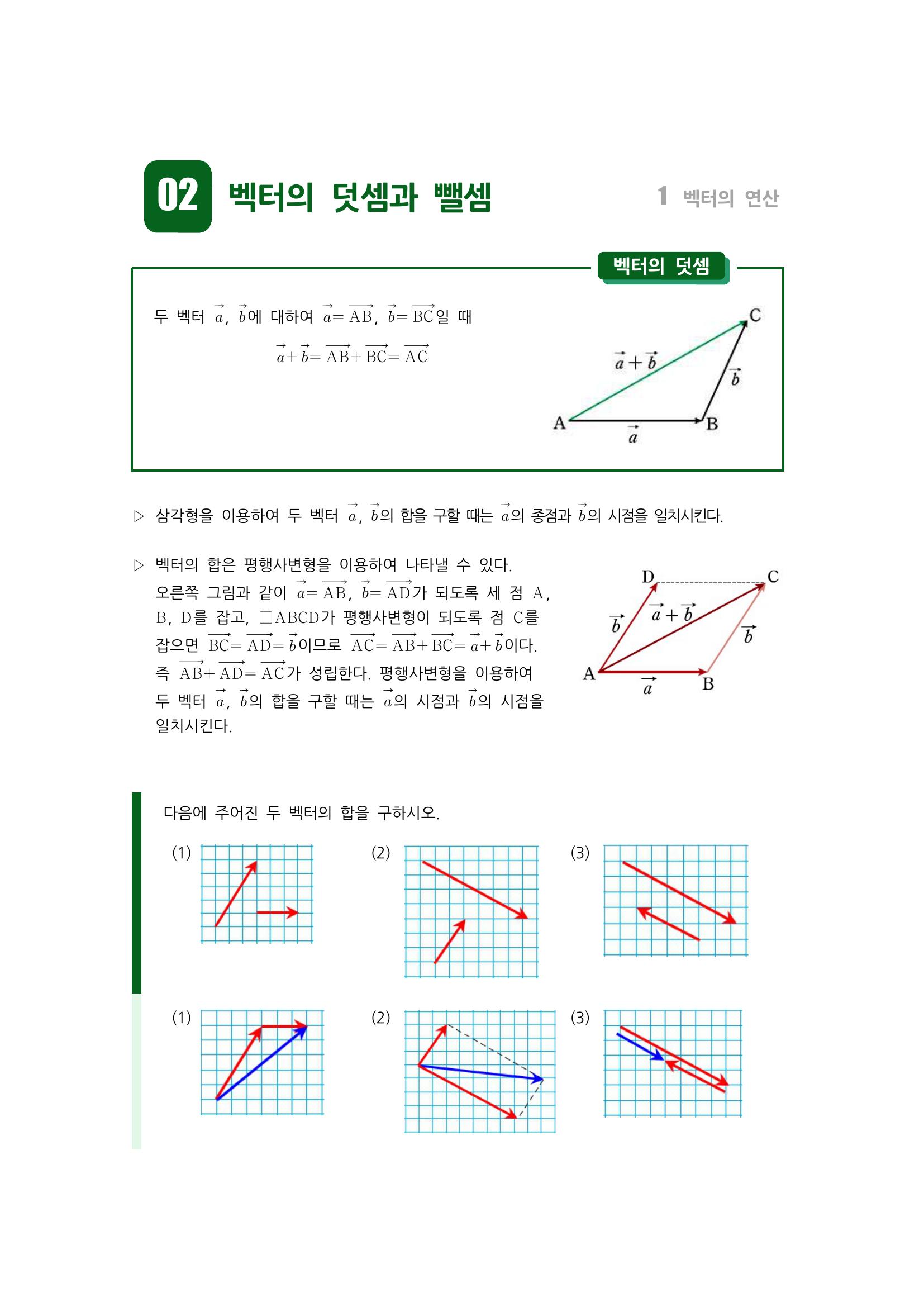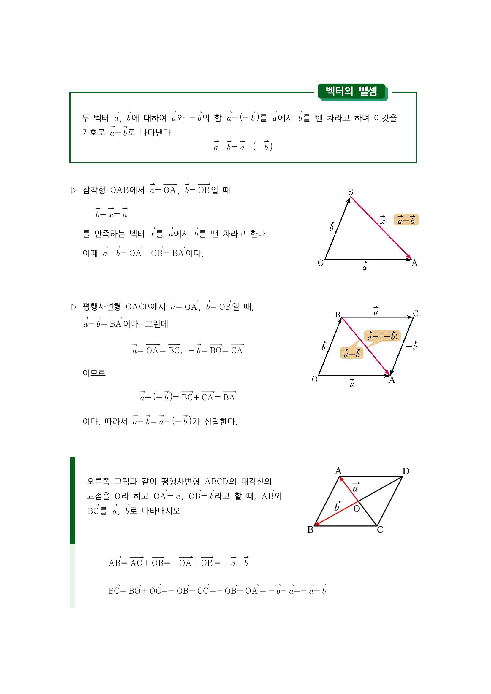 수학 개념 정리/공식 : 벡터의 덧셈, 벡터의 덧셈에 대한 연산법칙, 벡터의 뺼셈