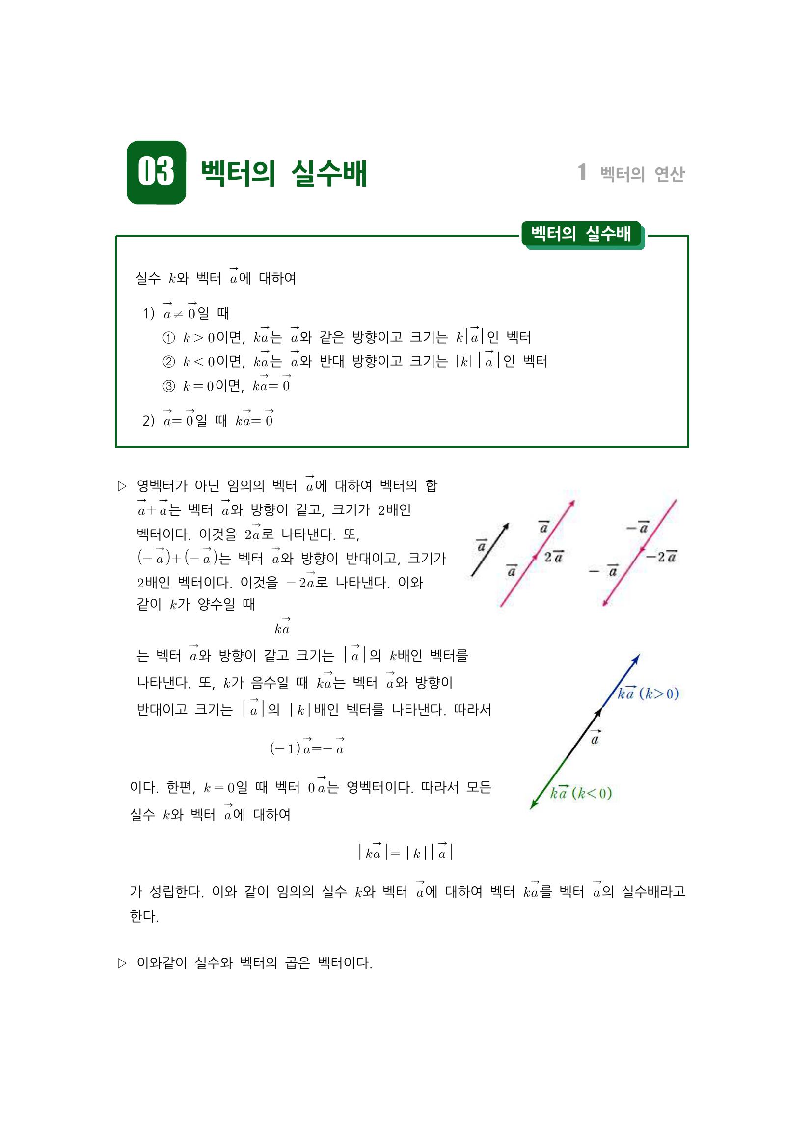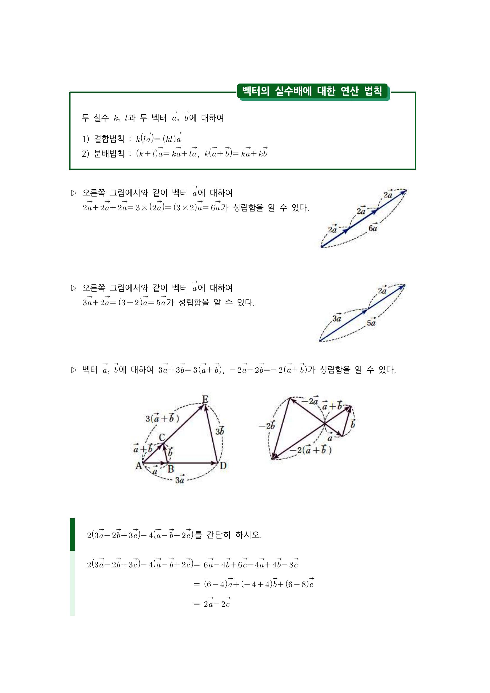 수학 개념 정리/공식 : 벡터의 실수배, 벡터의 실수배에 대한 연산 법칙, 벡터의 평행