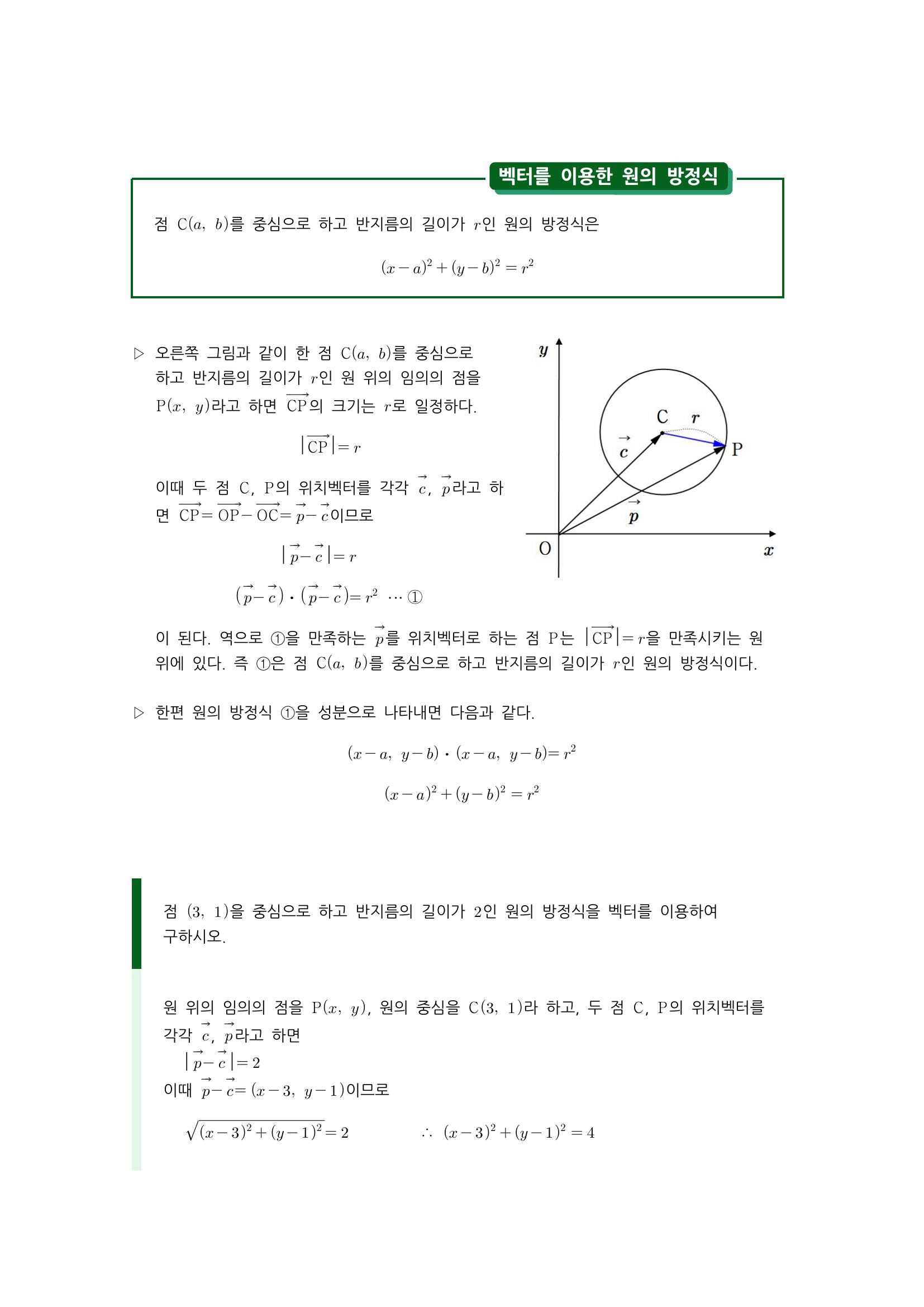 수학 개념 정리/공식 : 방향벡터를 이용한 직선의 방정식, 법선벡터를 이용한 직선의 방정식, 두 직선이 이루는 각의 크기, 벡터를 이용한 원의 방정식