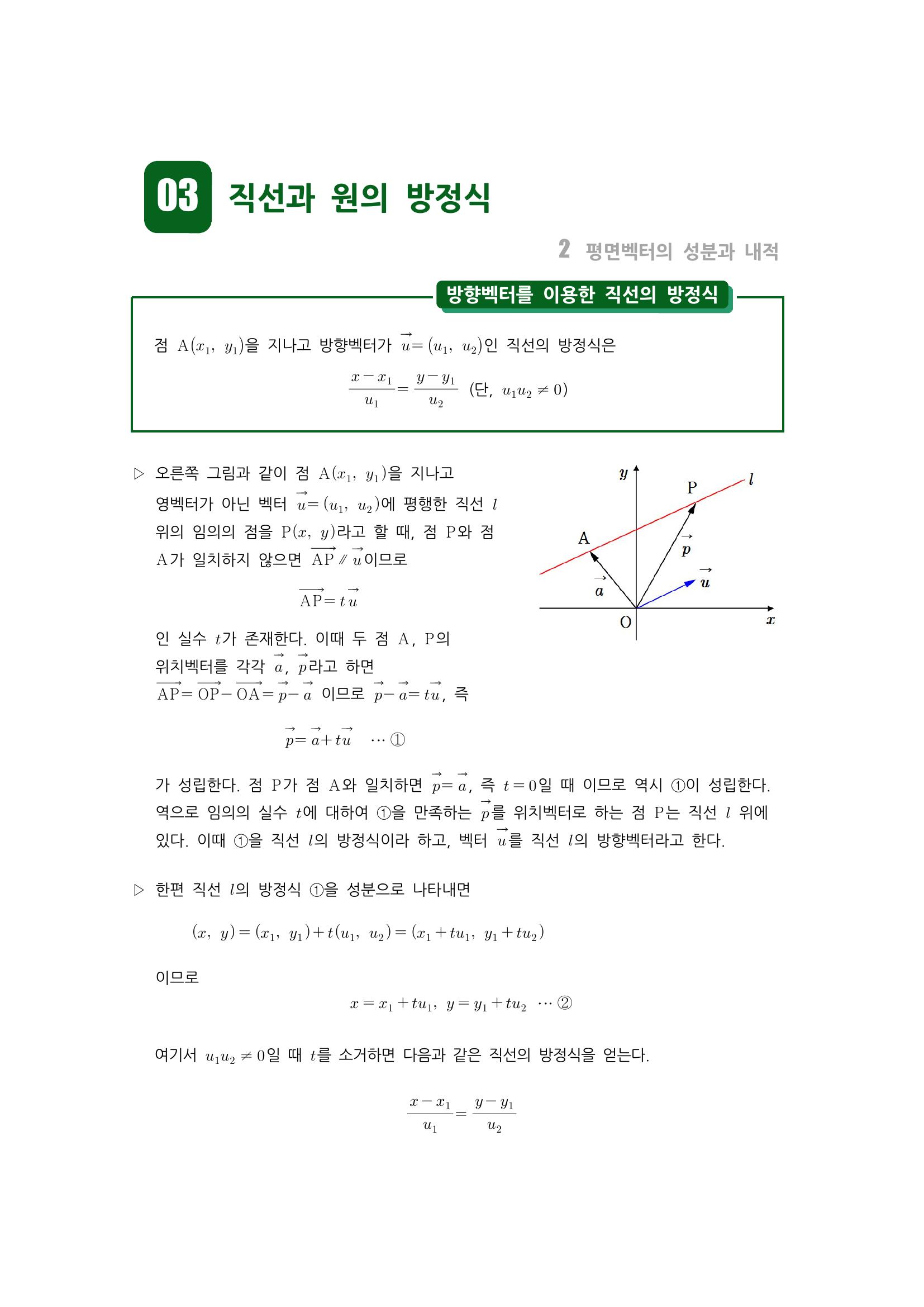 수학 개념 정리/공식 : 방향벡터를 이용한 직선의 방정식, 법선벡터를 이용한 직선의 방정식, 두 직선이 이루는 각의 크기, 벡터를 이용한 원의 방정식 본문